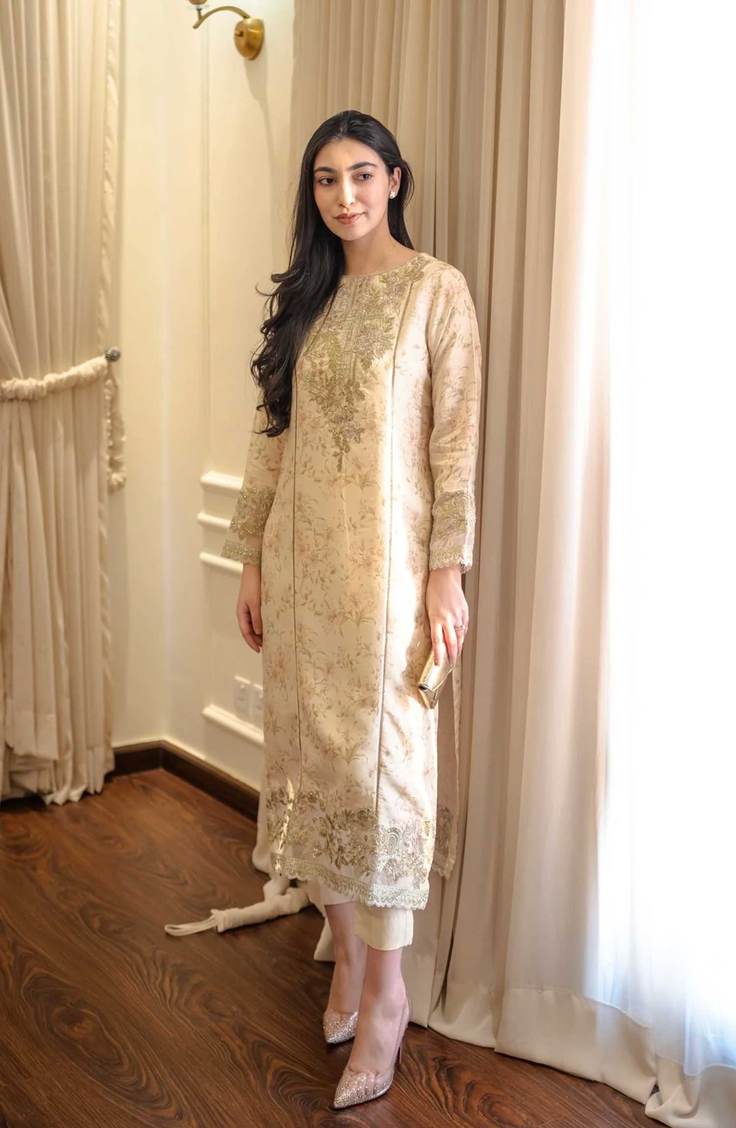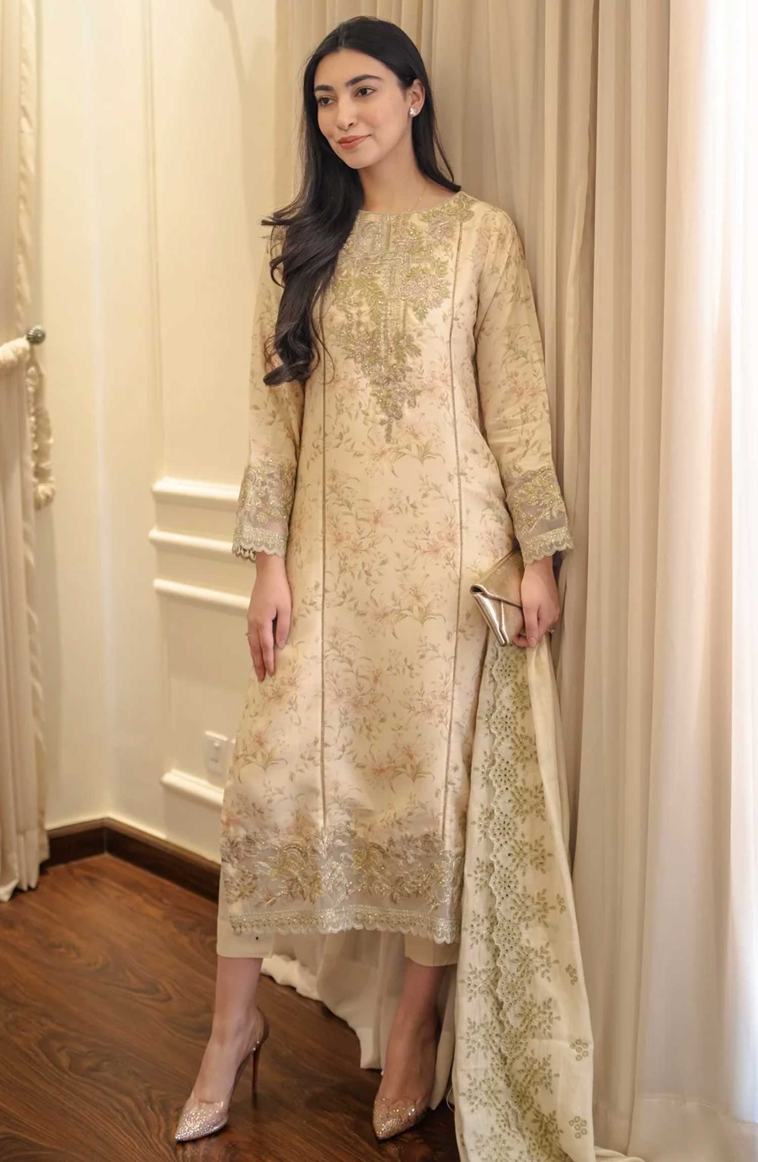 Home Luna Edit By Hues Atelier Embroidered Korean Raw Silk Stitched 2 Piece - Daisy - HA25L - Festive Collection