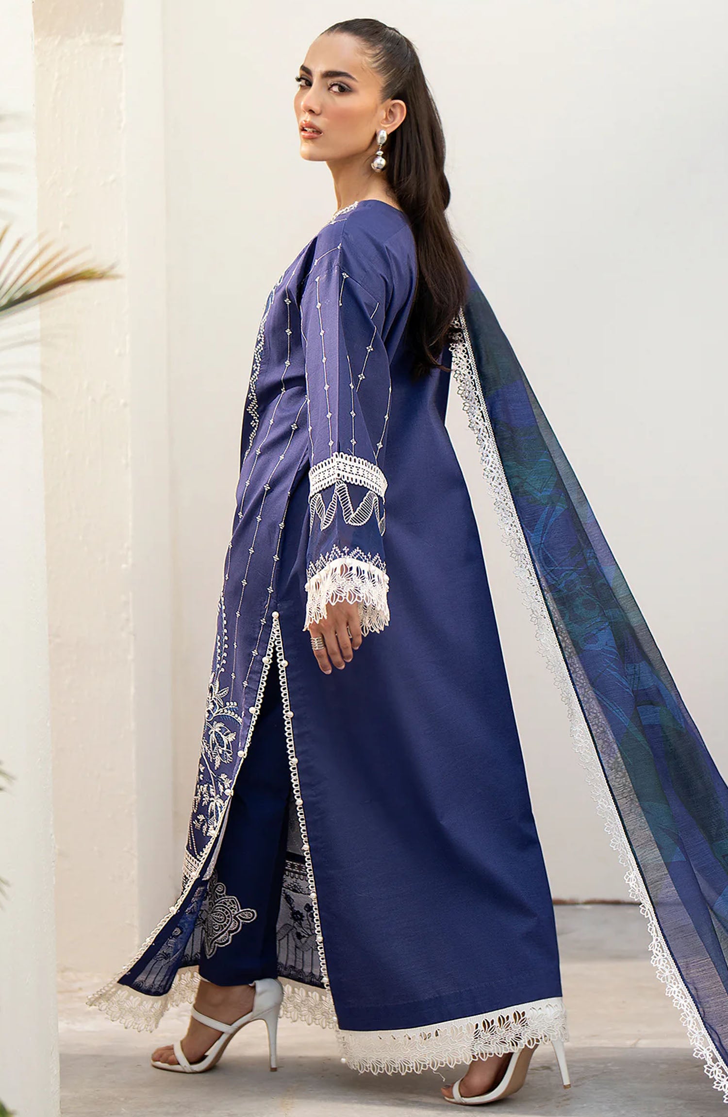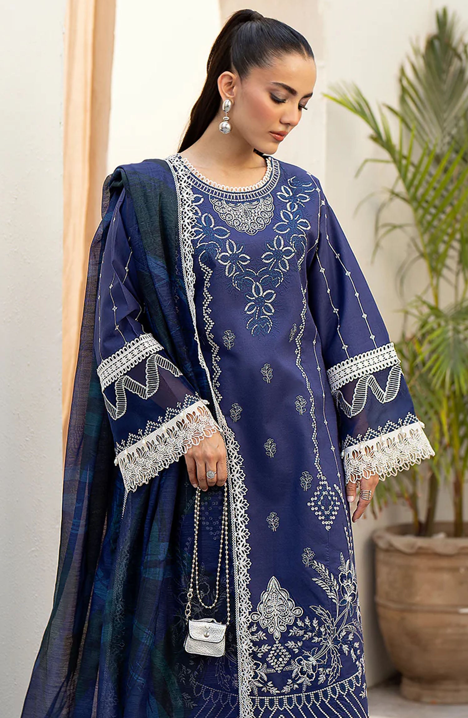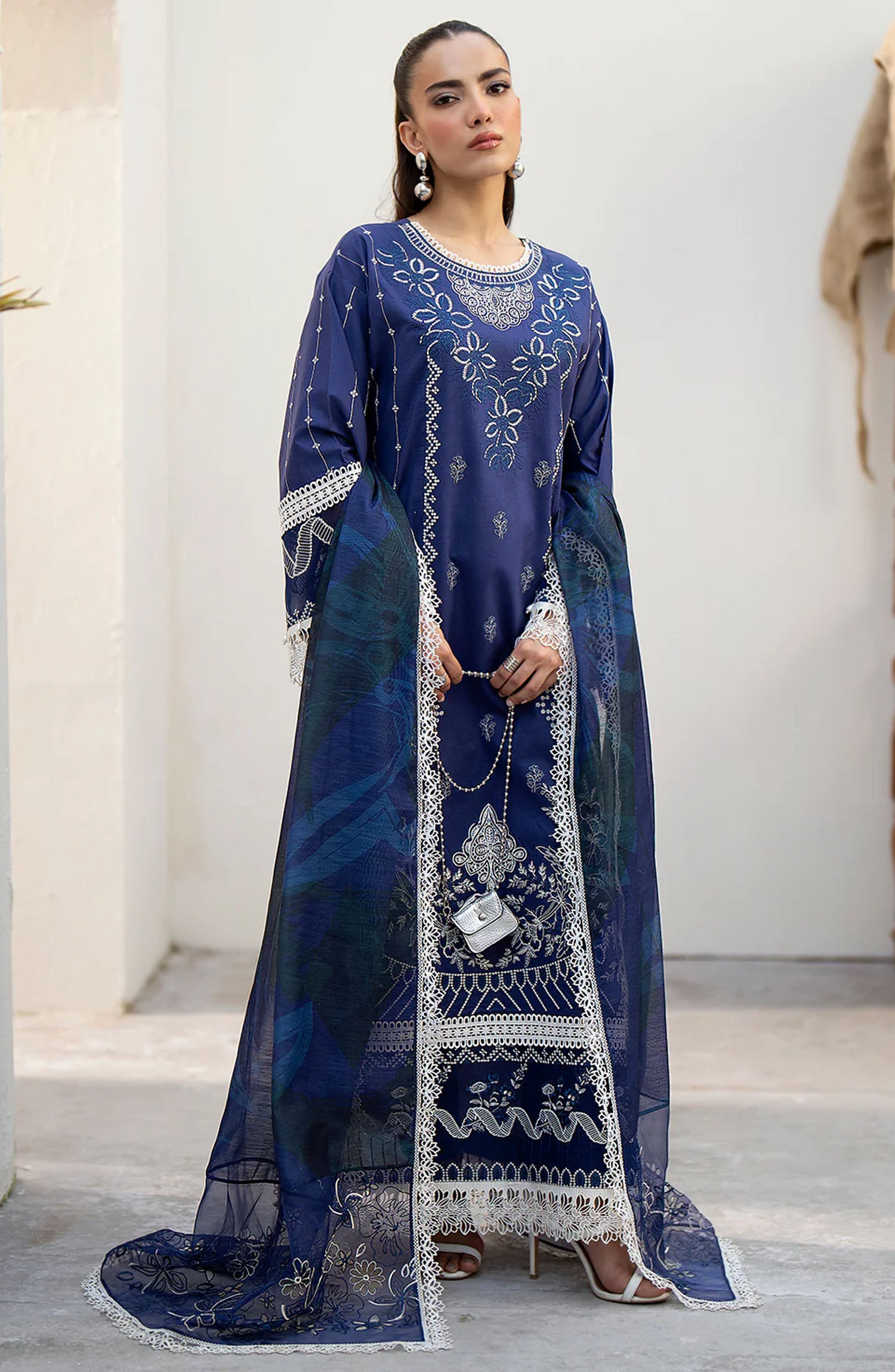 Amna Khadija Embroidered Crinkle Chiffon Unstitched 3 Piece Suit - D-03 - AM25LXC - Blue - Formals Collection