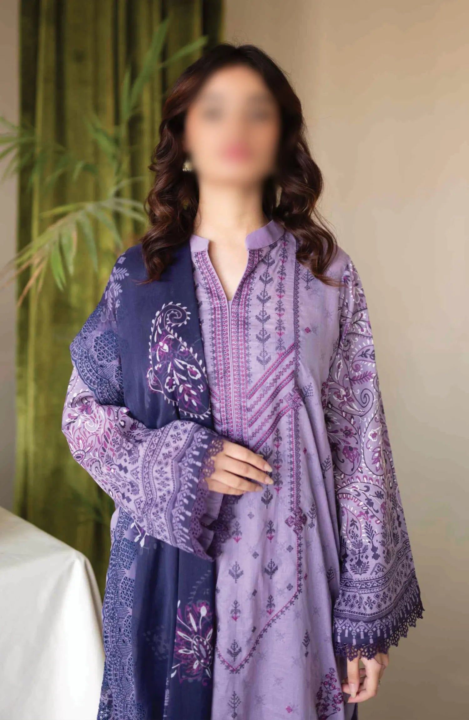Shaista Supreme Embroidered Peach Unstitched 3 Piece Suit - D-90 - SHS25SP - Purple - Winter Collection