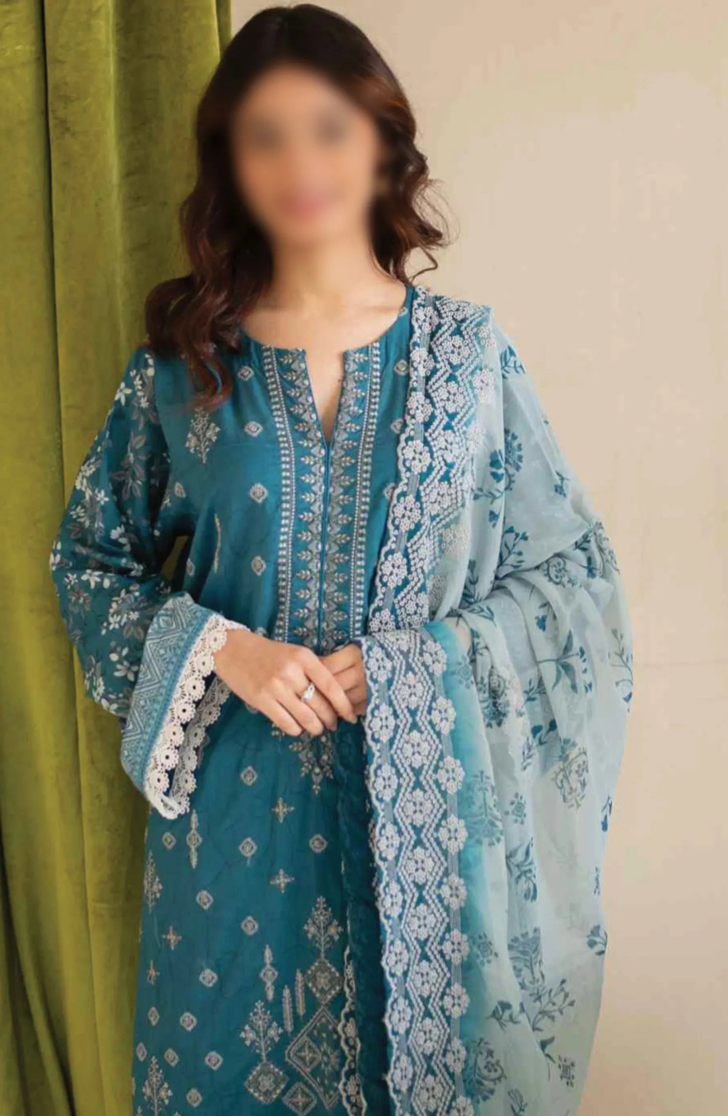 Shaista Supreme Embroidered Peach Unstitched 3 Piece Suit - D-92 - SHS25SP - Blue - Winter Collection