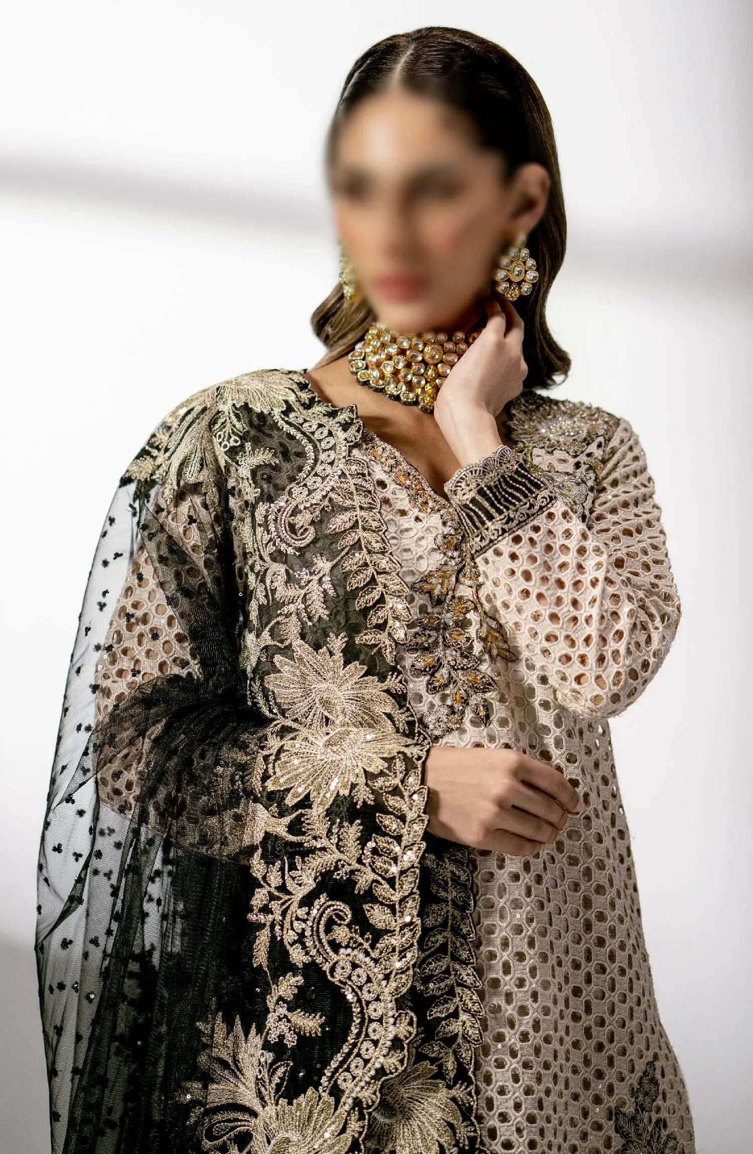 Embroidered Handmade Front,Neck Motif