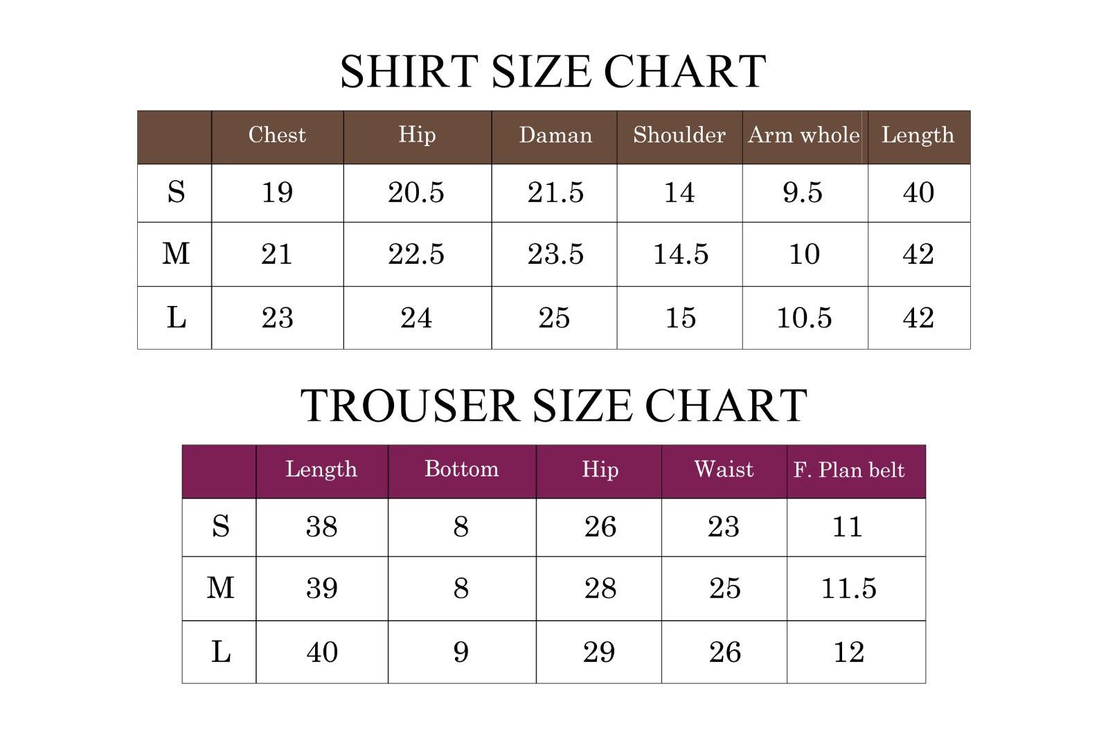 The standard style comes as a long-sleeved kameez and trouser/shawlar.