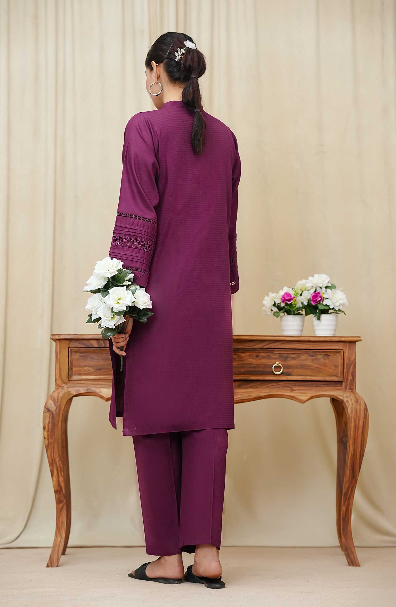 Maahe by Amna Khadija Solids Jacquard Stitched 2 Piece - D-03 - AM25M - Purple - Casual Collection