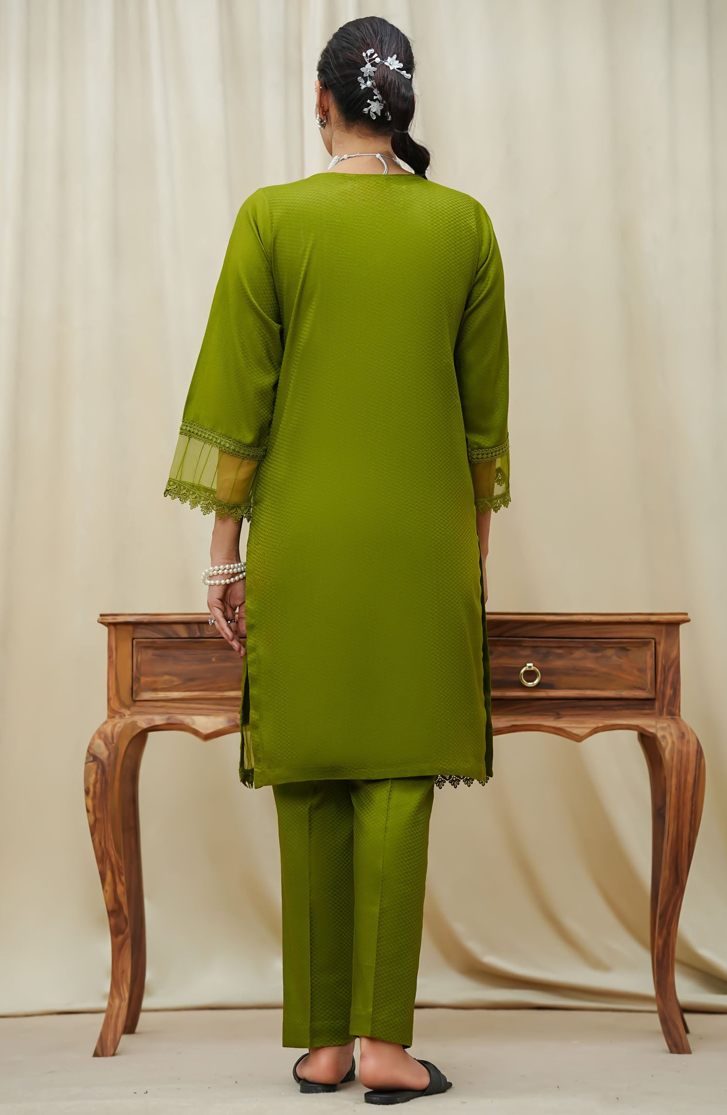 Home Maahe by Amna Khadija Solids Jacquard Stitched 2 Piece Suit - MLPS-13 - AM25M3 - Green - Casual Collection