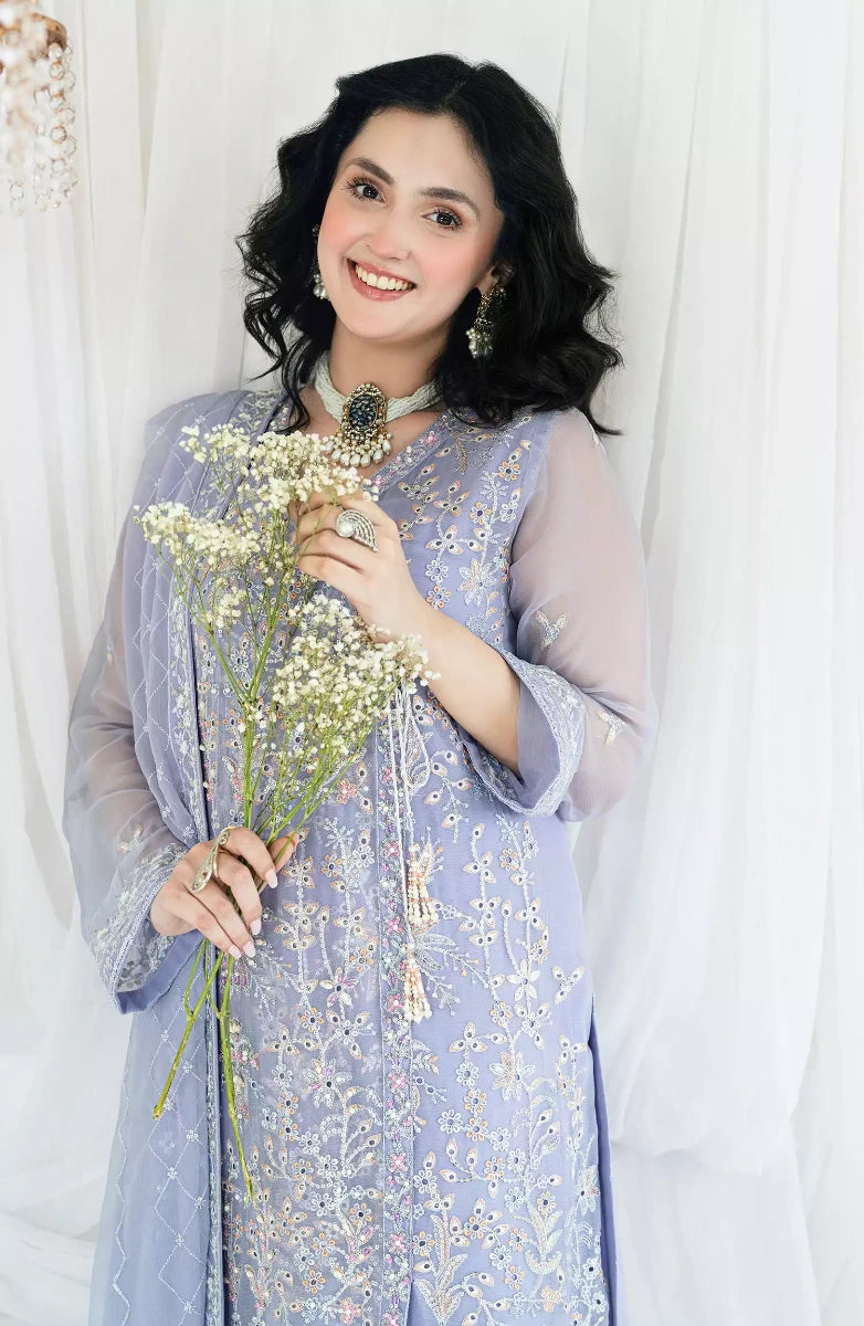 • Embroidered Front Chiffon Left Side