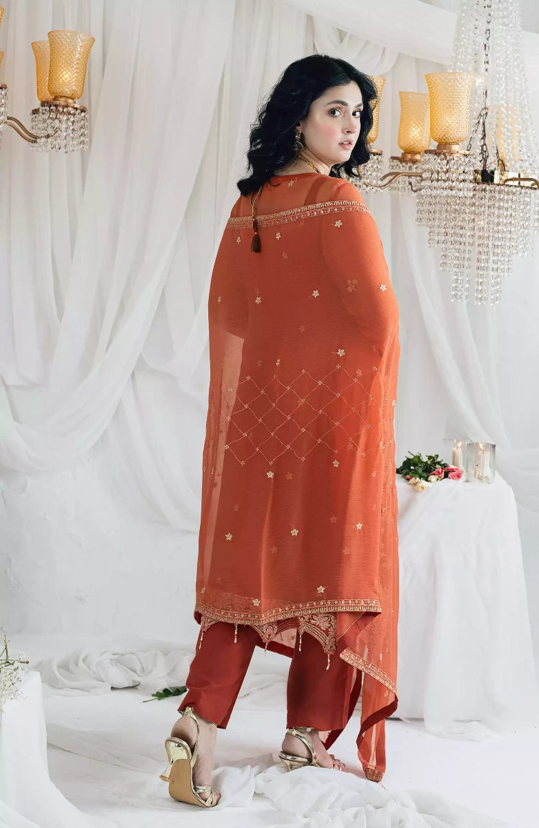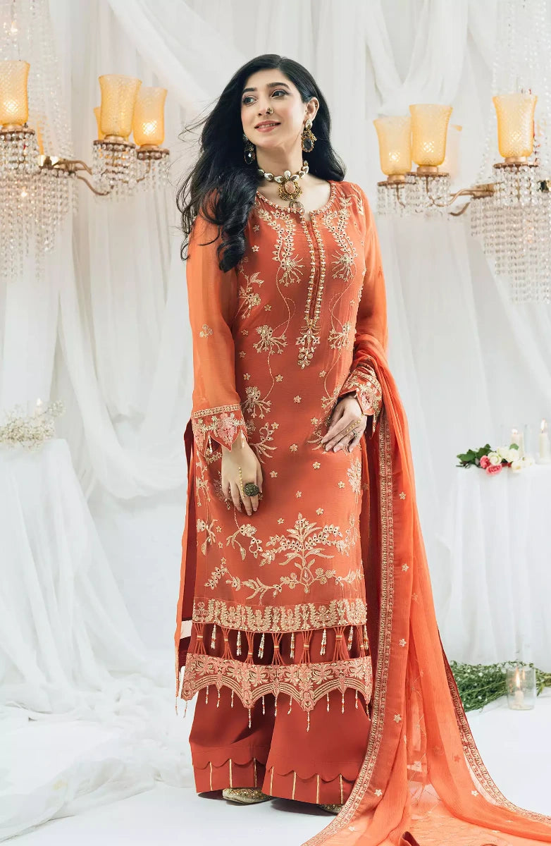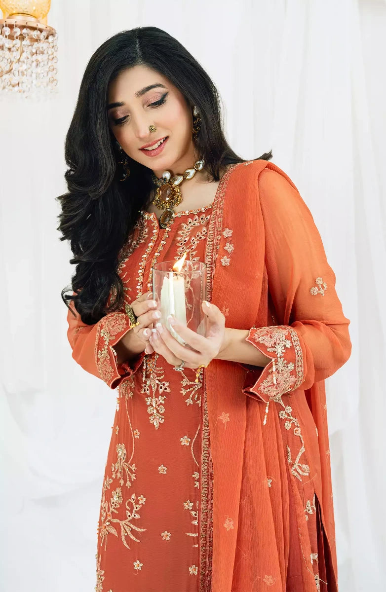 Maahi Unstitched Chiffon Collection has been styled in the image for photography and illustrative purposes.