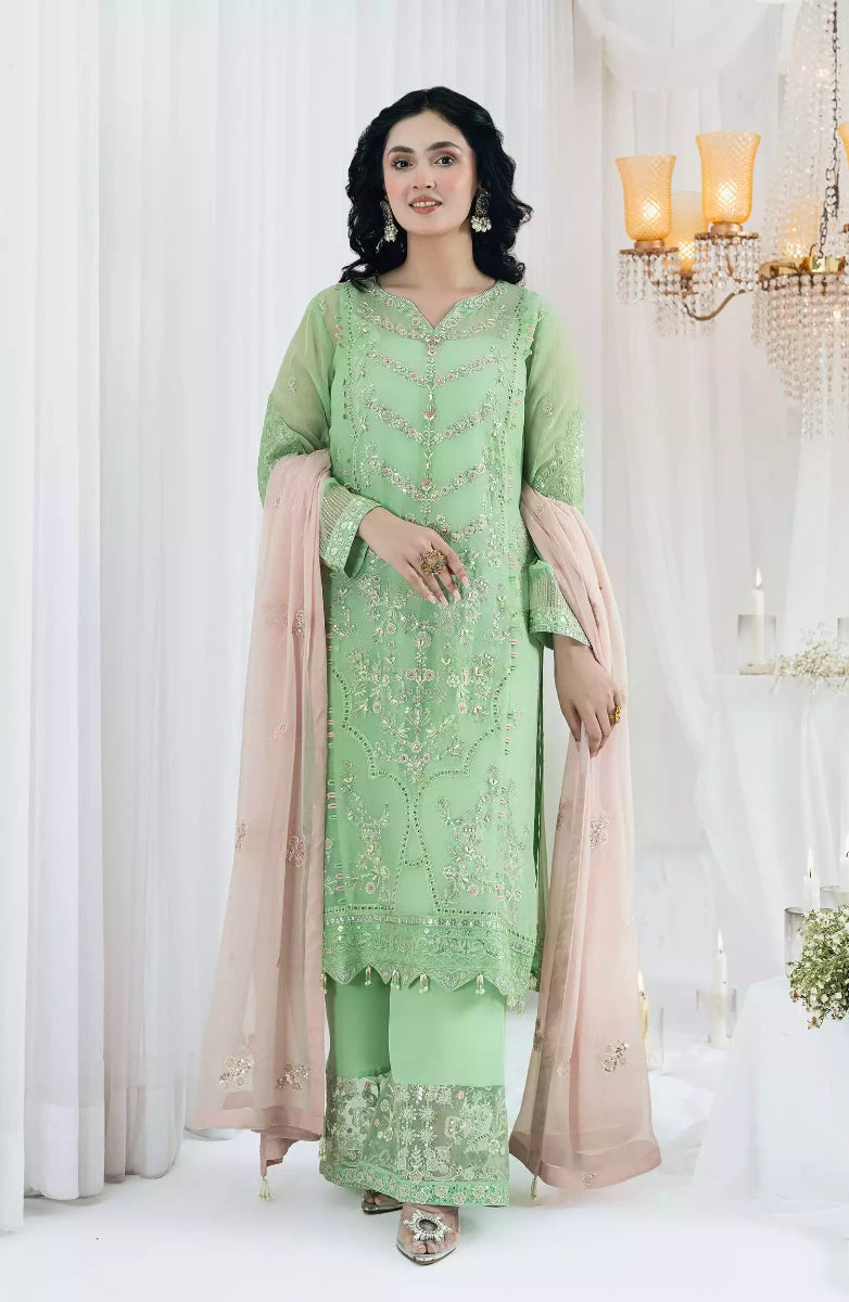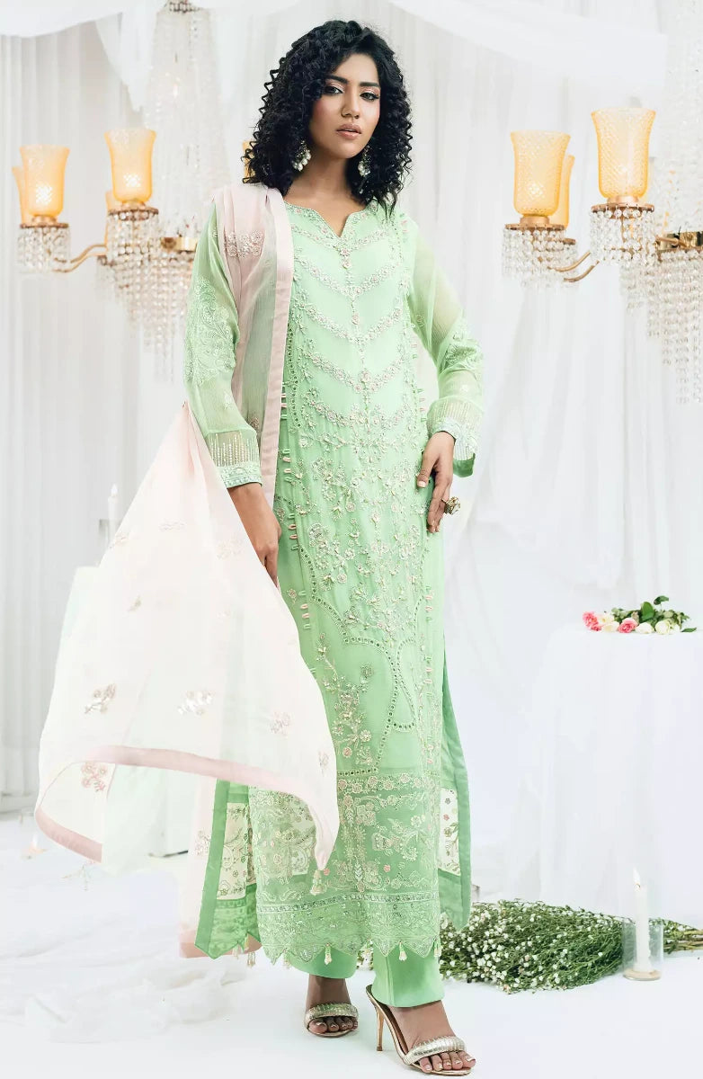 • Hand Embellished Embroidered Front Chiffon