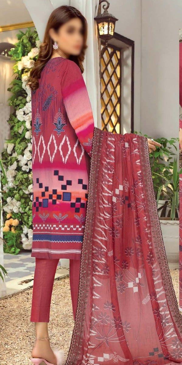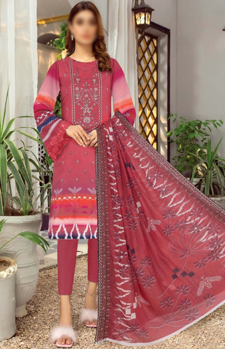 Amna Khadija Embroidered Crinkle Chiffon Unstitched 3 Piece Suit - D-01 - AM25LXC - Red - Formals Collection