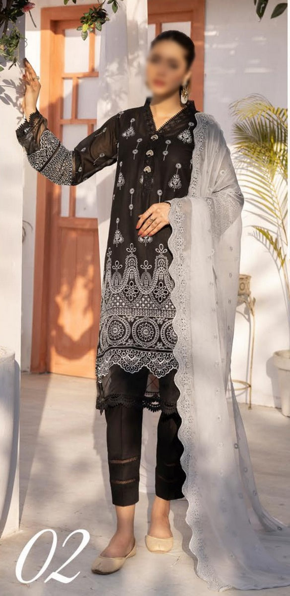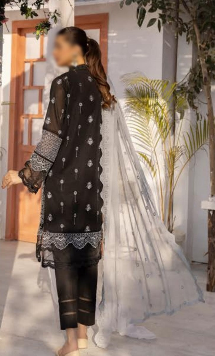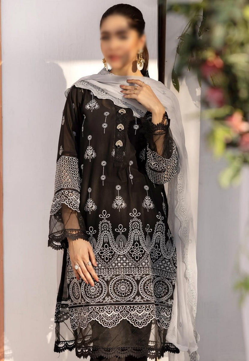 Mahee's Excluisve Elegant Embroidered Swiss Unstitched Collection has been styled in the image for photography and illustrative purposes.