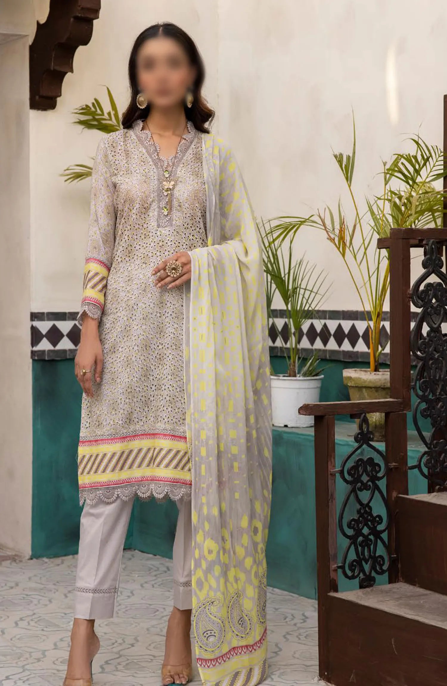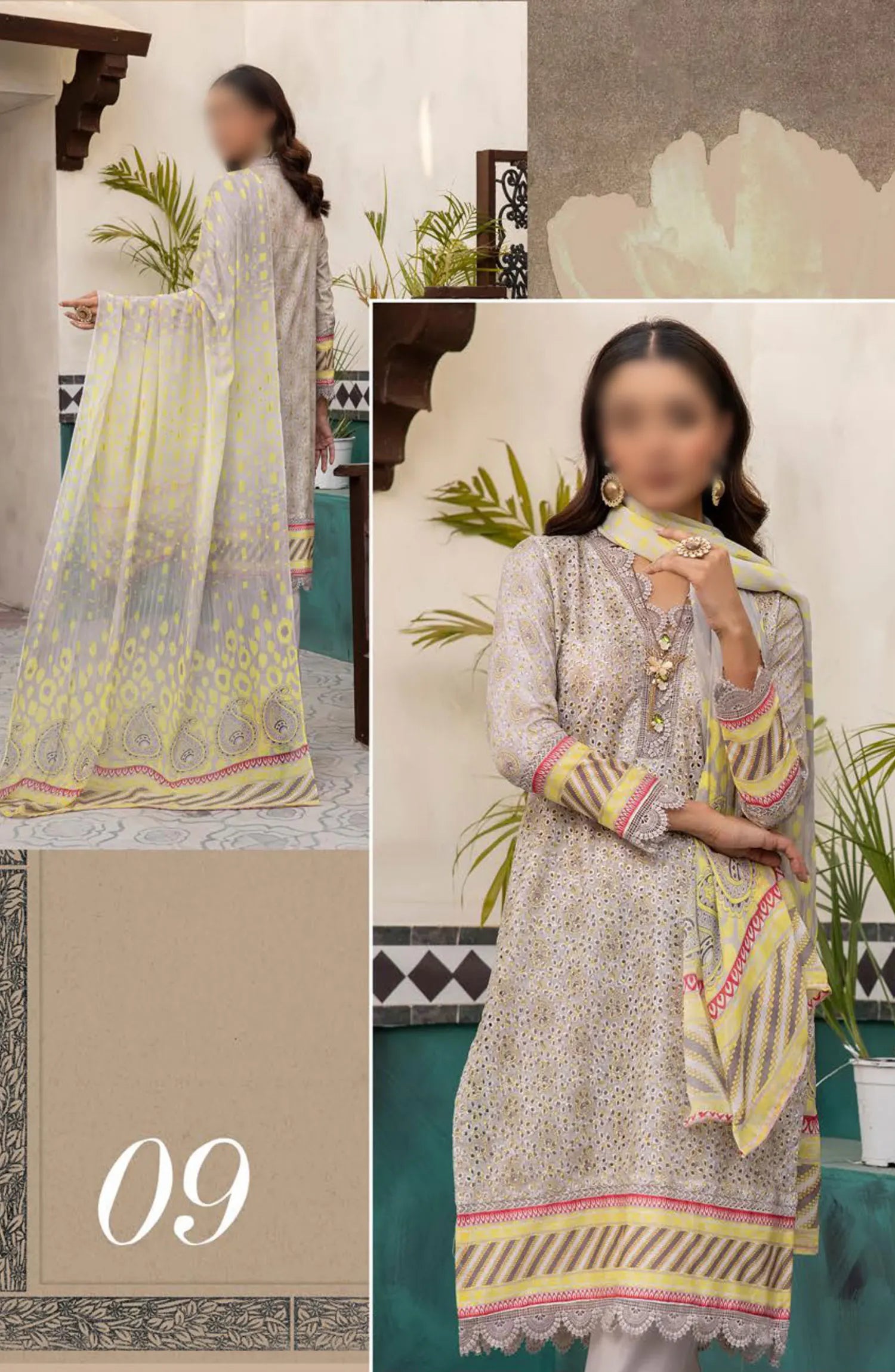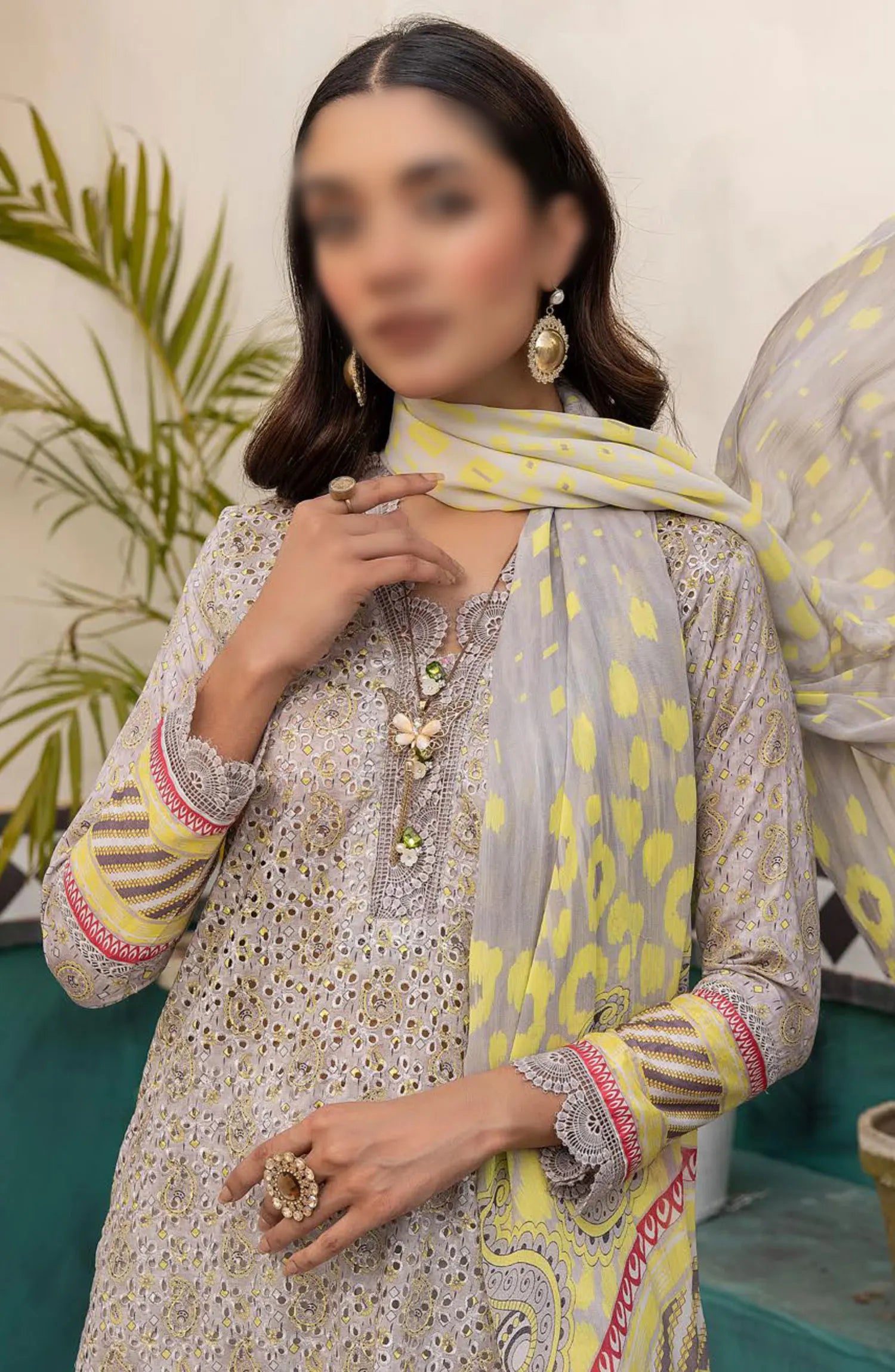 Mahee's Printed Chikankari Lawn Collection 2024 has been styled in the image for photography and illustrative purposes.