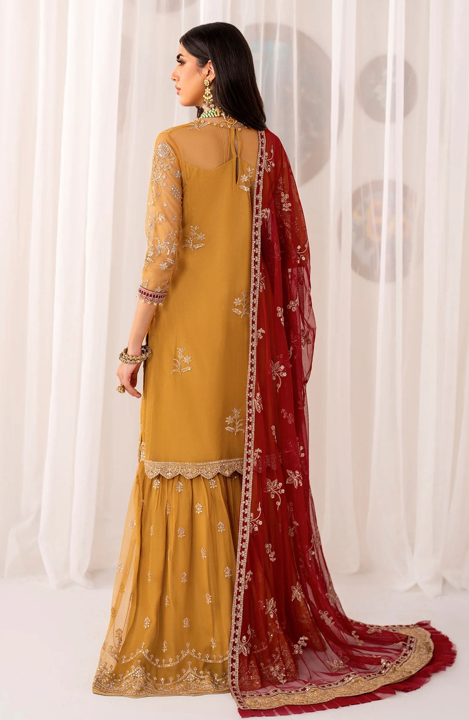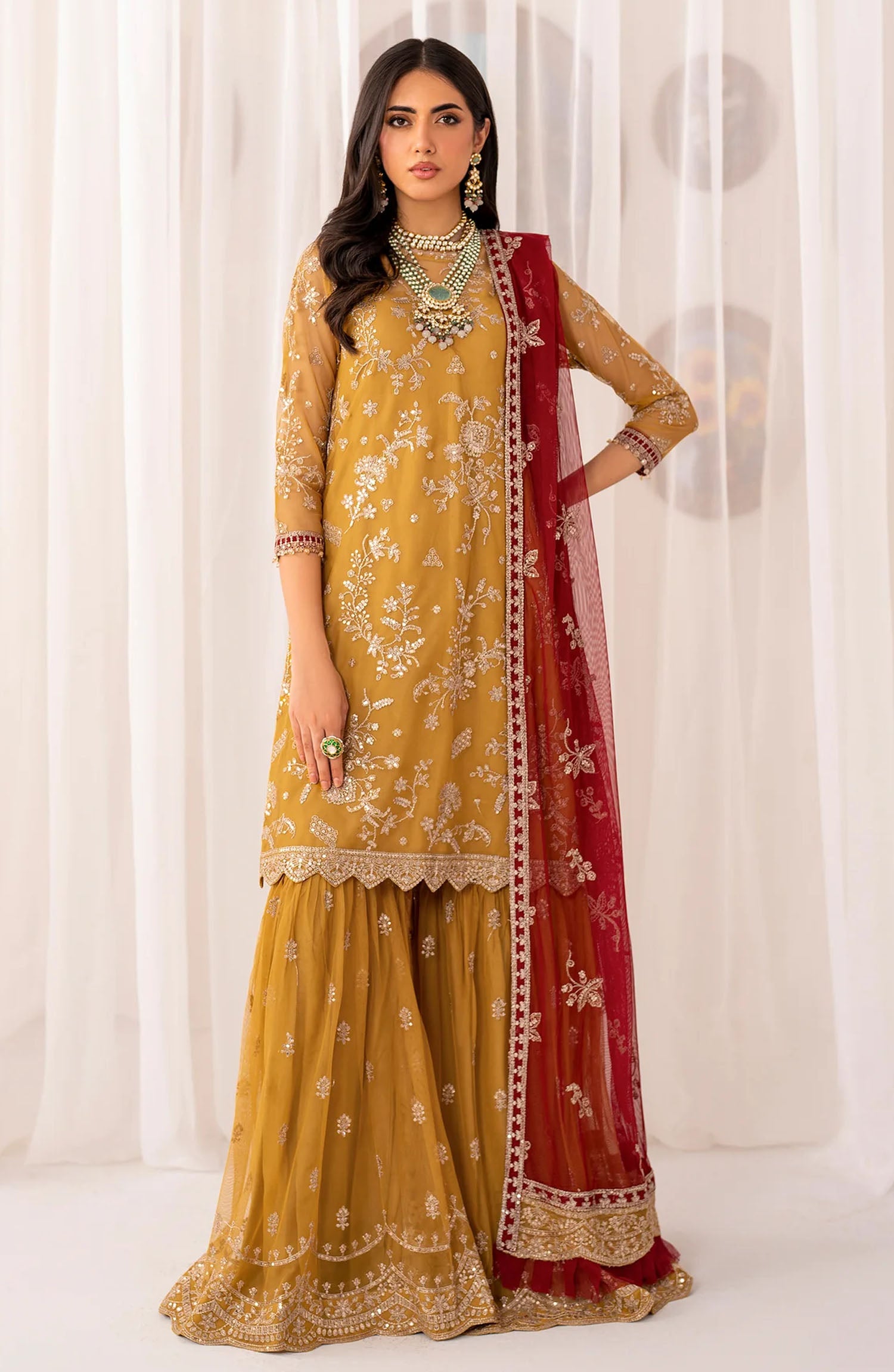 Gharara: Sequins Embroidered Net Extra Plain Fabric