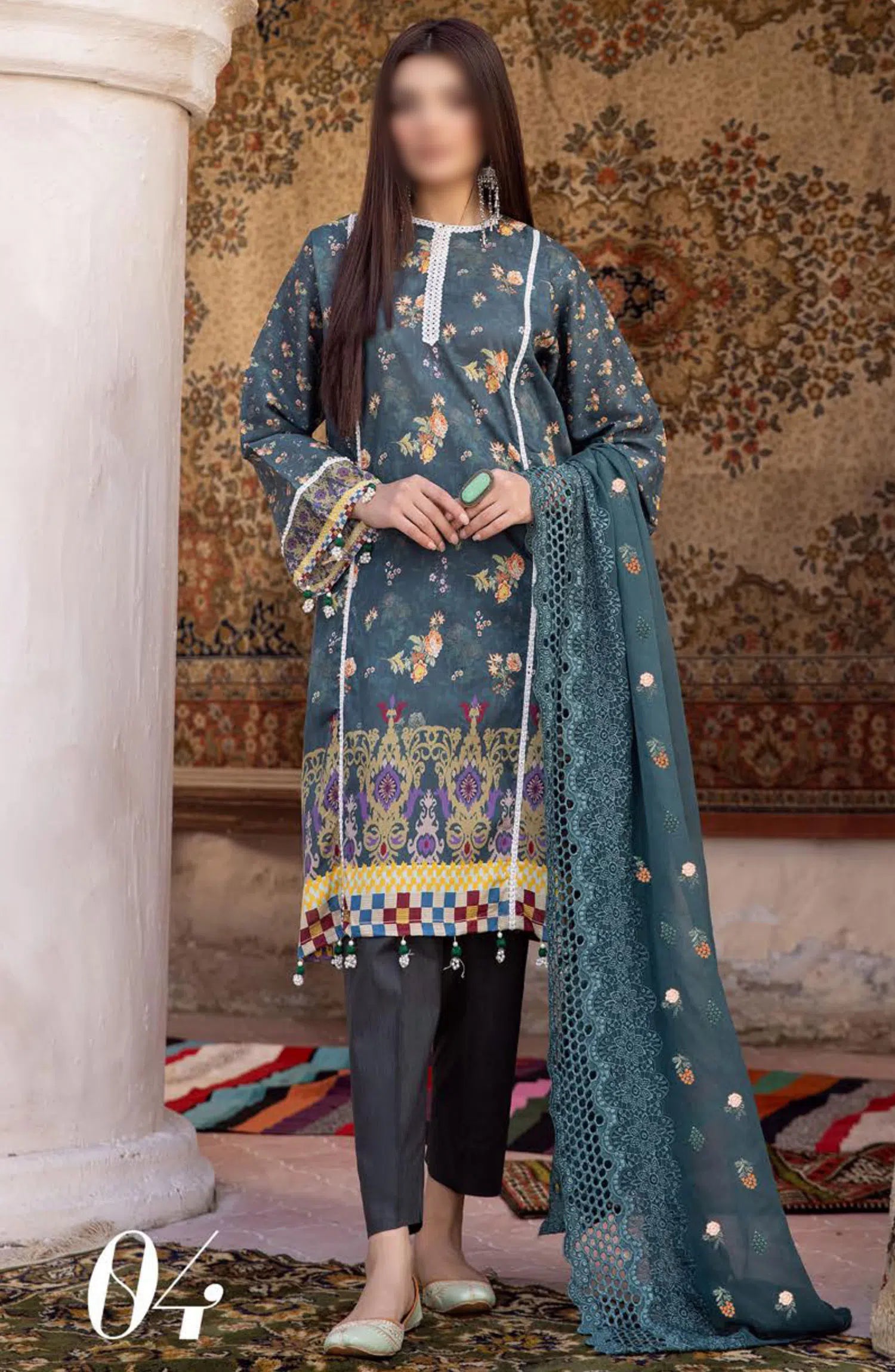 3 Piece Digital Printed Lawn Suit with Embroidered Crinckle Dupatta.