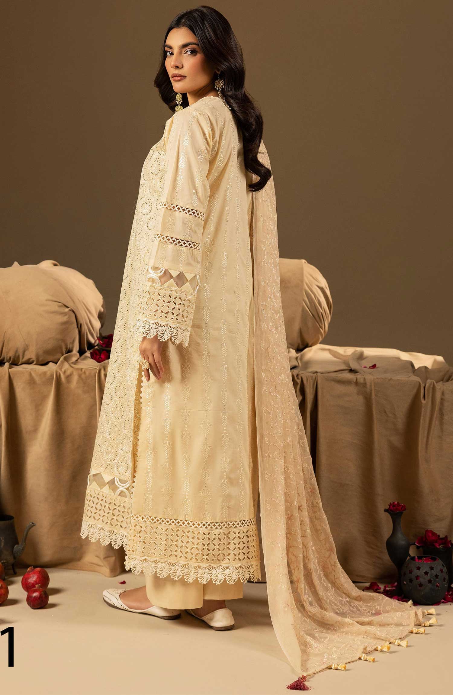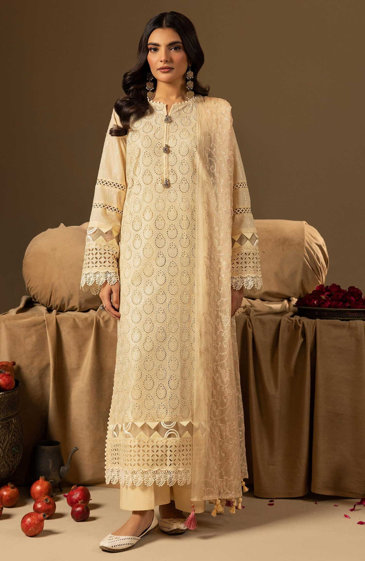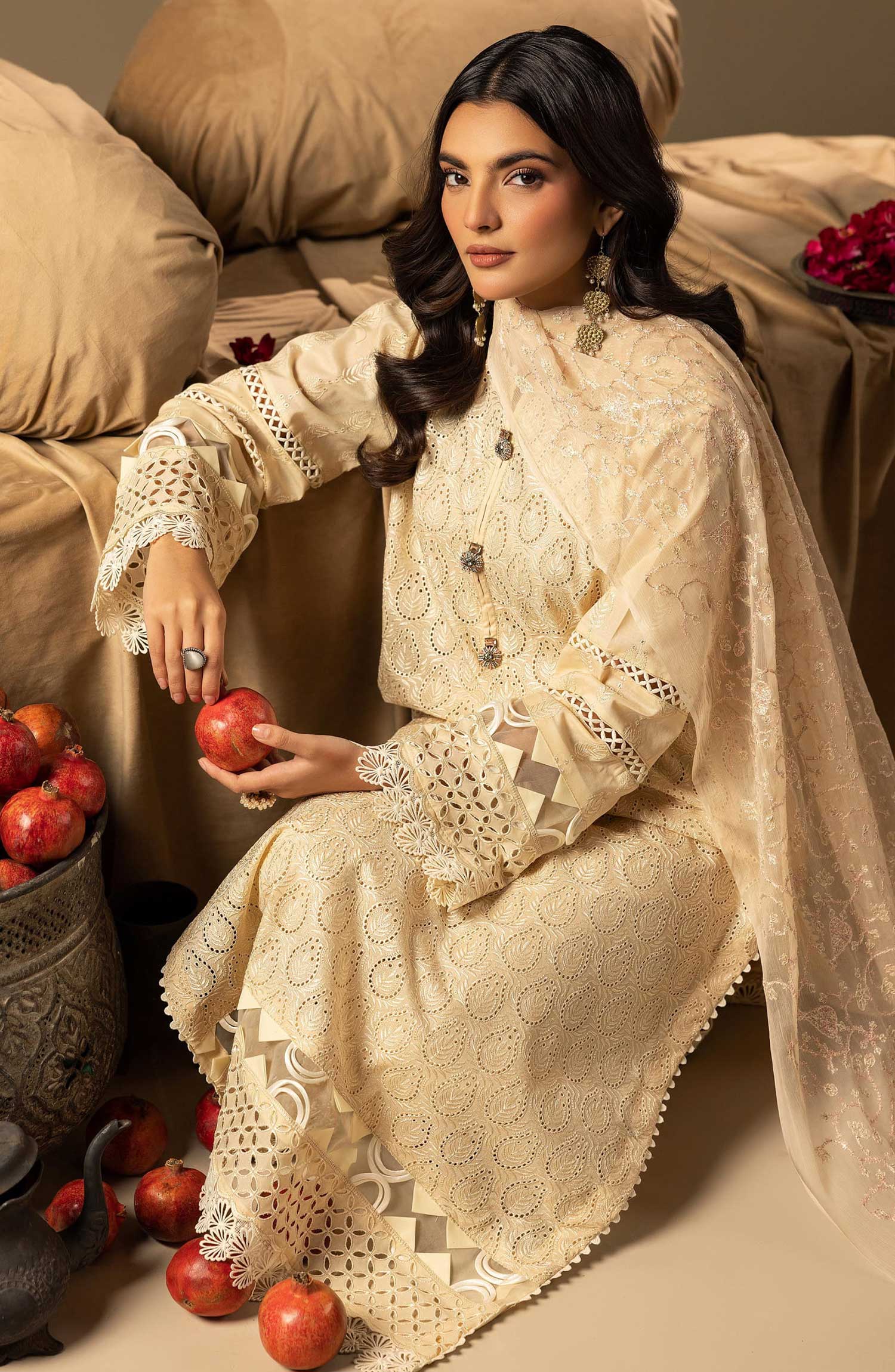 3 Piece Embroidered Chikankari Lawn Suit with Embroidered Crinkle Dupatta