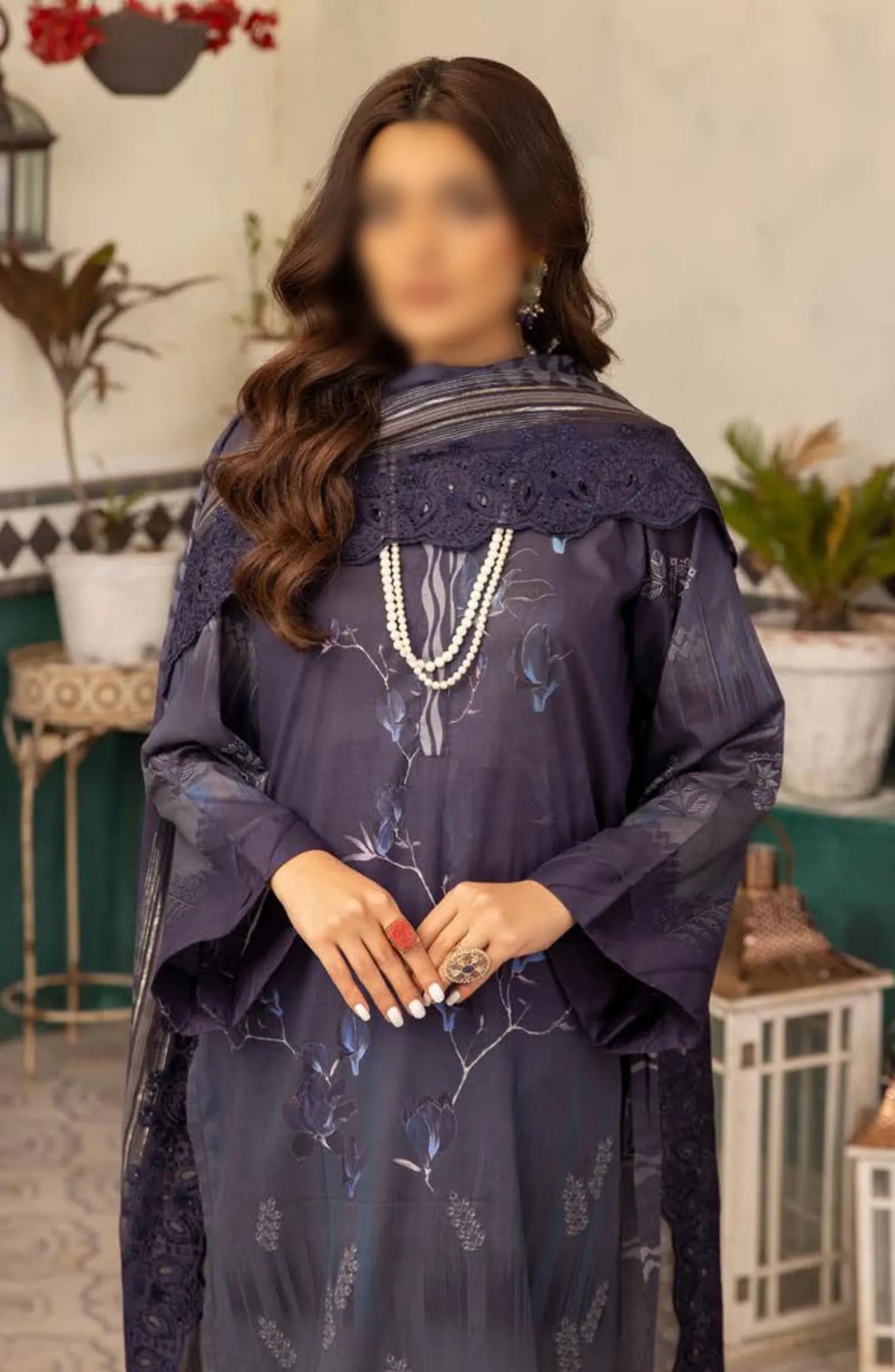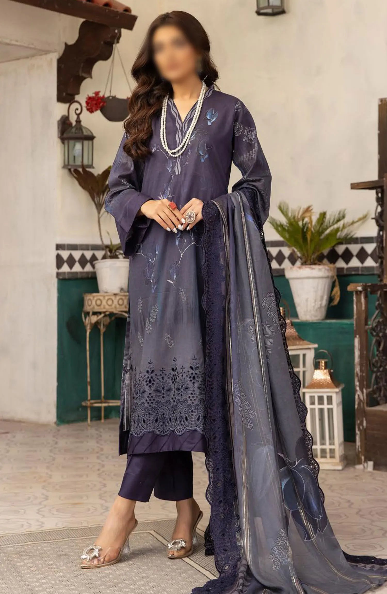 3 Piece Embroidered Lawn Suit with Embroidered Diamond Dupatta .