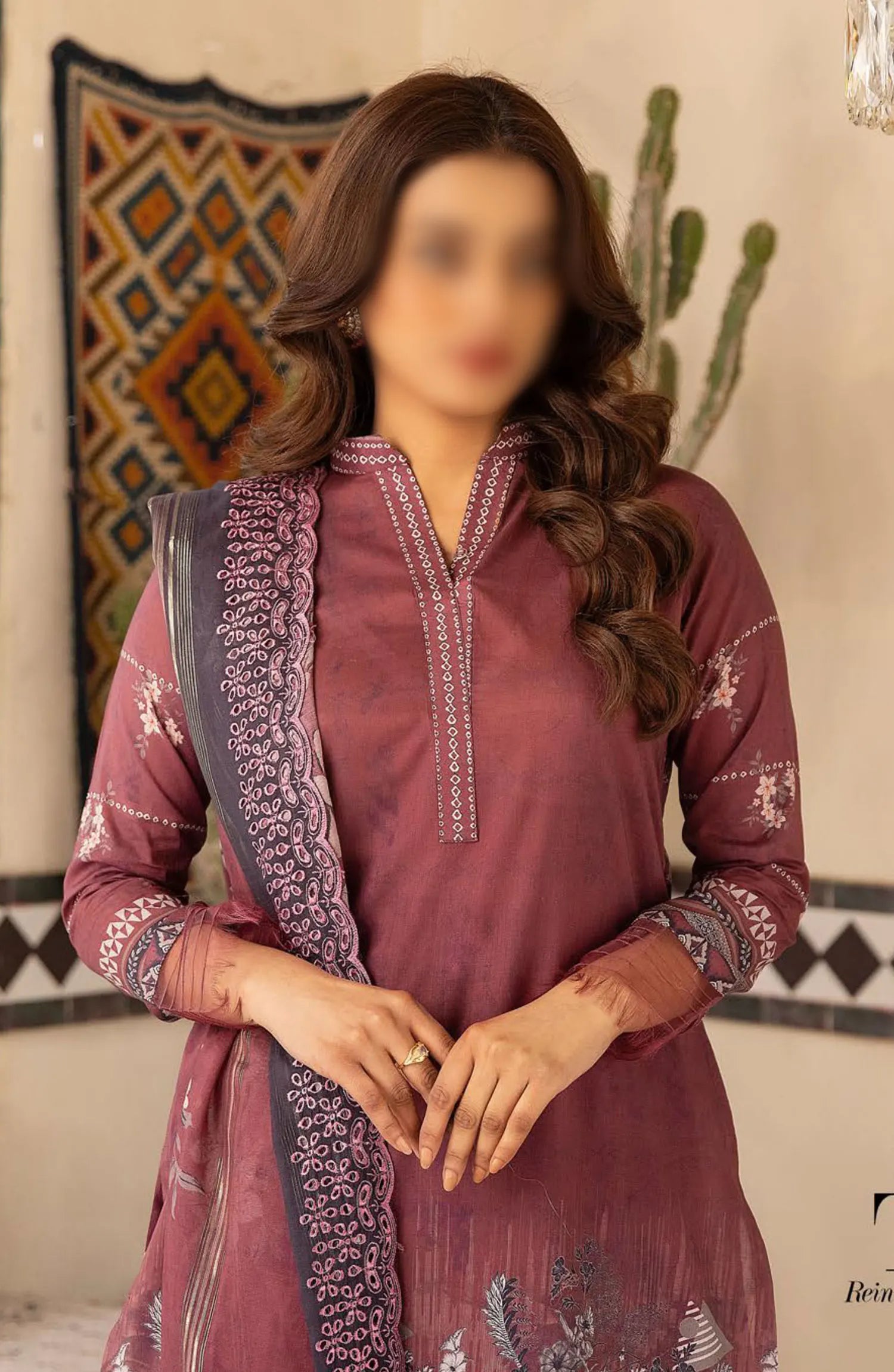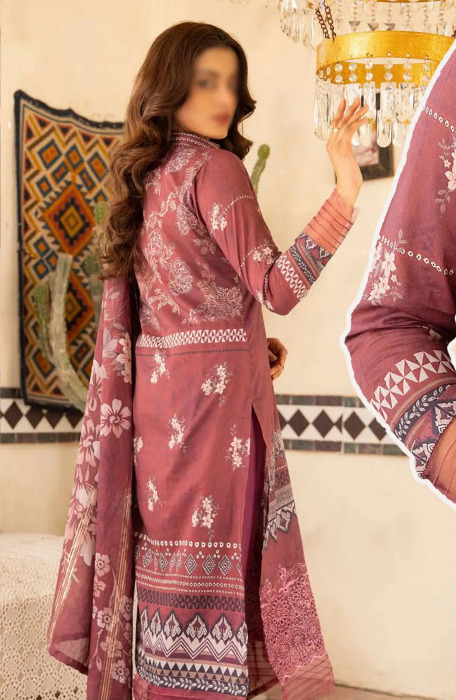 3 Piece Embroidered Lawn Suit with Embroidered Diamond Dupatta .