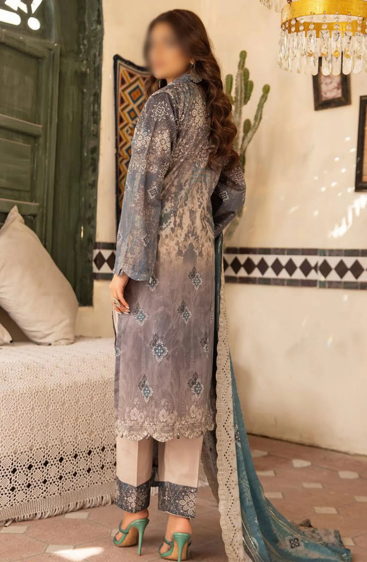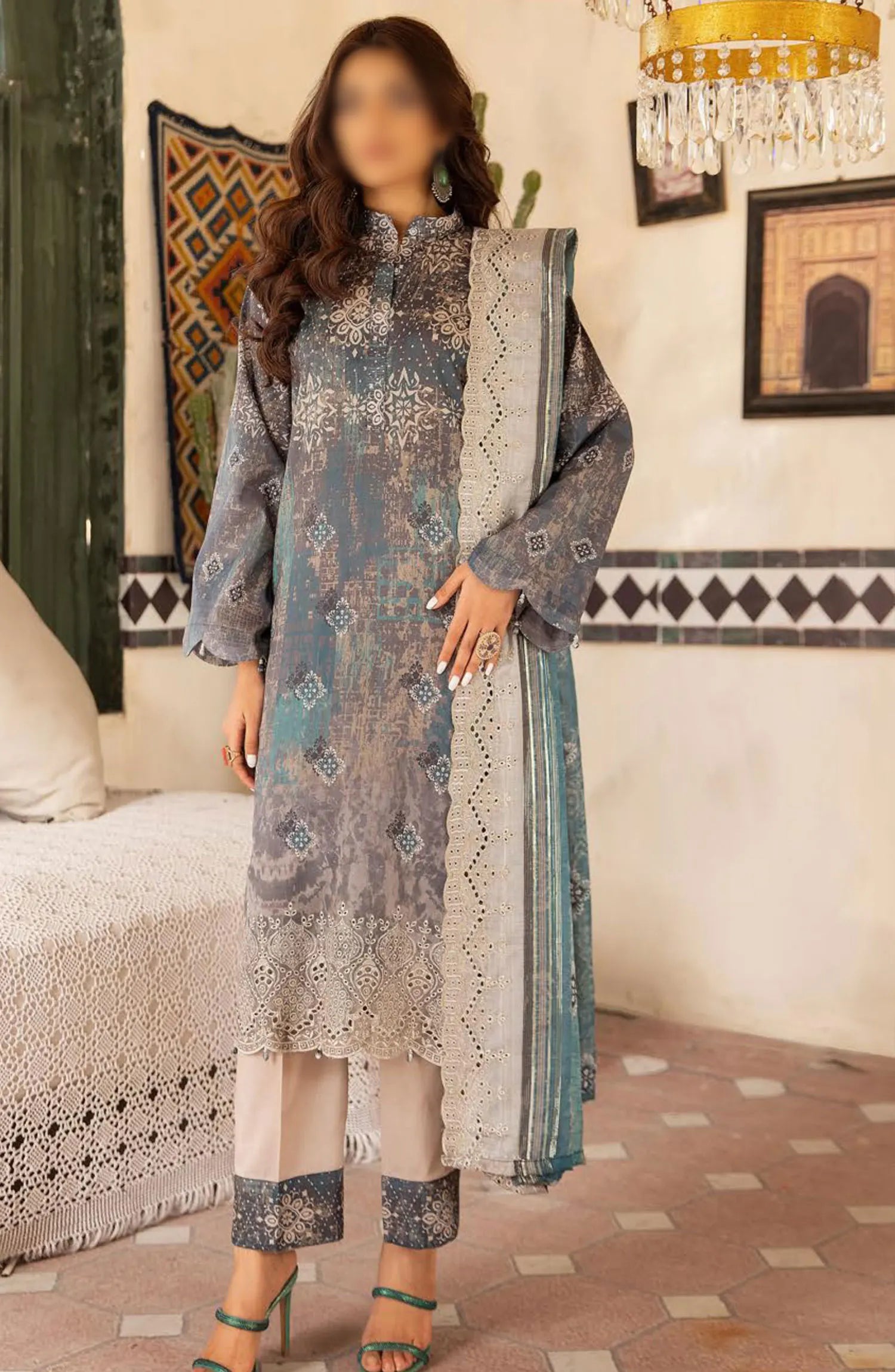 3 Piece Embroidered Lawn Suit with Embroidered Diamond Dupatta .