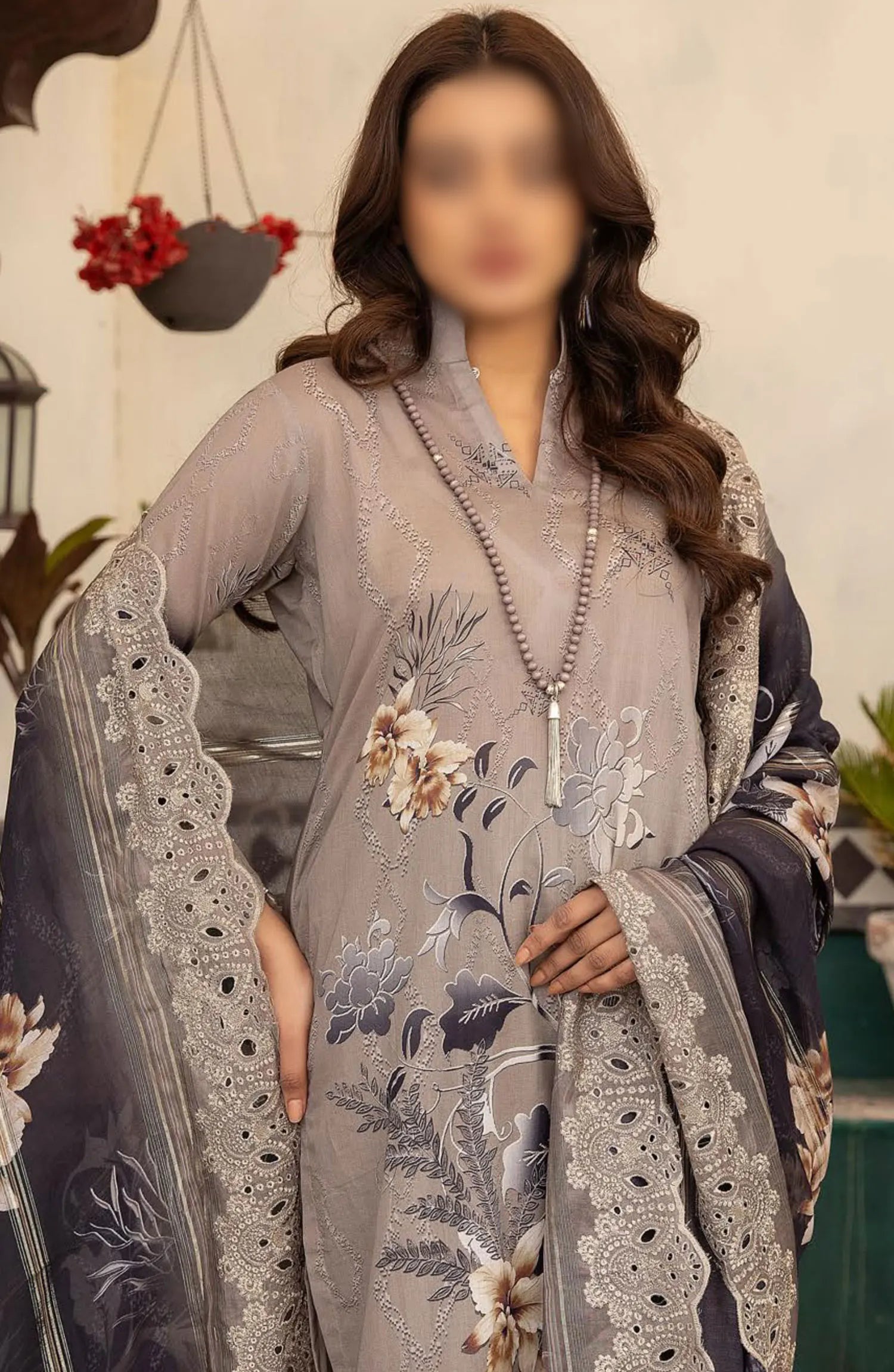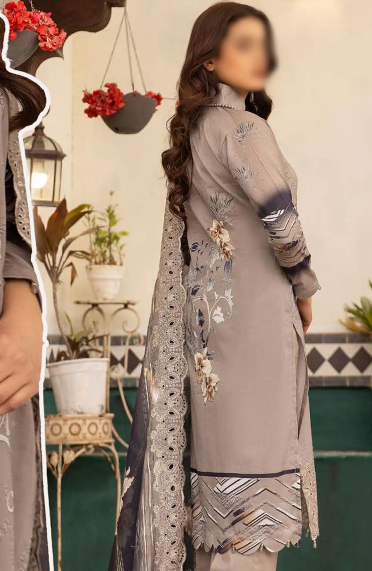 3 Piece Embroidered Lawn Suit with Embroidered Diamond Dupatta .