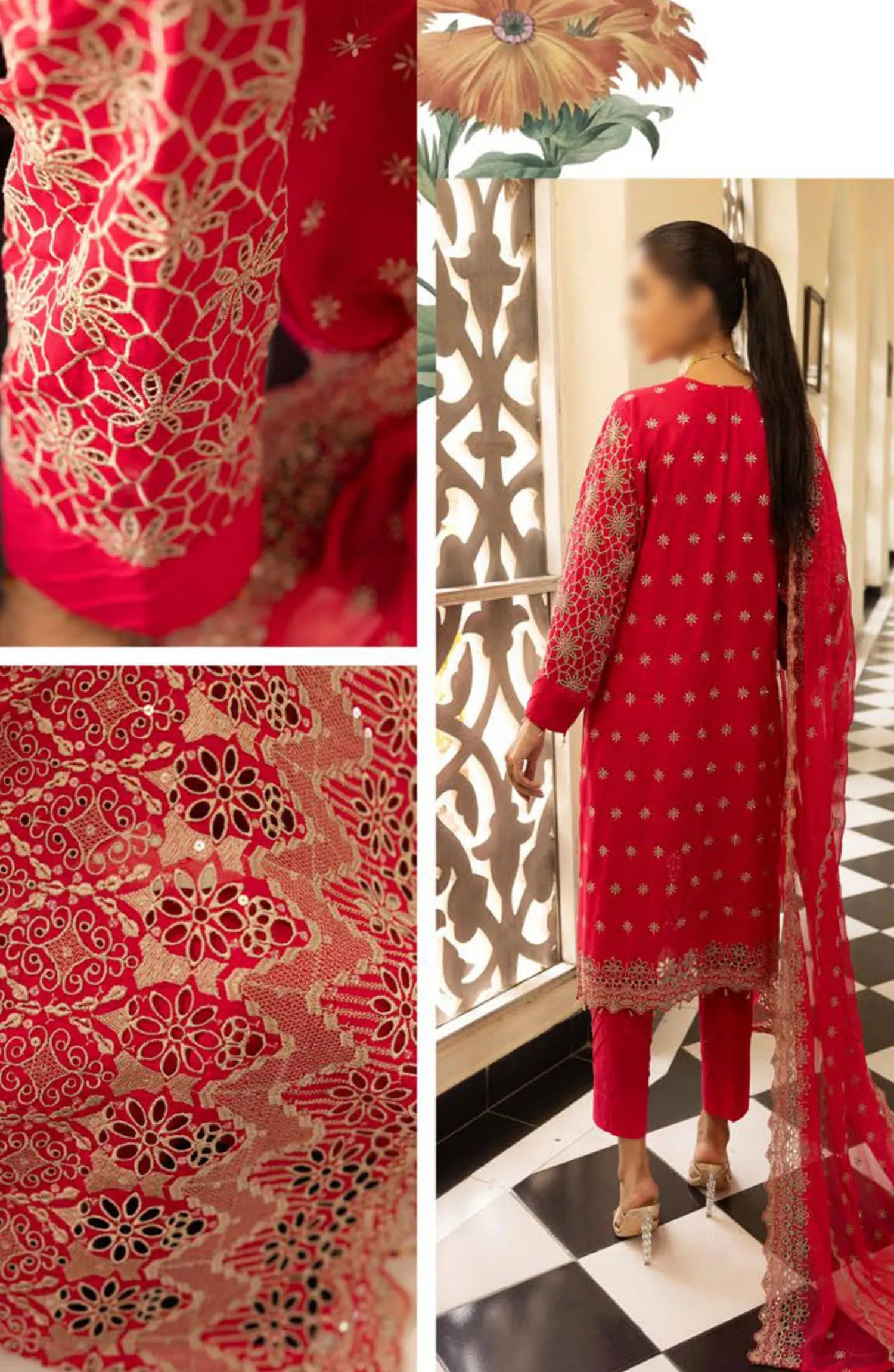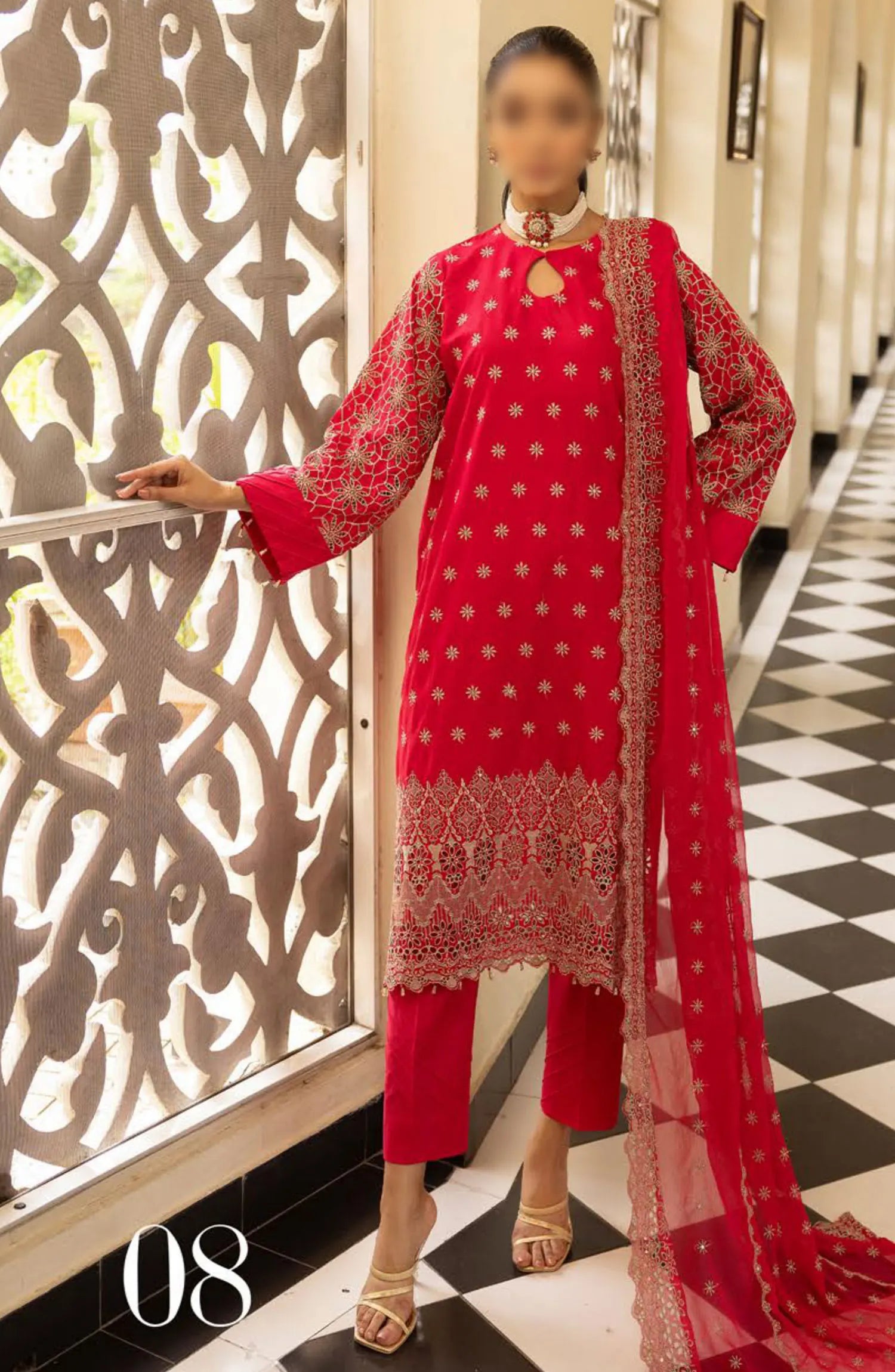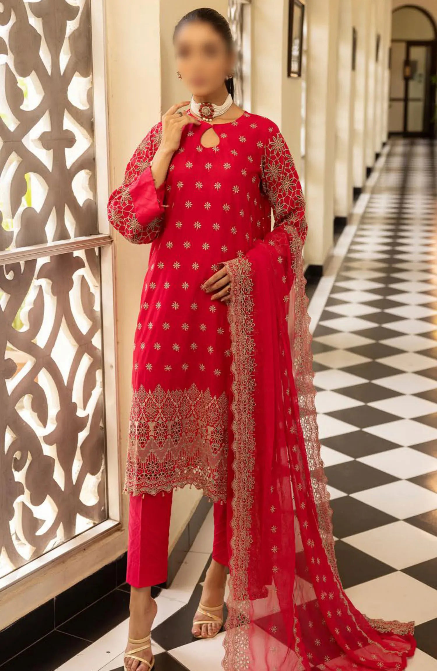 Amna Khadija Embroidered Crinkle Chiffon Unstitched 3 Piece Suit - D-04 - AM25LXC - Pink - Formals Collection