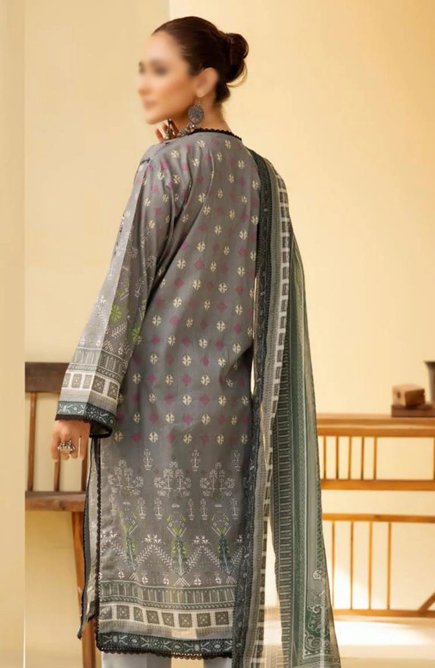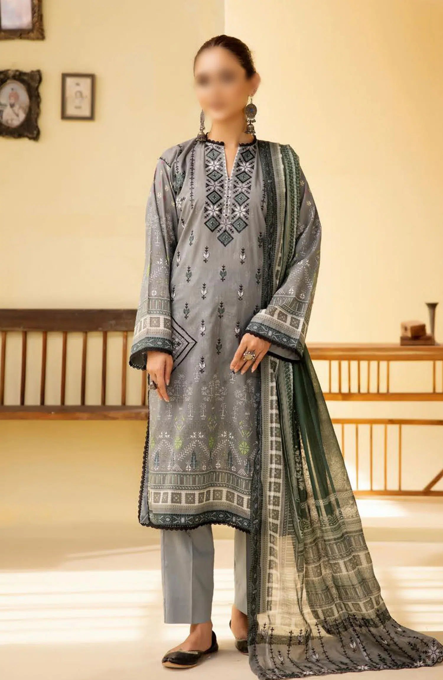 3 Piece Embroidered Lawn Suit with Embroidered Voile Dupatta .