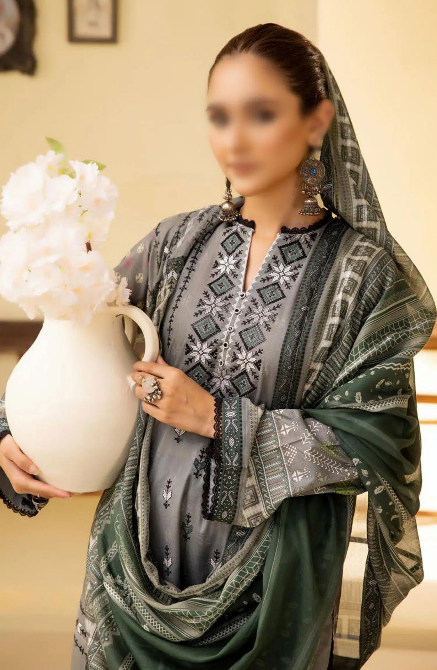 Sadabahar Signature Embroidered Khaddar Stitched 3 Piece Suit - Design-02 - SBD25SNA - Green - Winter Collection