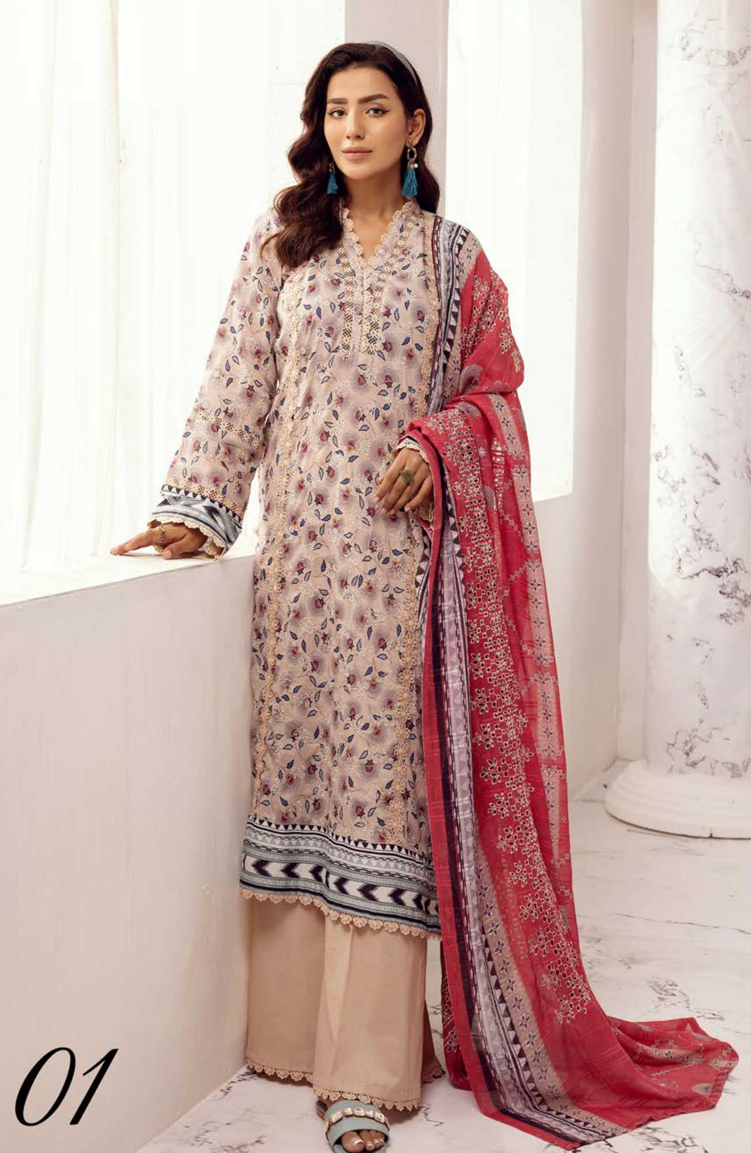 Home Mahees Hoorain by Riaz Arts Embroidered Lawn Unstitched 3 Piece - D-01 - RA25MH - Tea Pink - Summer Collection