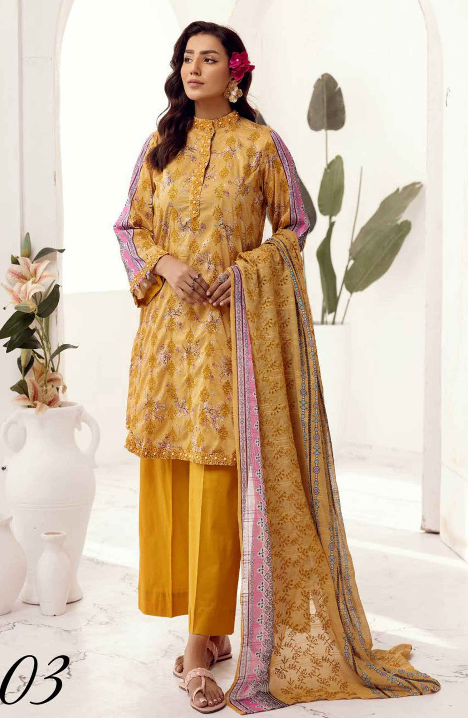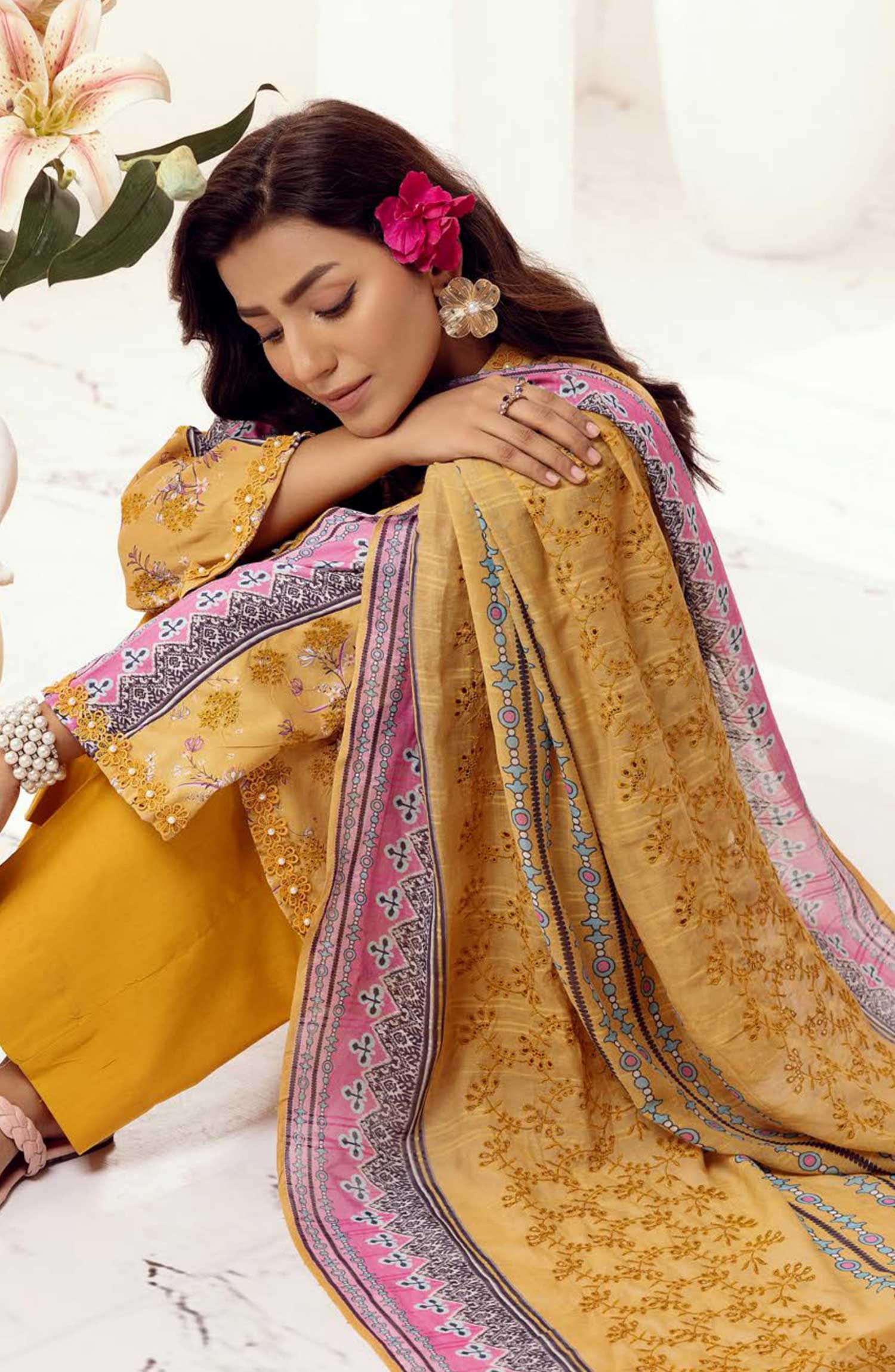 3 Piece Embroidered Lawn Suit with Embroidered Voile Dupatta