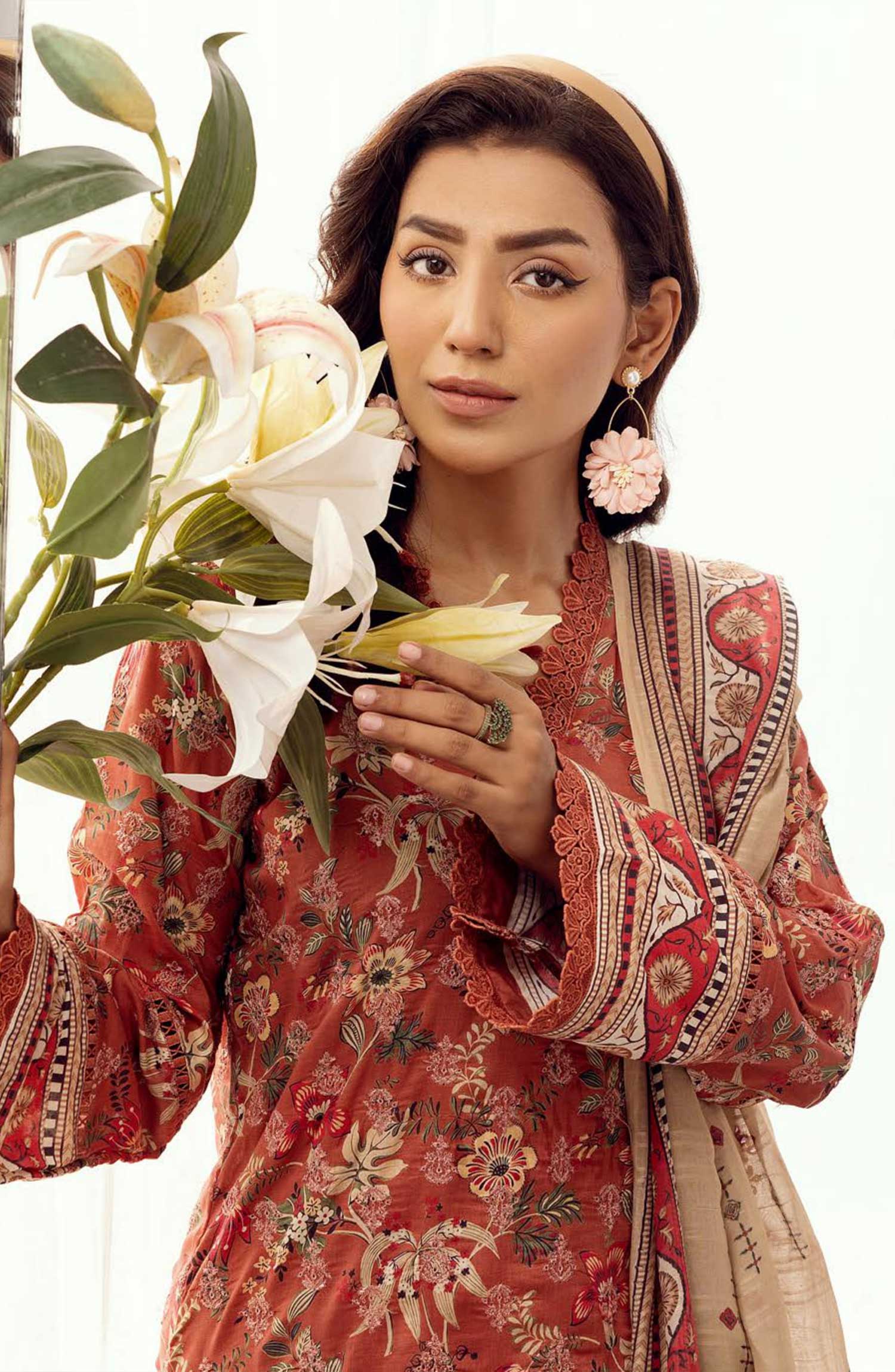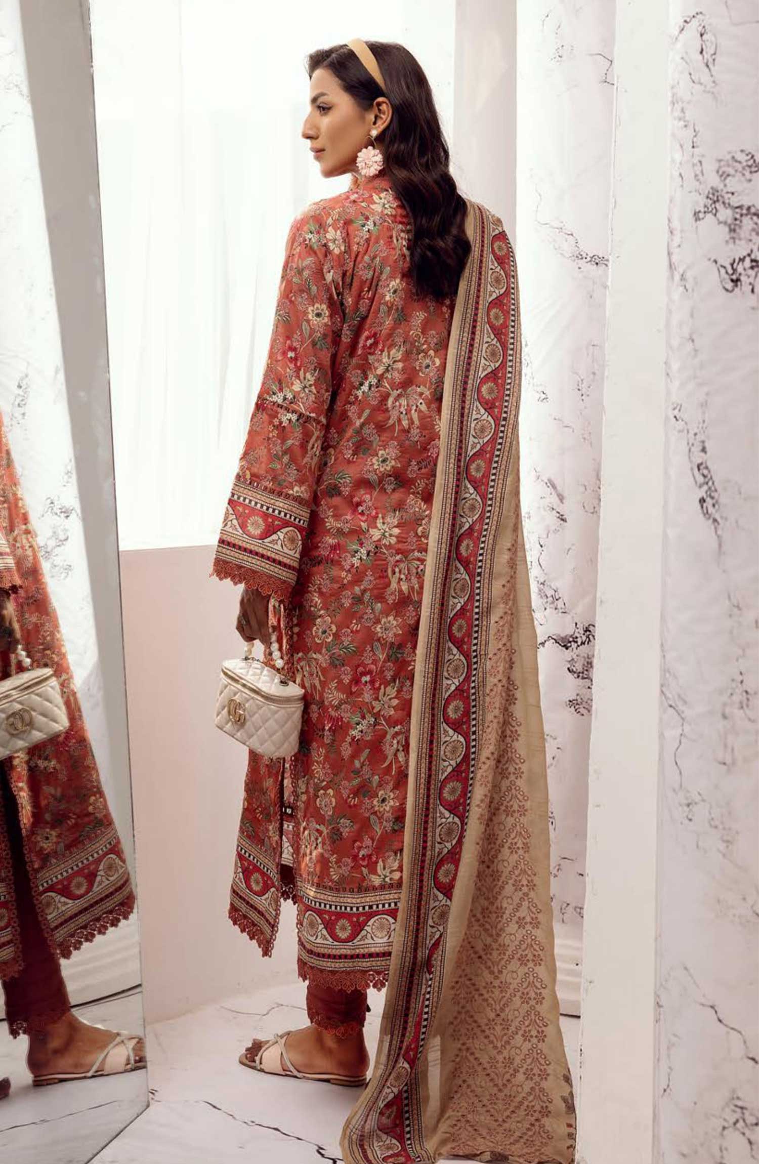 Home Mahees Hoorain by Riaz Arts Embroidered Lawn Unstitched 3 Piece - D-05 - RA25MH - Burgundy Red - Summer Collection