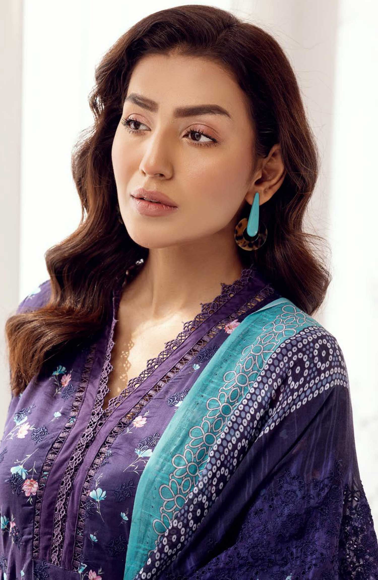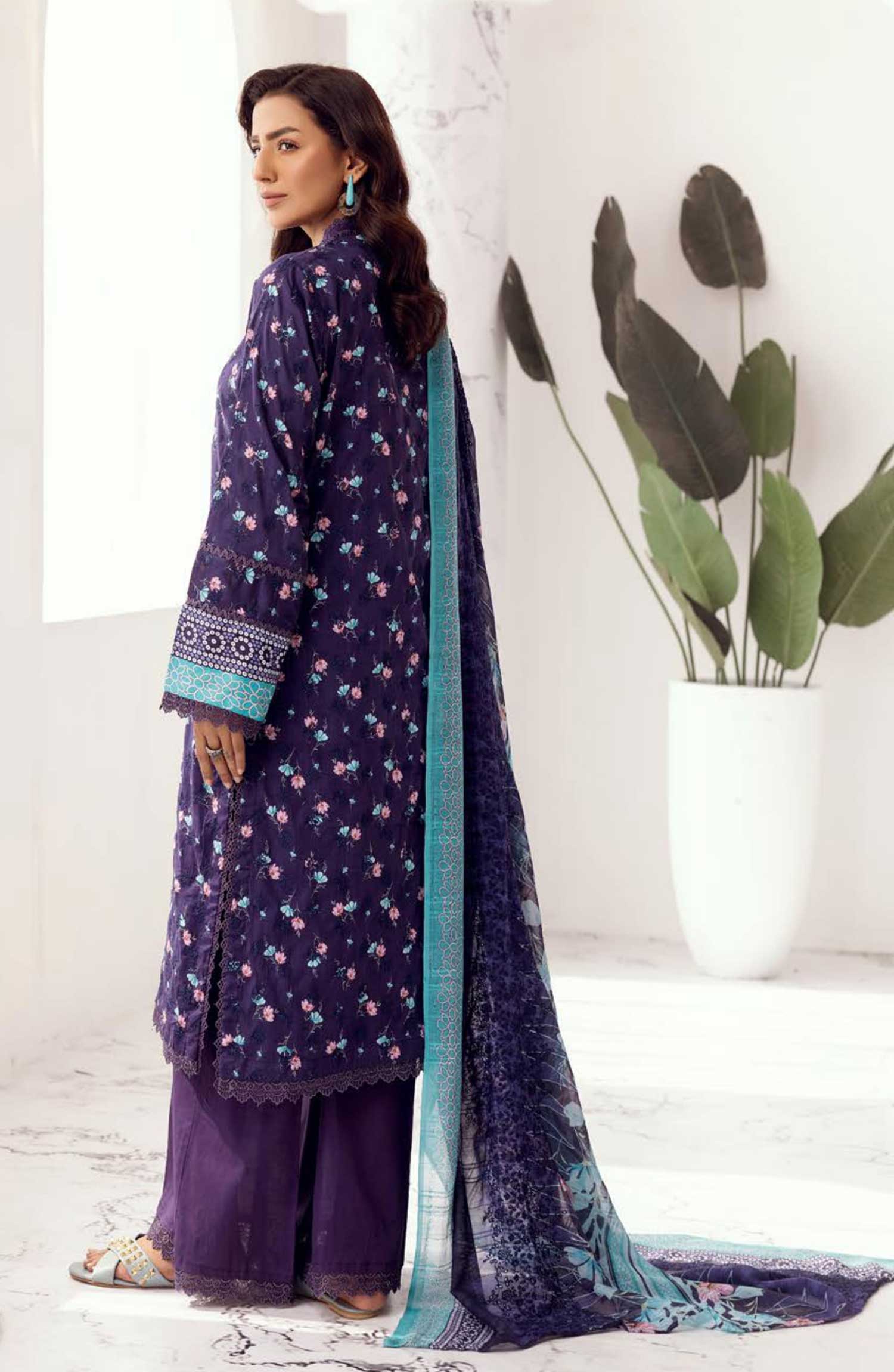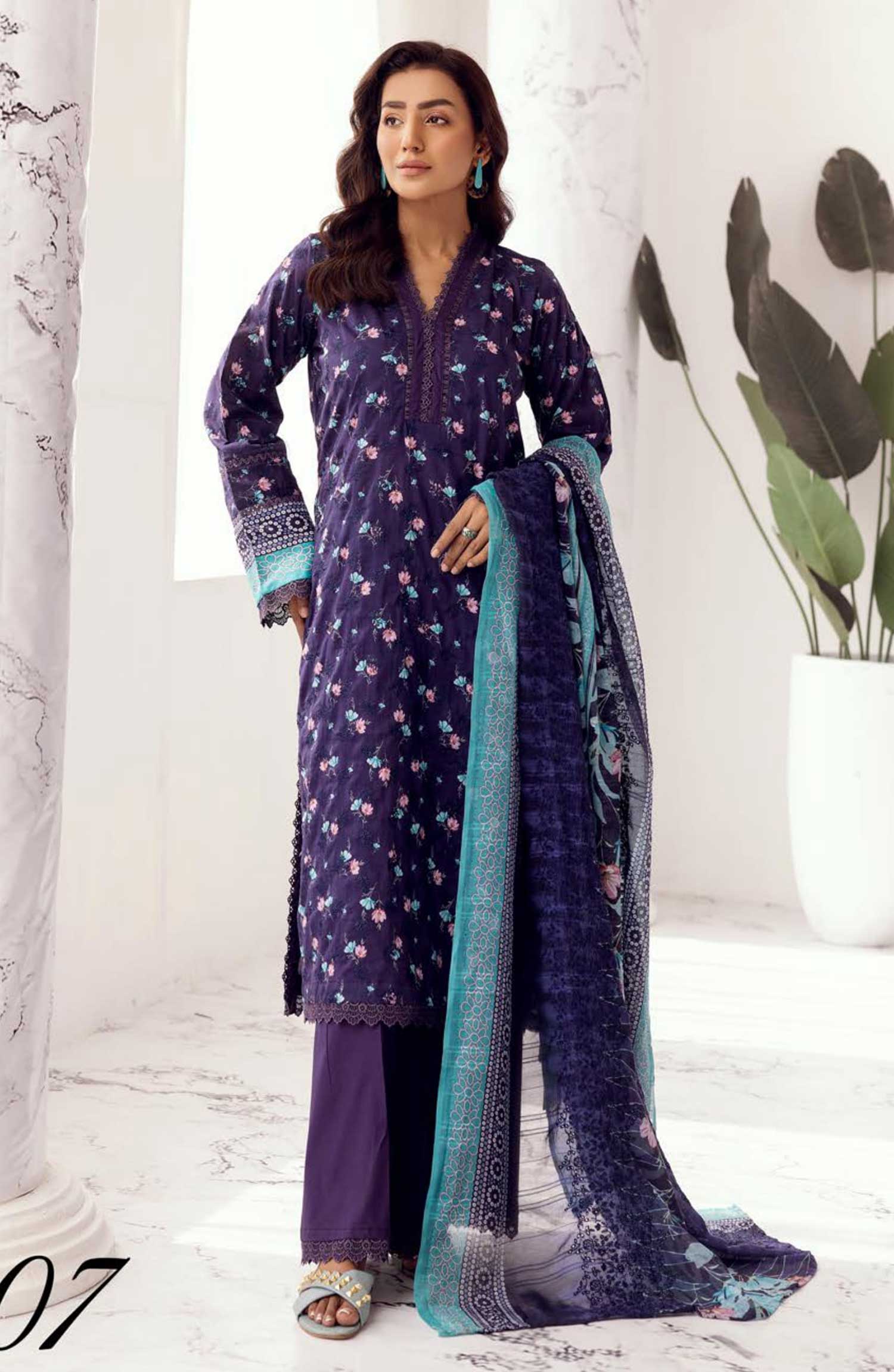 3 Piece Embroidered Lawn Suit with Embroidered Voile Dupatta
