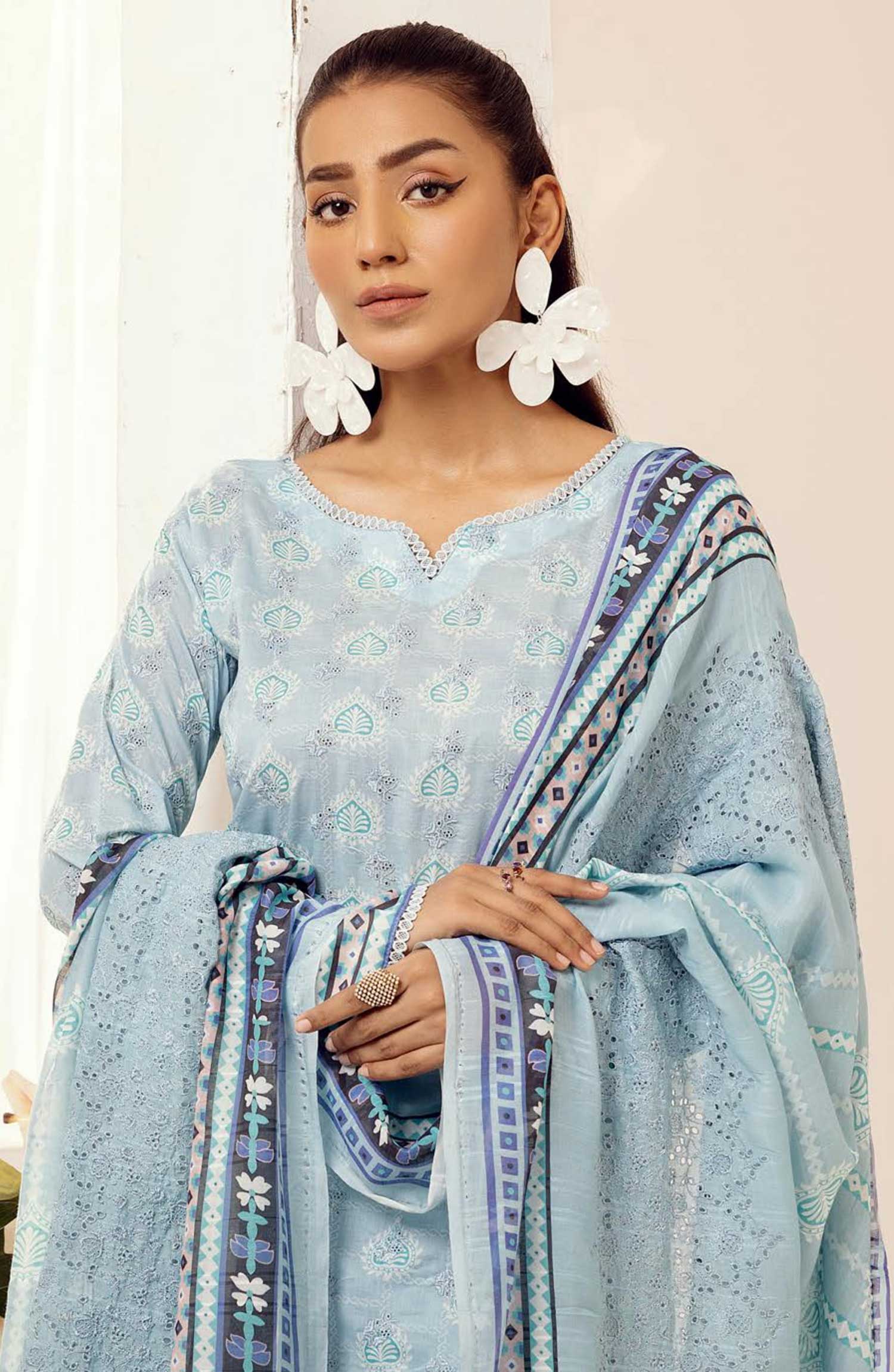 Home Mahees Hoorain by Riaz Arts Embroidered Lawn Unstitched 3 Piece - D-09 - RA25MH - Light Blue - Summer Collection