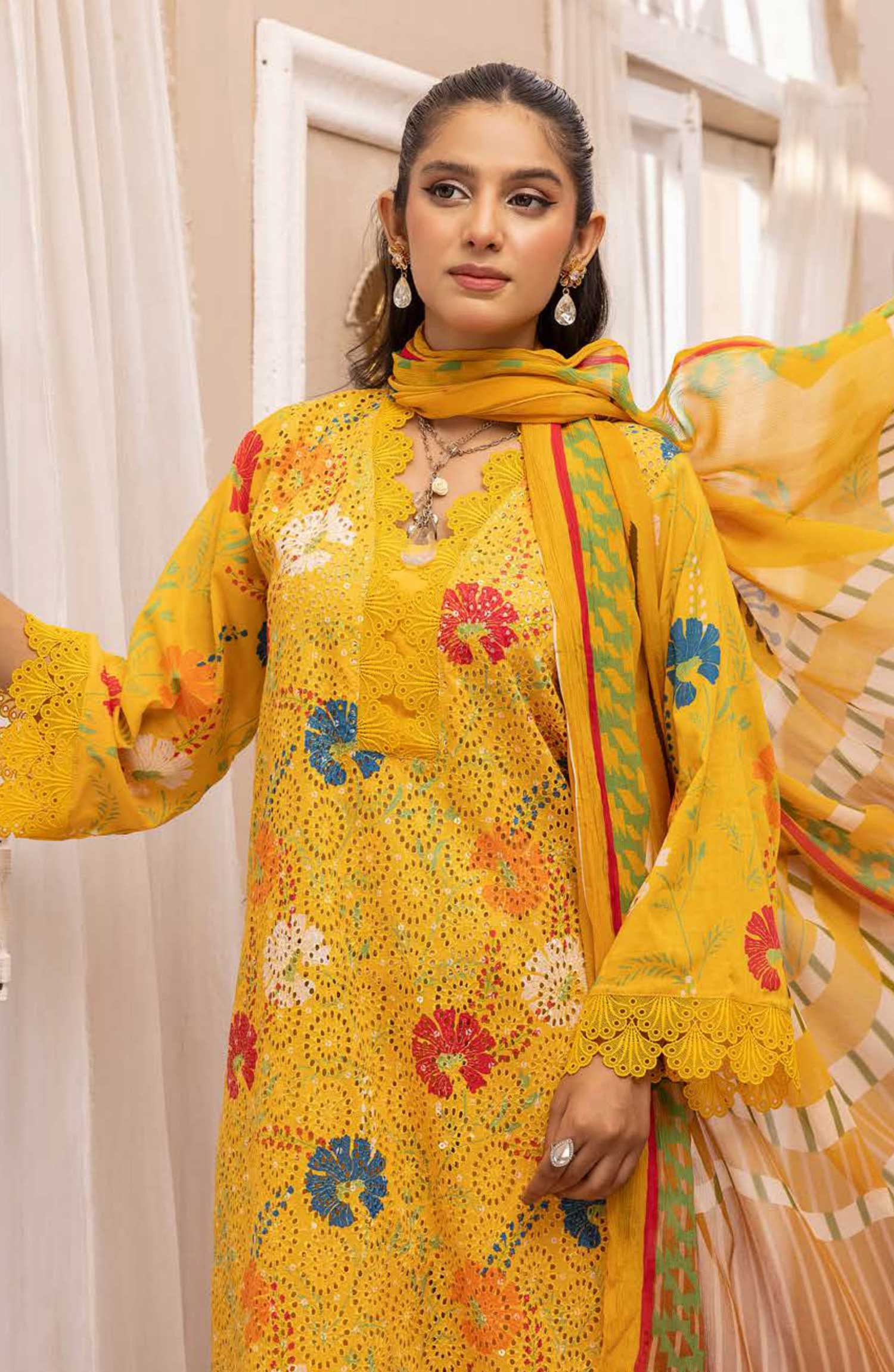 Mahees Isha Printed Chikankari Lawn Collection By Riaz Arts has been styled in the image for photography and illustrative purposes.
