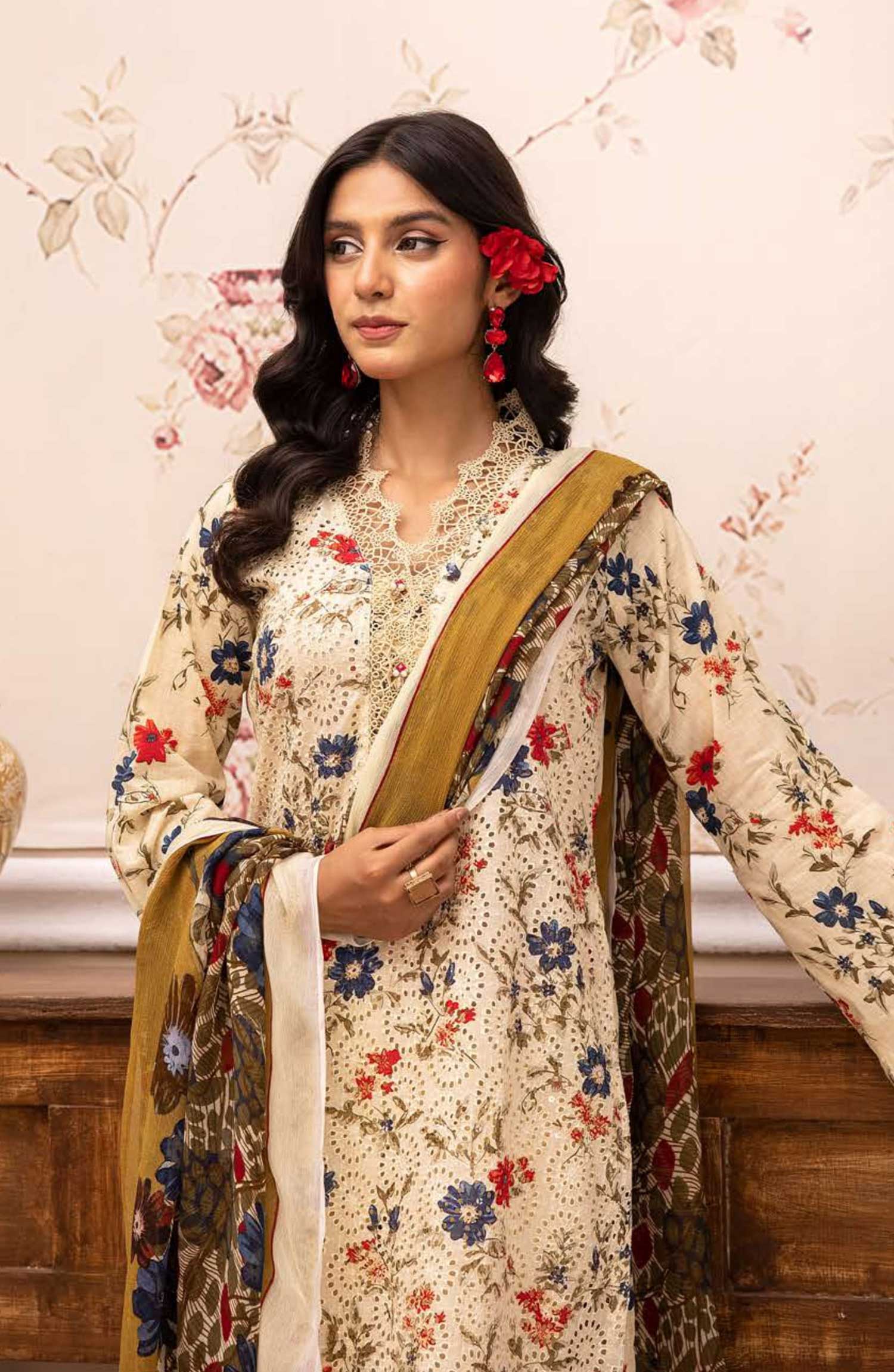 Home Mahees Isha by Riaz Arts Chikankari Lawn Unstitched 3 Piece - D-09 - RA25MI - Creamy Yellow - Summer Collection