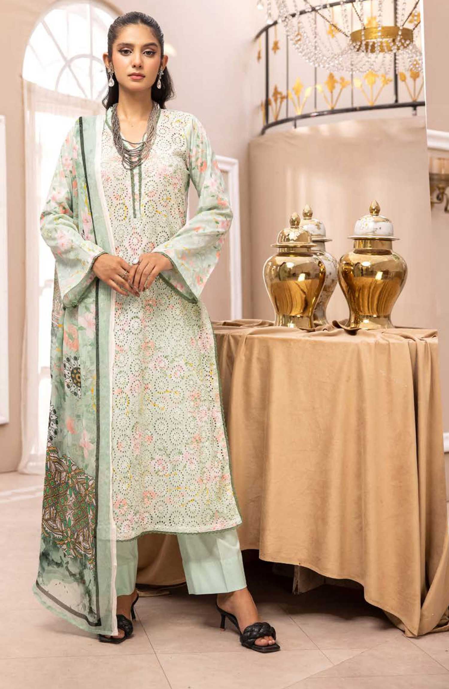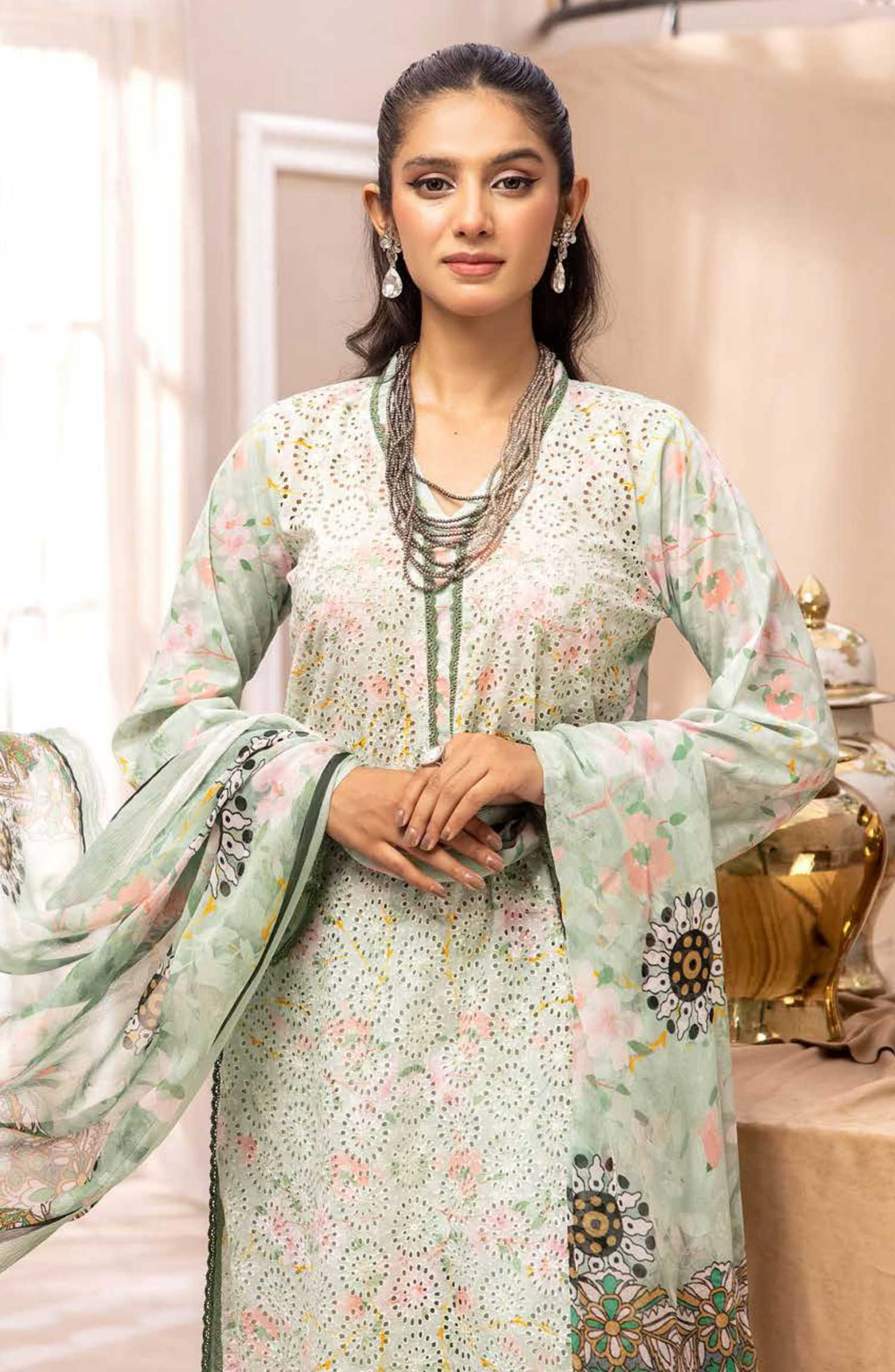 Mahees Isha Printed Chikankari Lawn Collection By Riaz Arts has been styled in the image for photography and illustrative purposes.
