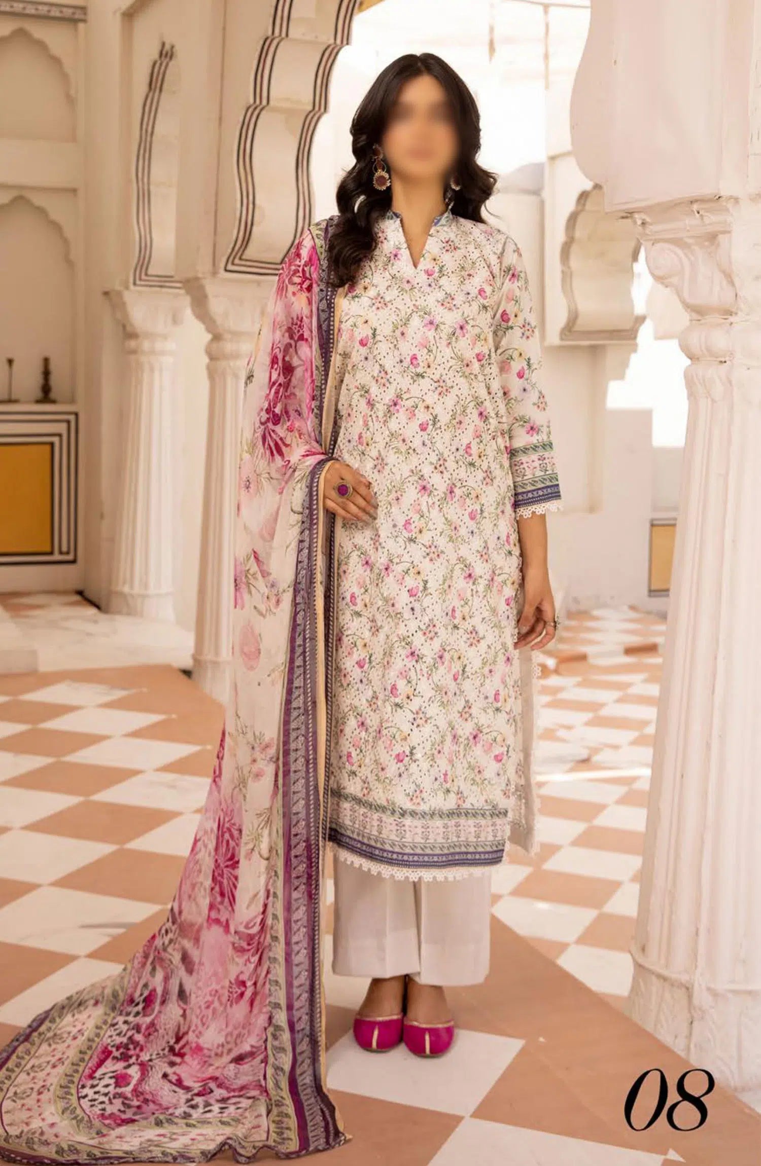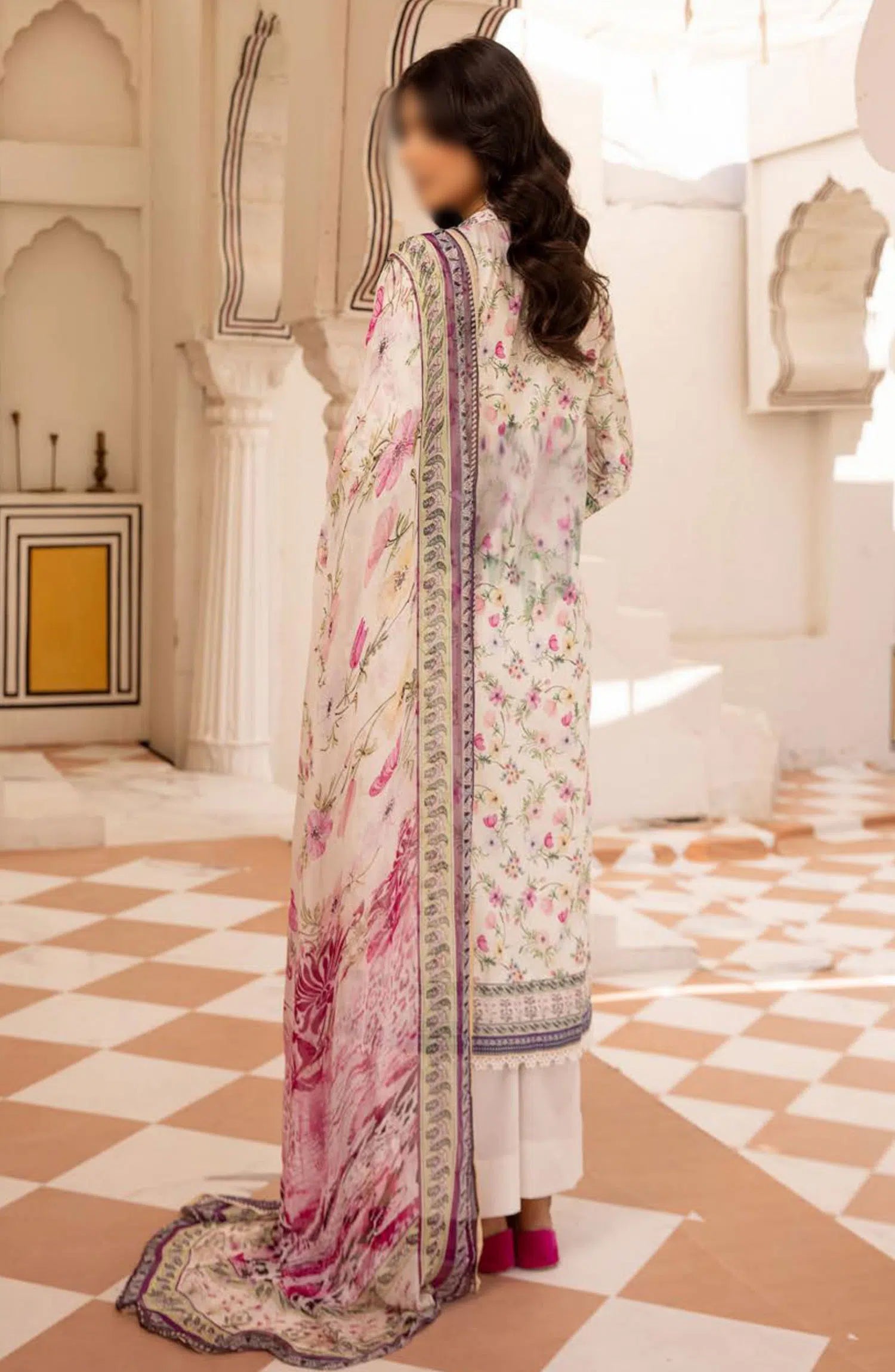 Mahees Printed Chikankari Lawn Collection By Riaz Arts has been styled in the image for photography and illustrative purposes.