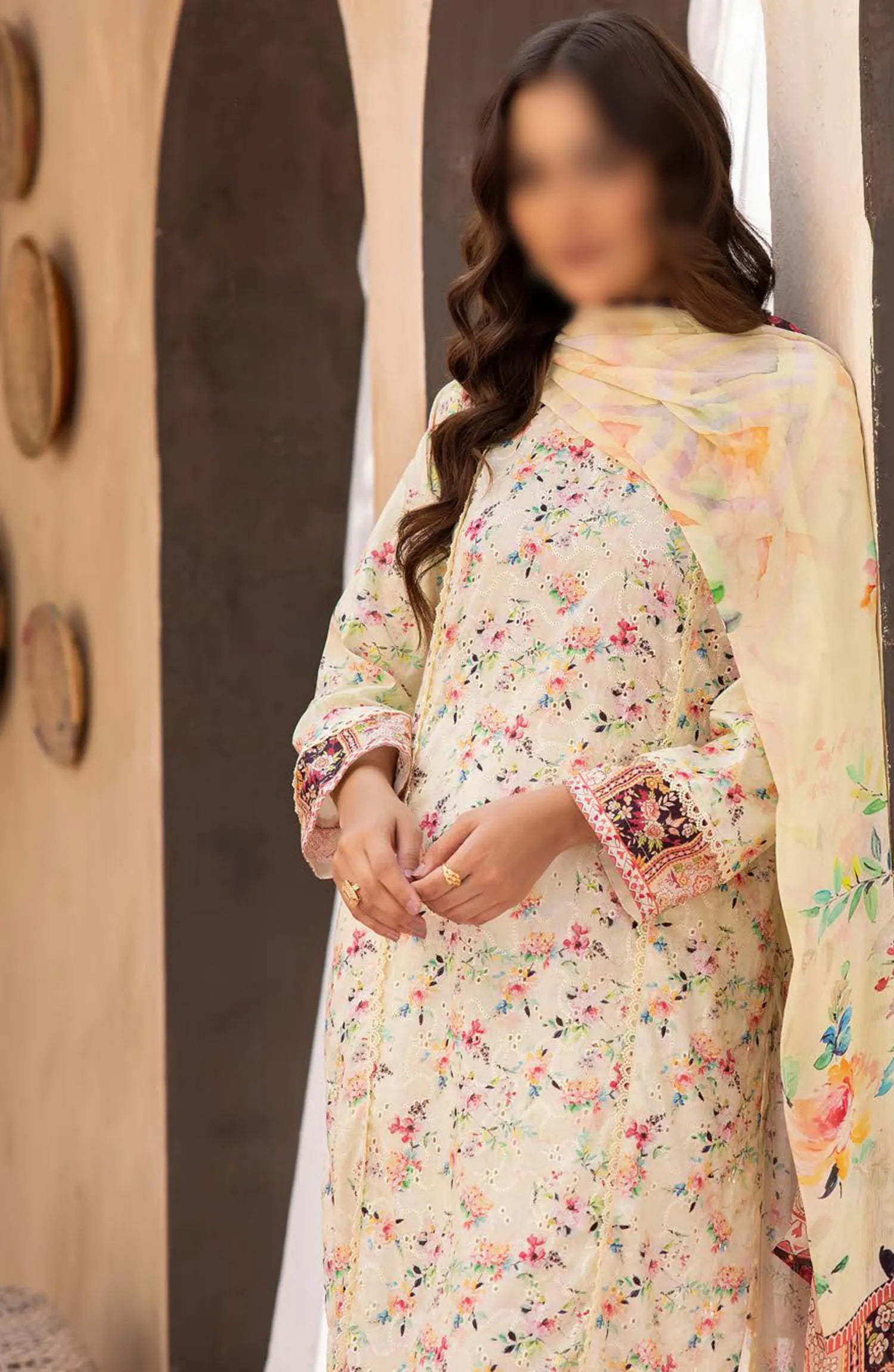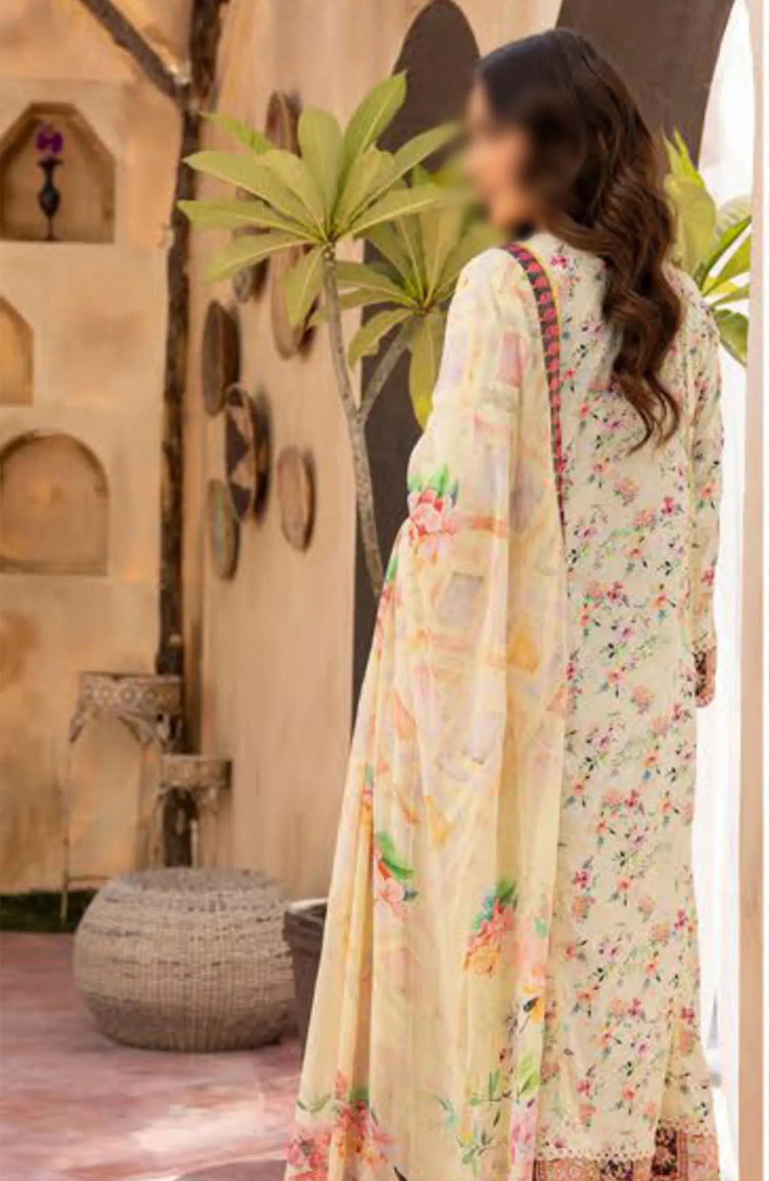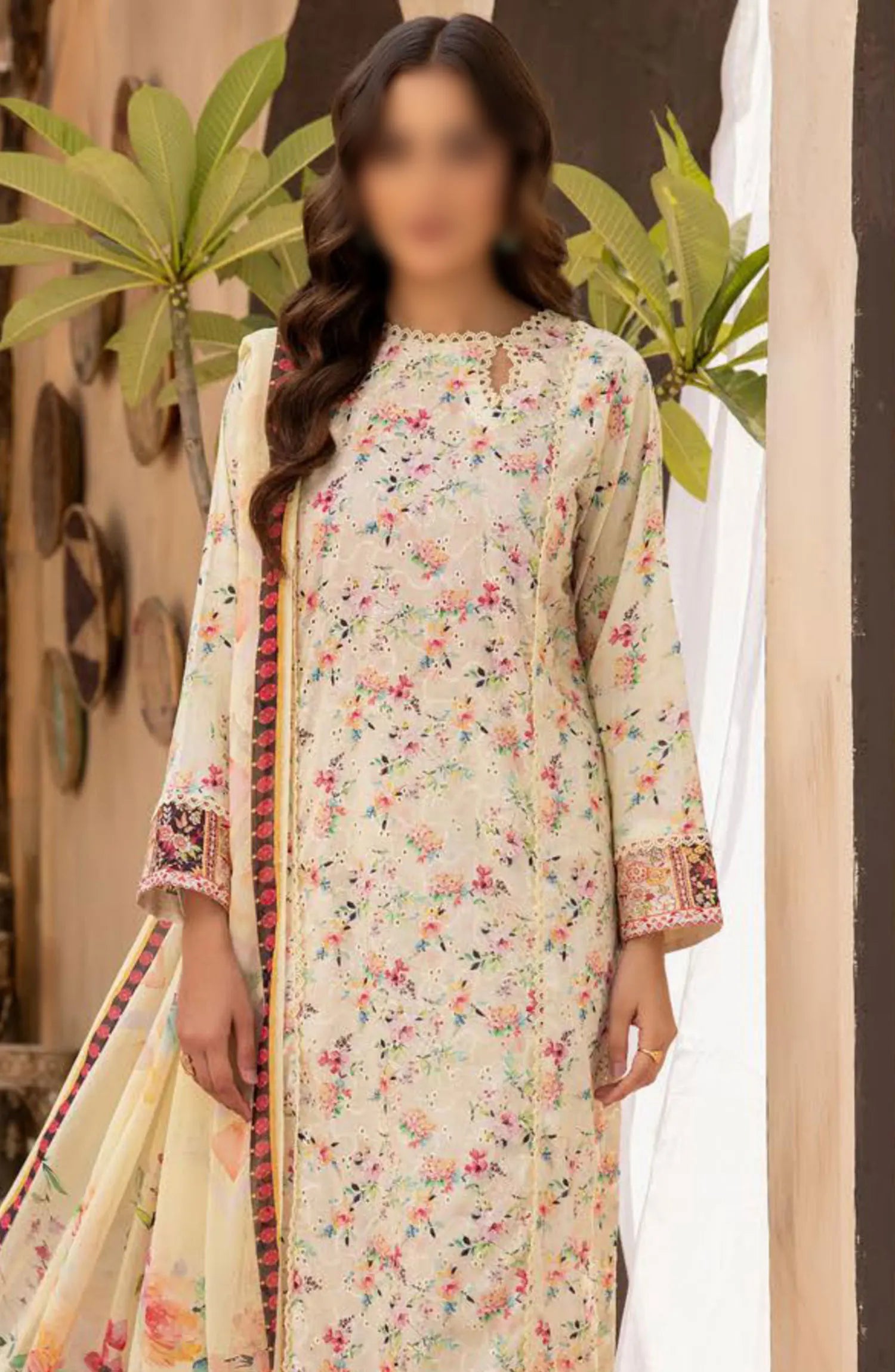 Mahees Printed Chikiankari Lawn Collection 2024 has been styled in the image for photography and illustrative purposes.