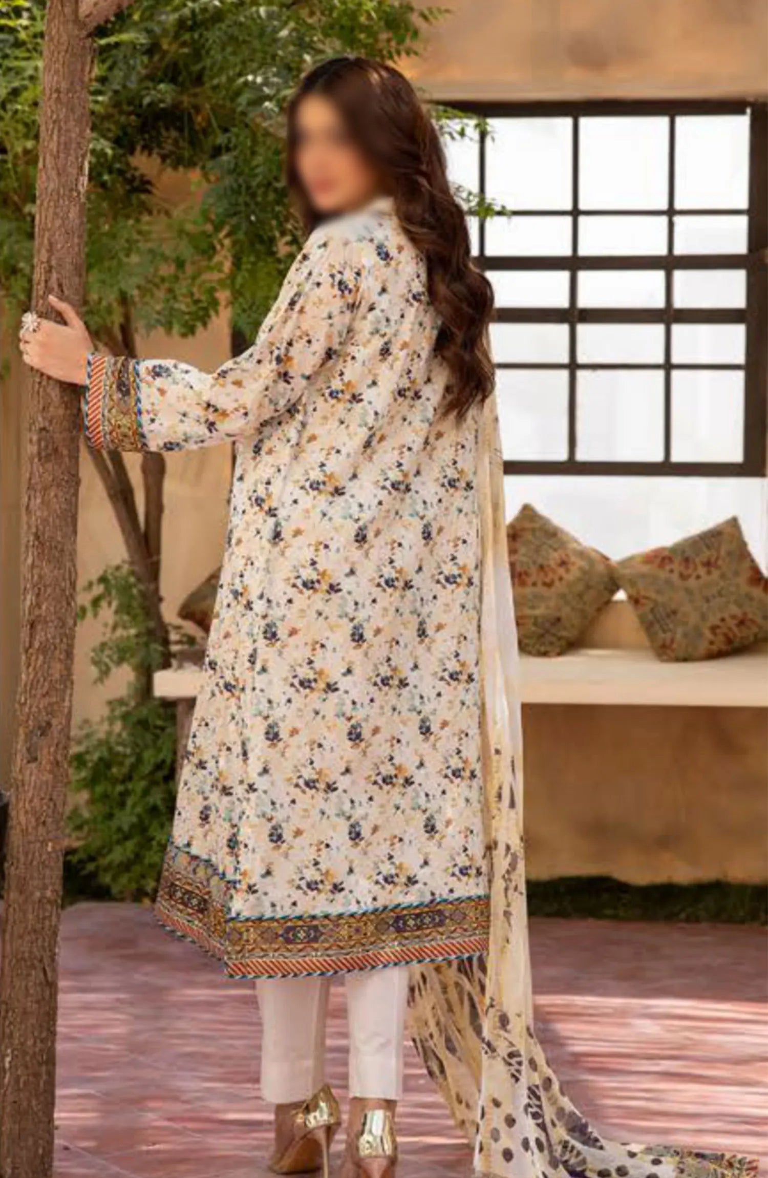 Mahees Printed Chikiankari Lawn Collection 2024 has been styled in the image for photography and illustrative purposes.