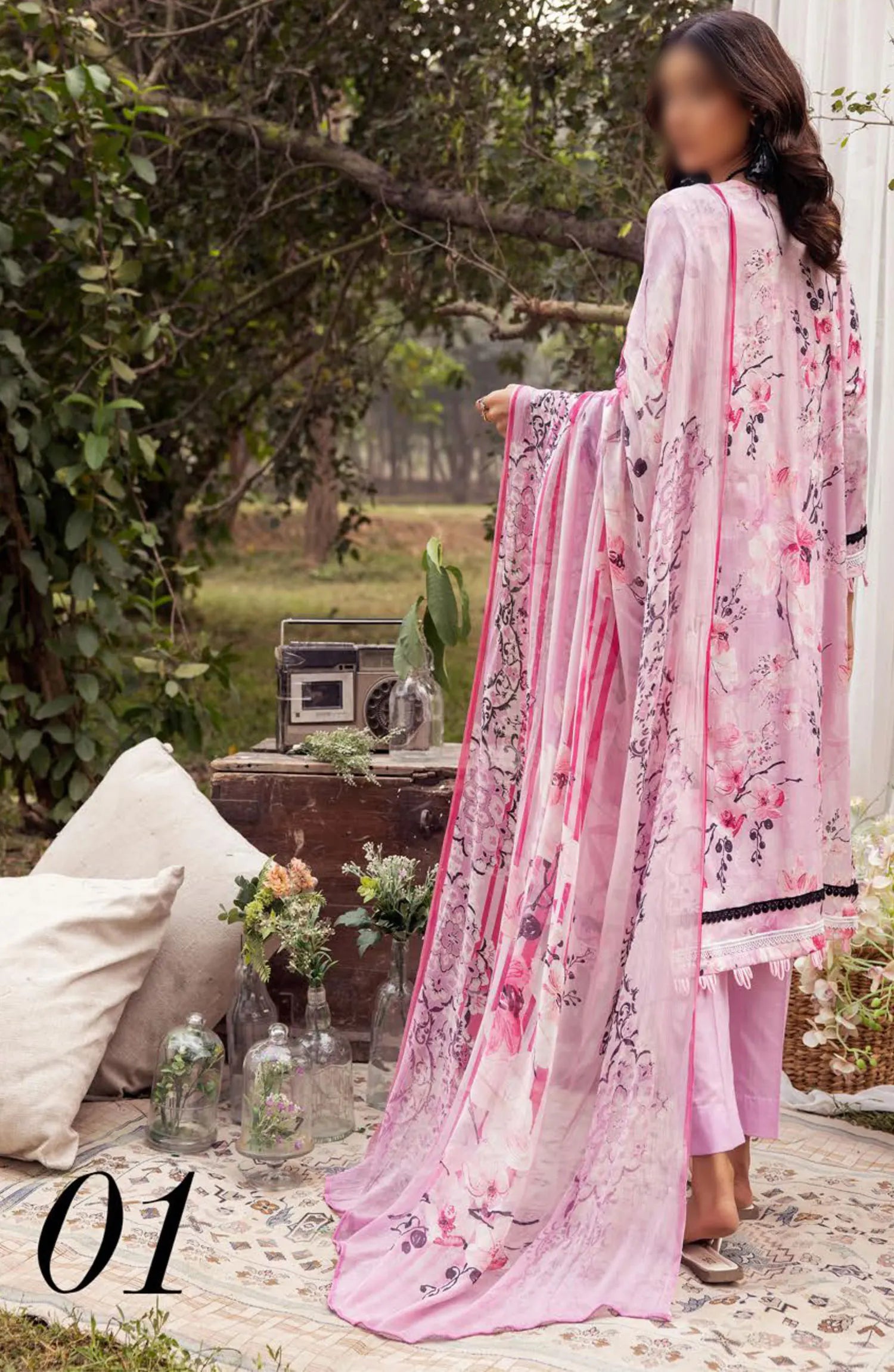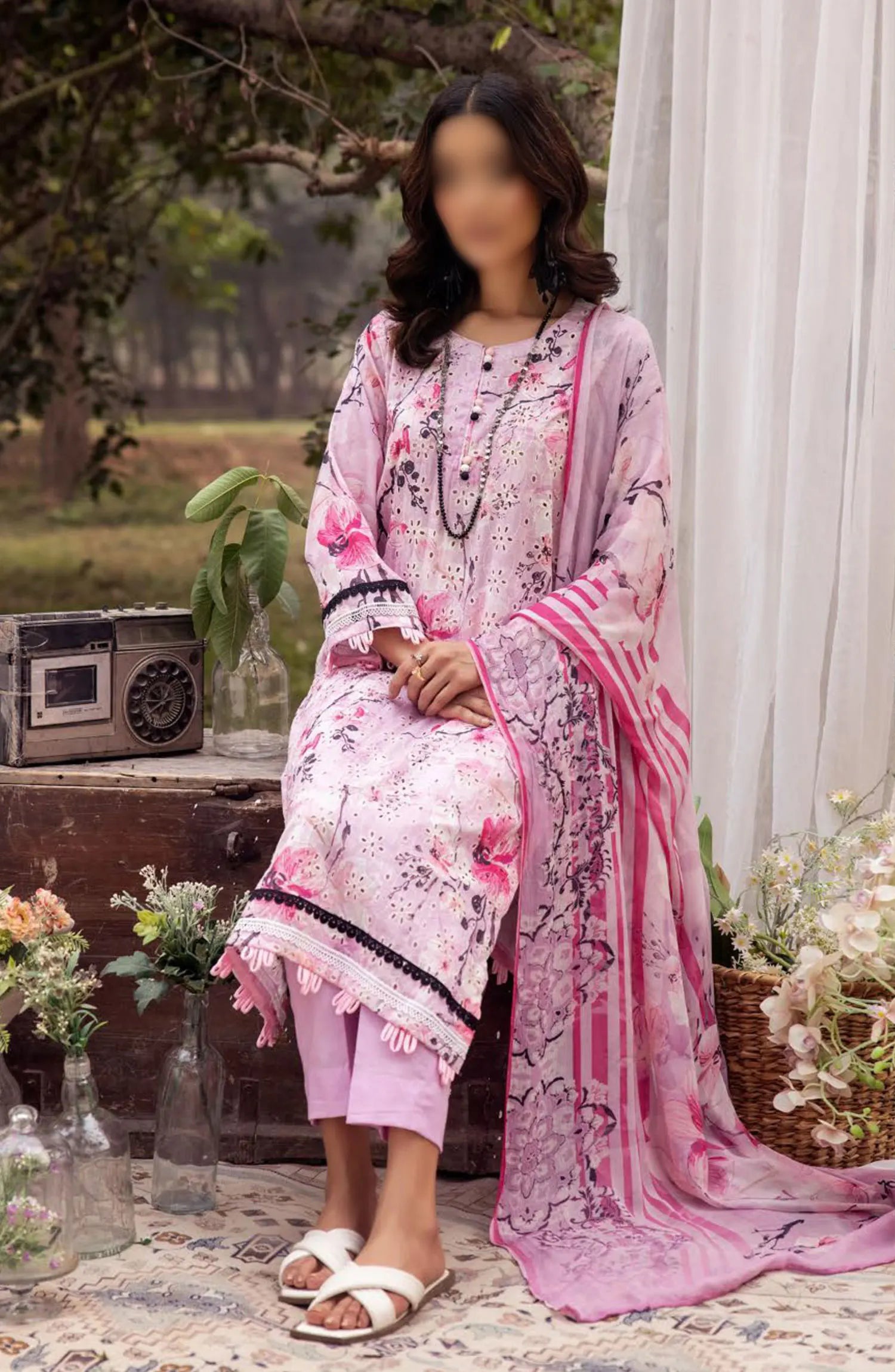 Mahees Printed Chikiankari Lawn Collection Vol 06 2024 has been styled in the image for photography and illustrative purposes.