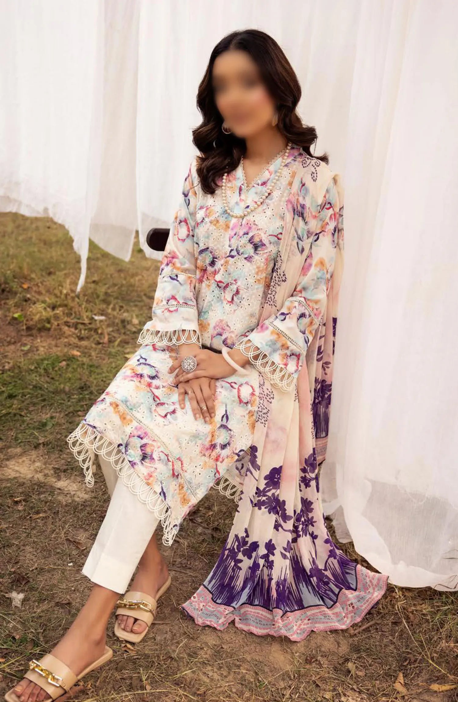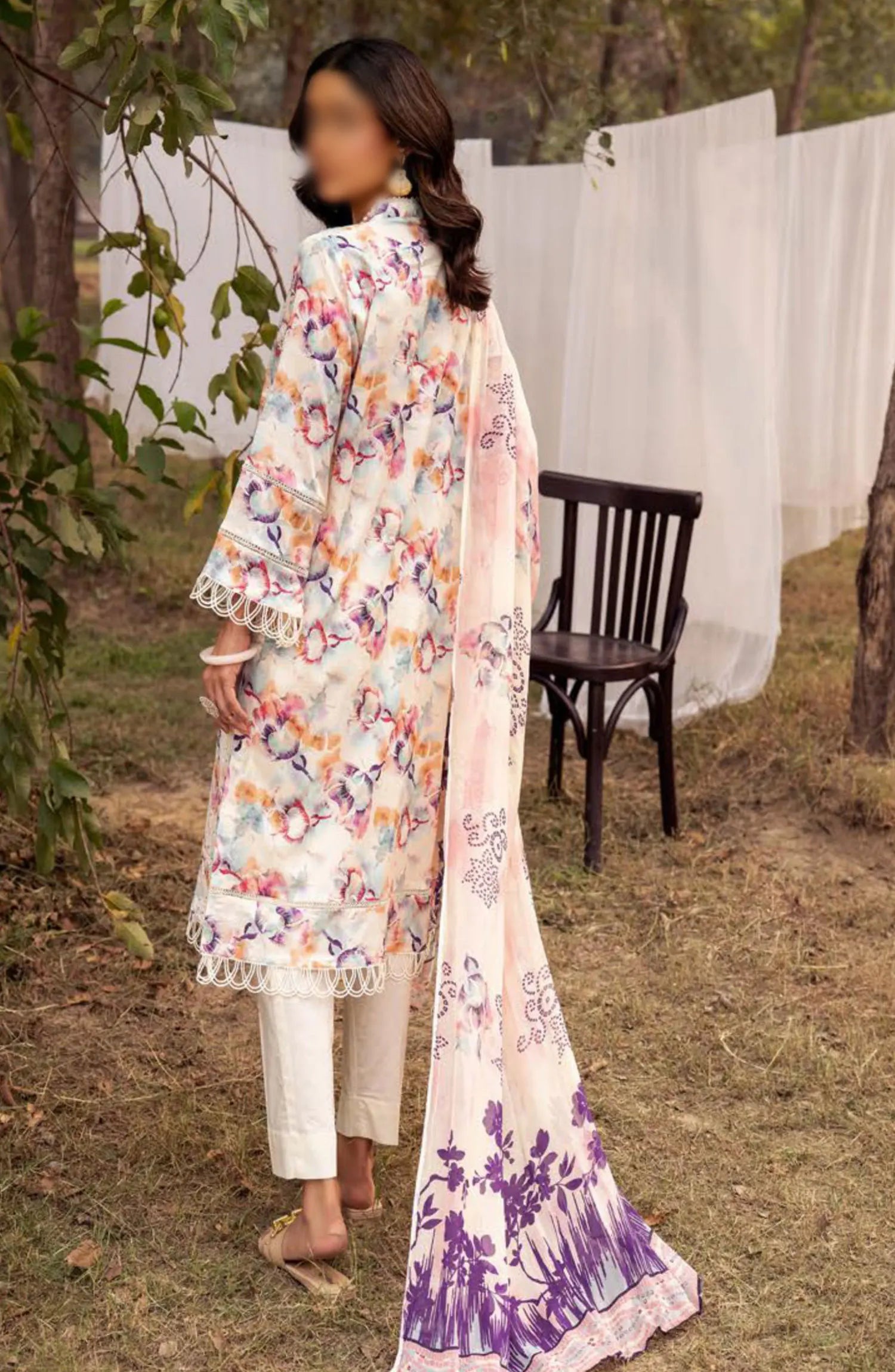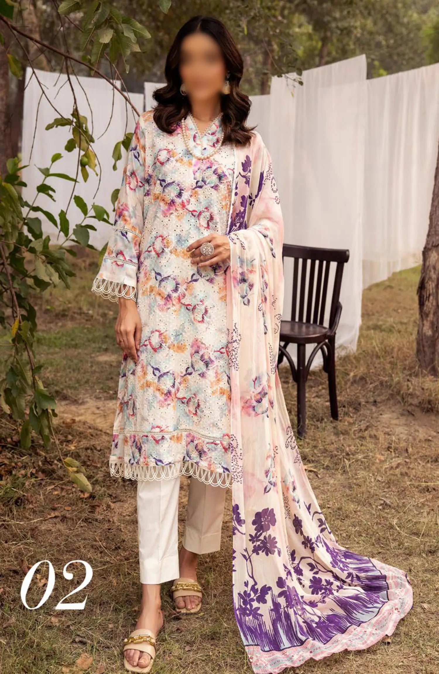 Mahees Printed Chikiankari Lawn Collection Vol 06 2024 has been styled in the image for photography and illustrative purposes.