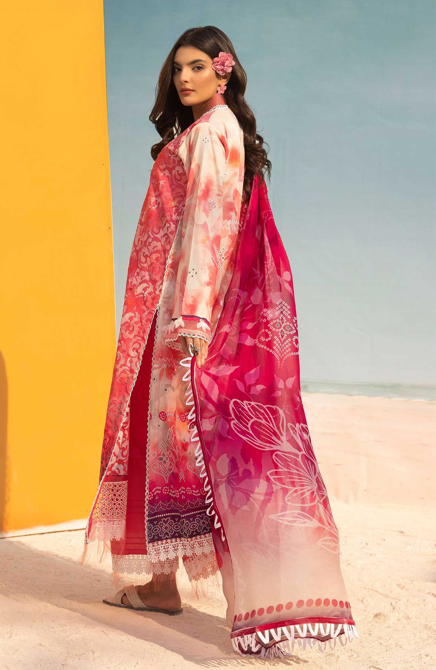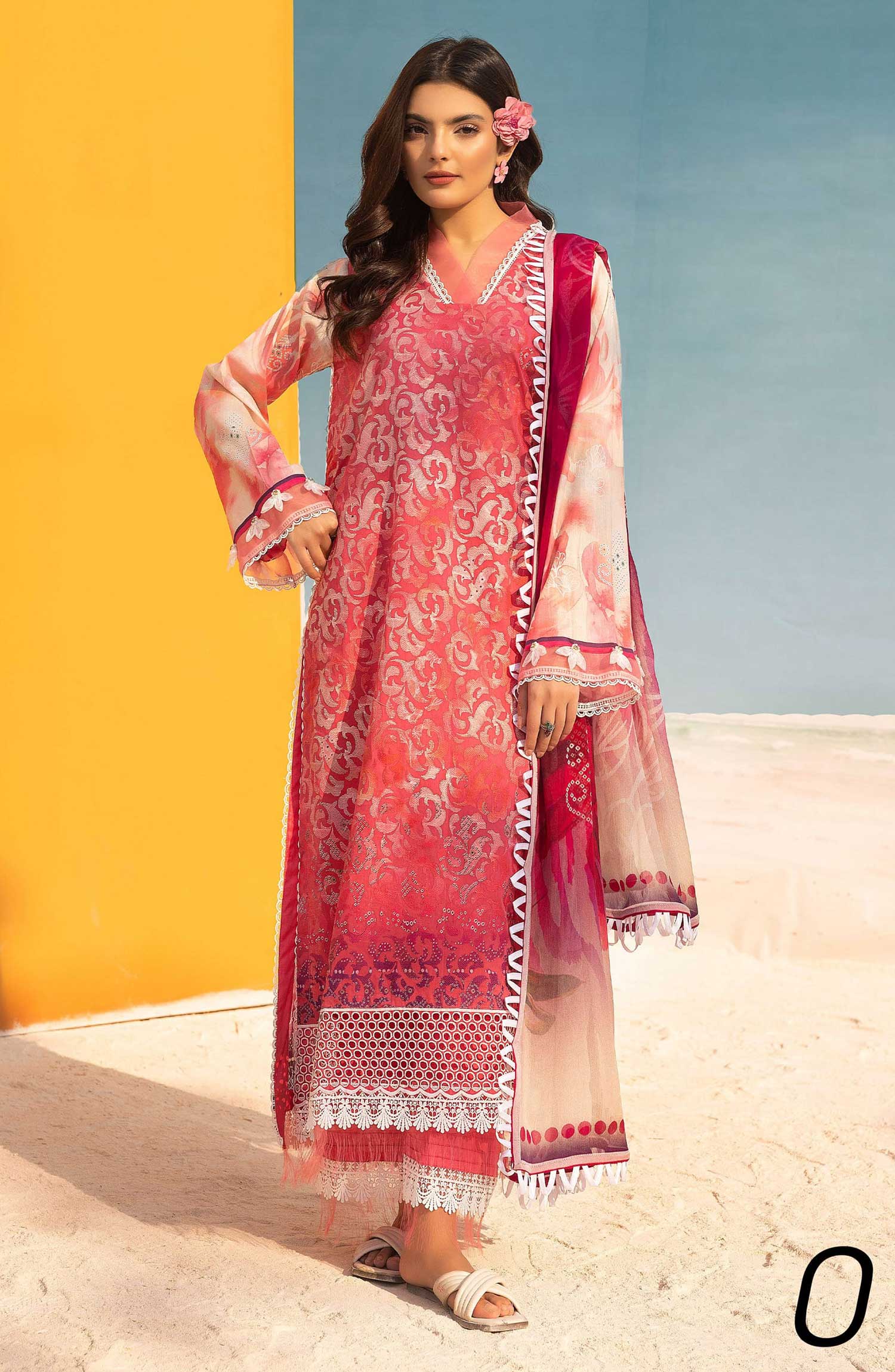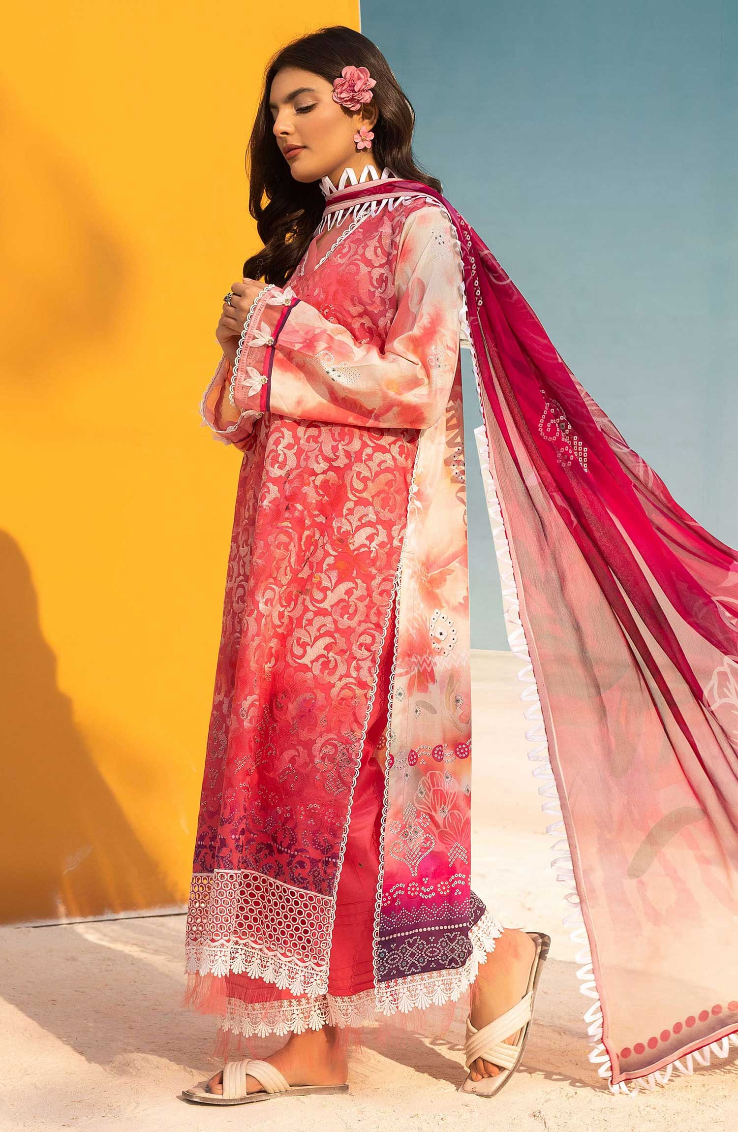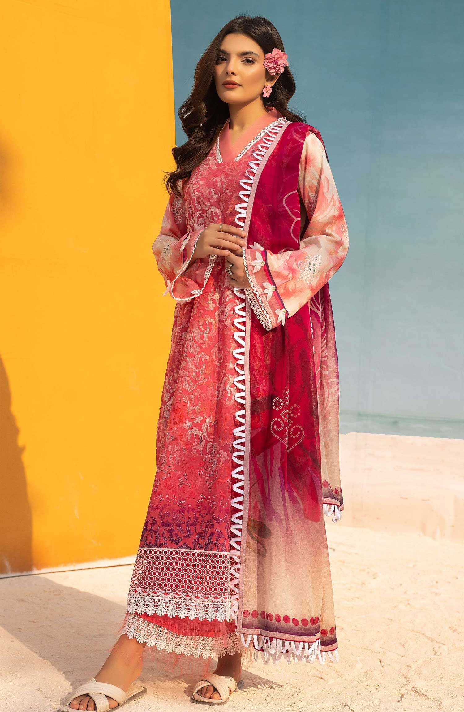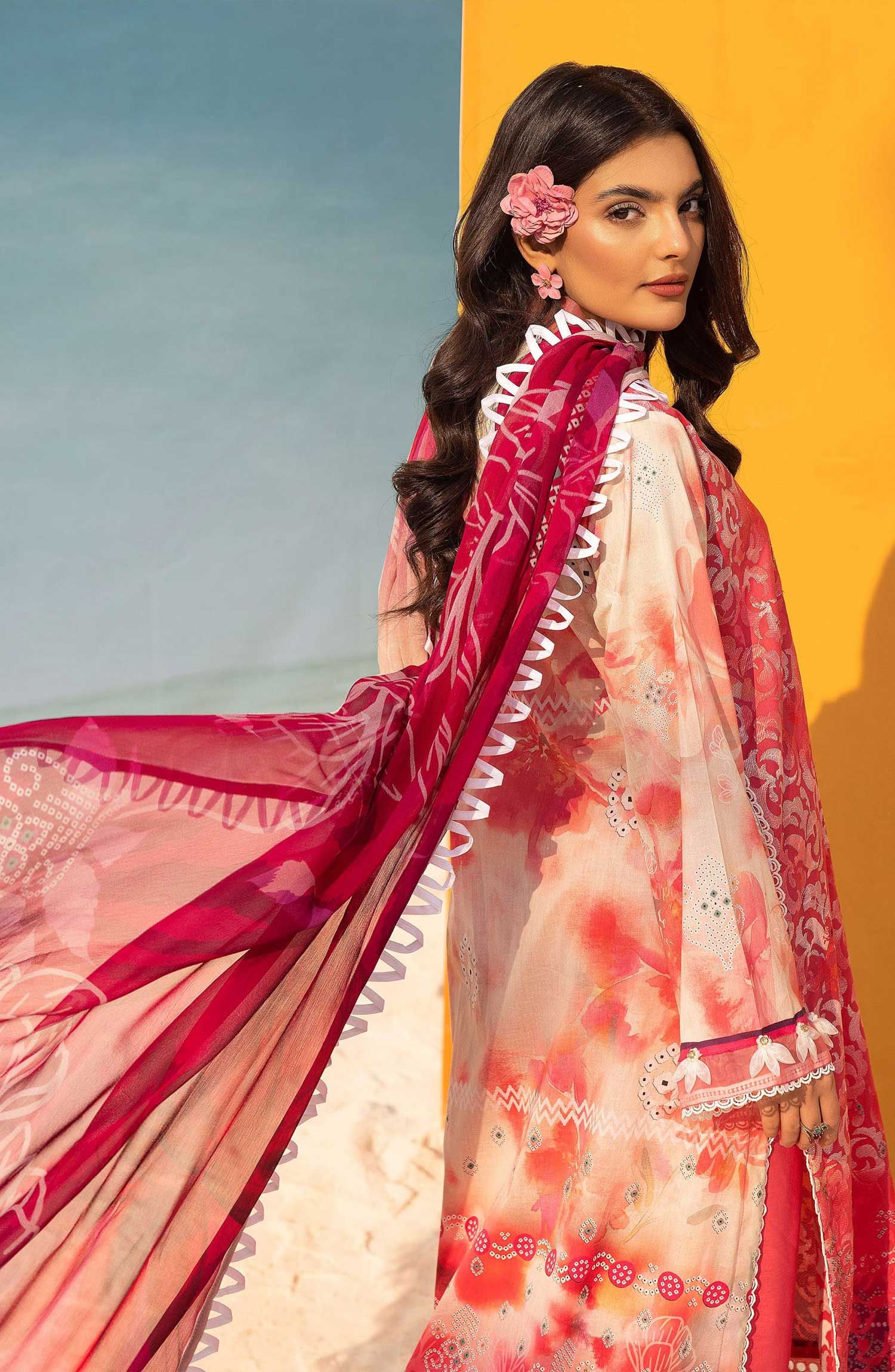 Mahees Printed Chikankari Lawn Collection 2025 has been styled in the image for photography and illustrative purposes.