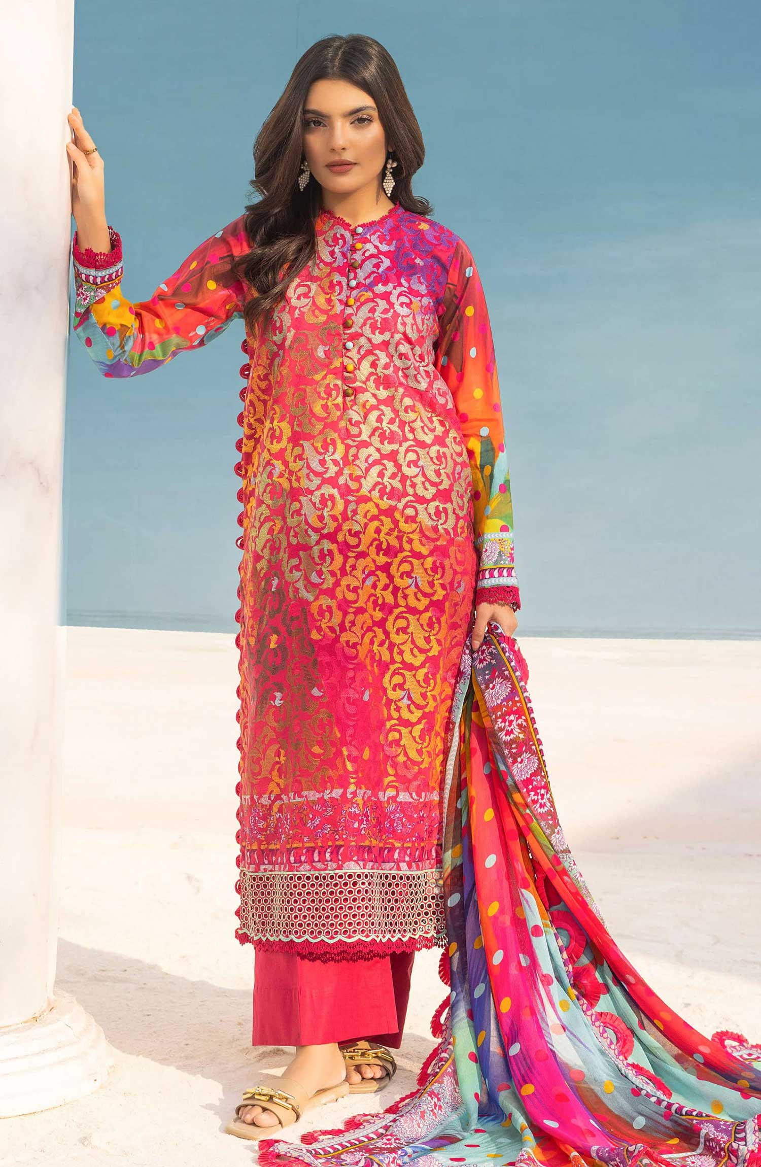 Mahees Printed Chikankari Lawn Collection 2025 has been styled in the image for photography and illustrative purposes.