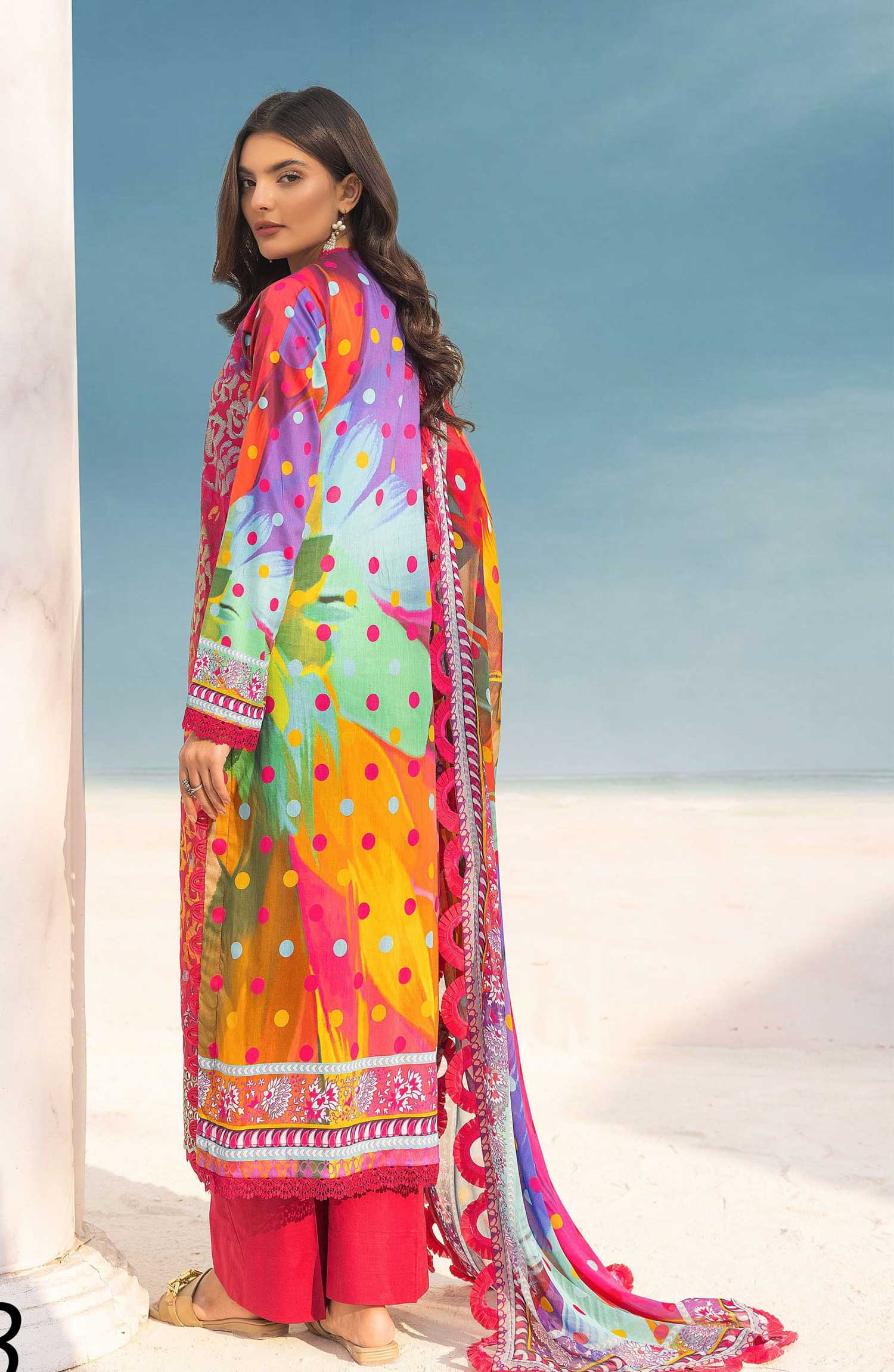 The standard style comes as a long-sleeved kameez with dupatta and trouser/shawlar.