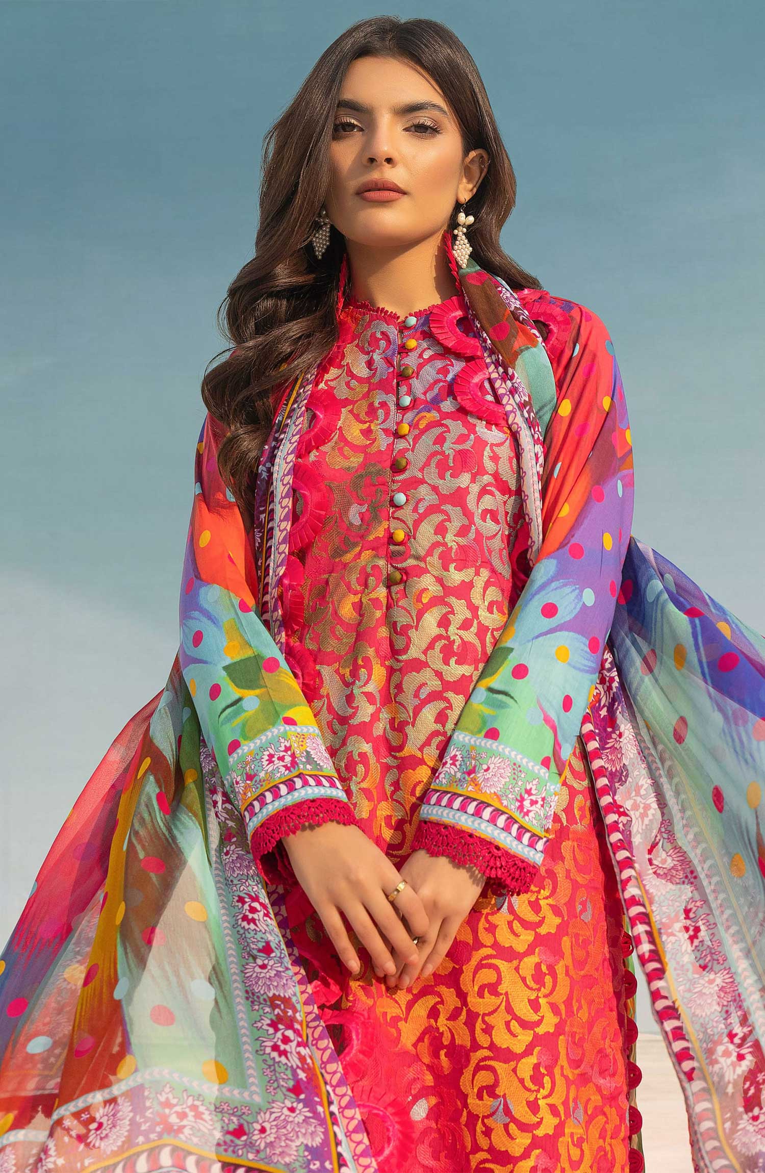 3 Piece Printed Chikankari Lawn suit with Crinkle Dupatta