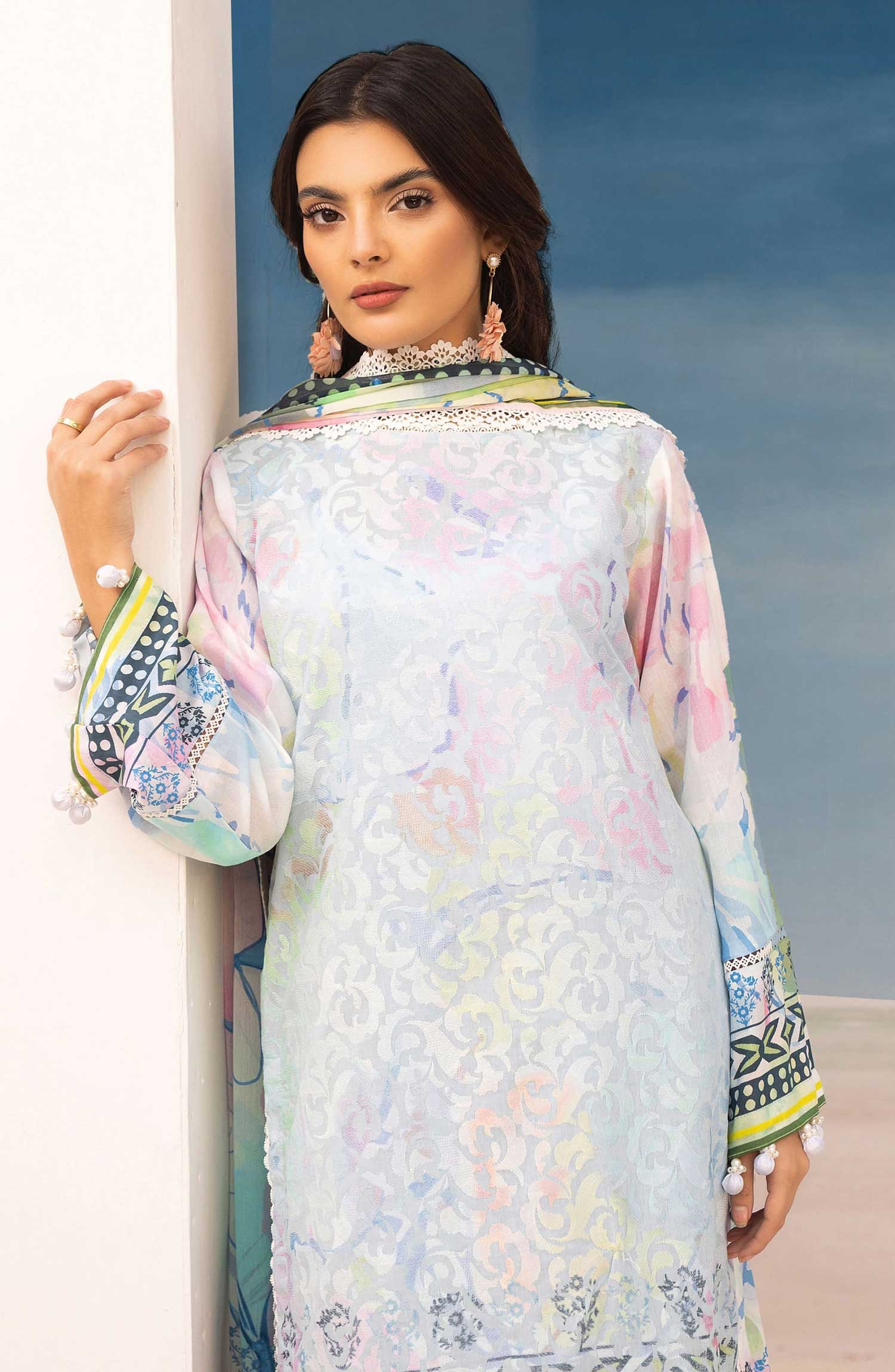 Mahees Printed Chikankari Lawn Collection 2025 has been styled in the image for photography and illustrative purposes.