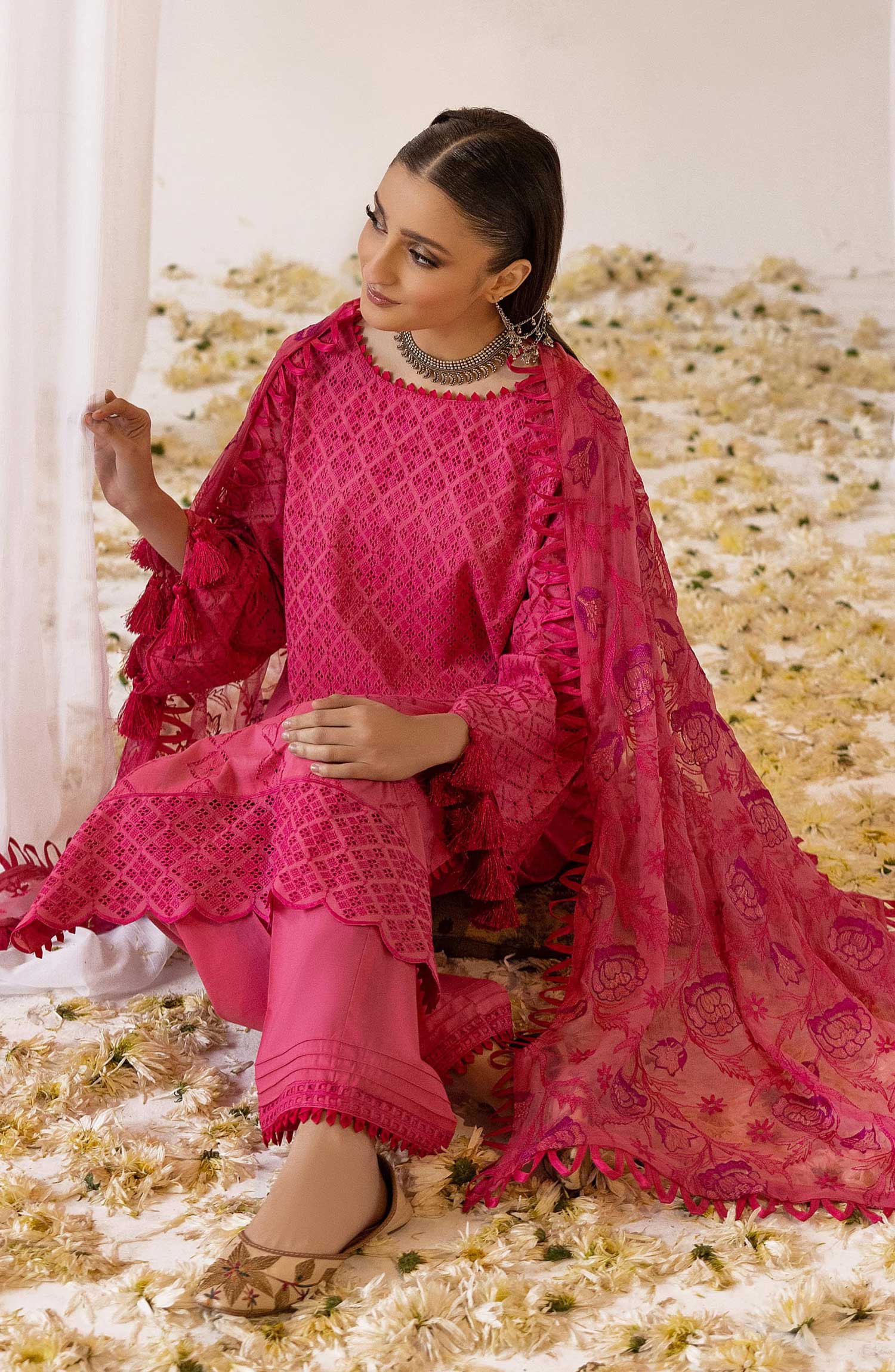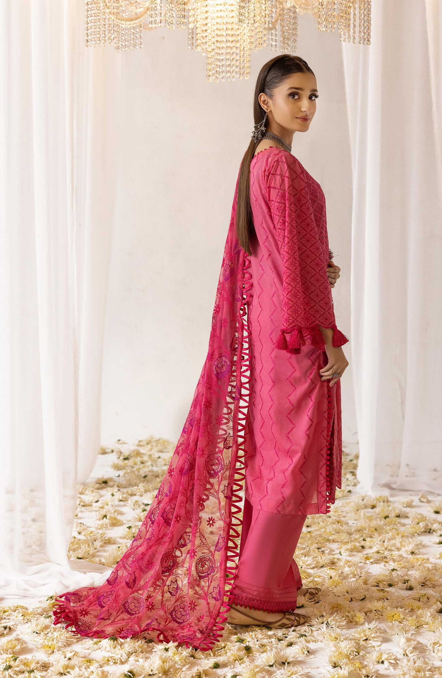 Mahees Isha Printed Chikankari Lawn Collection By Riaz Arts has been styled in the image for photography and illustrative purposes.