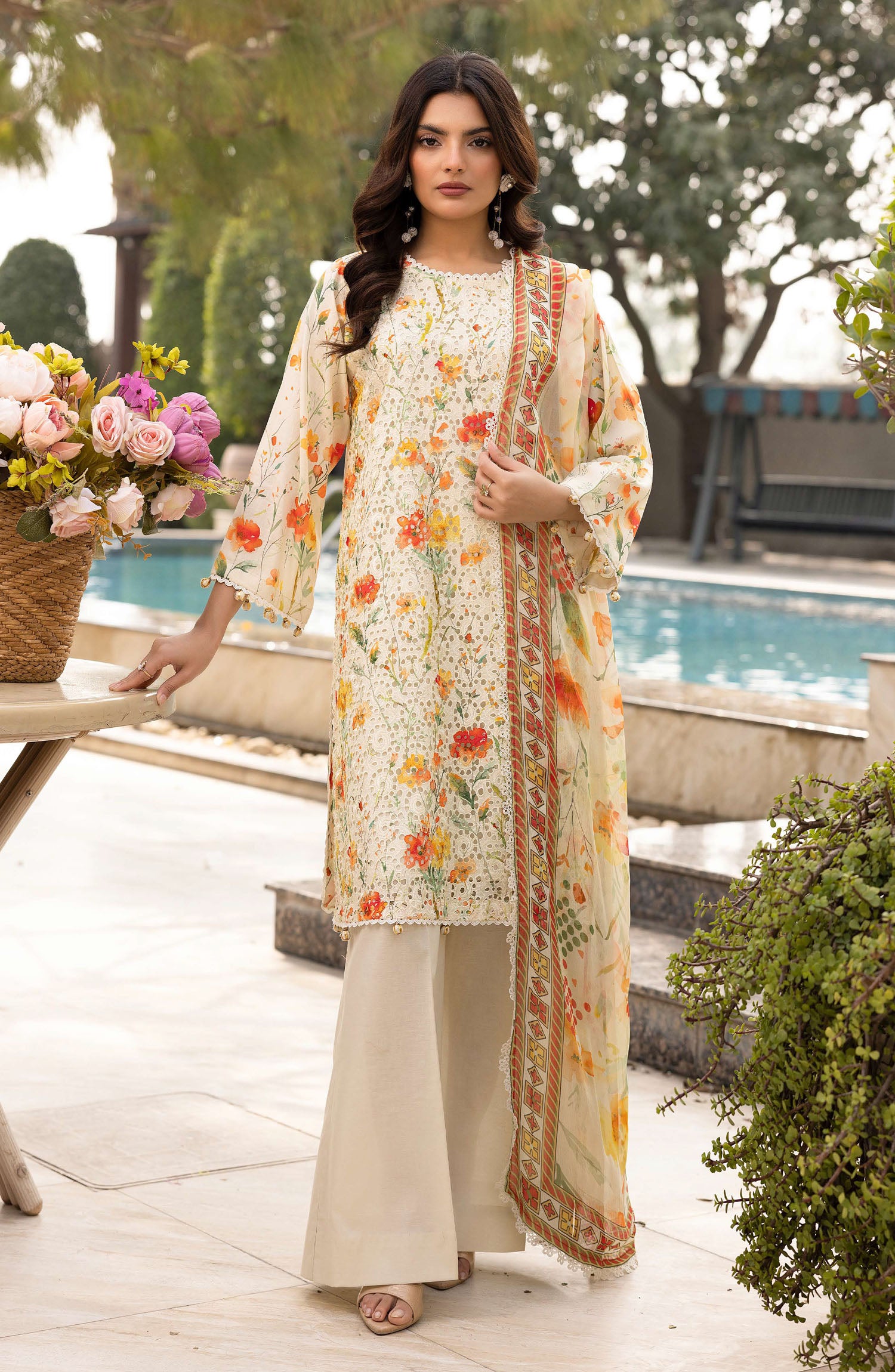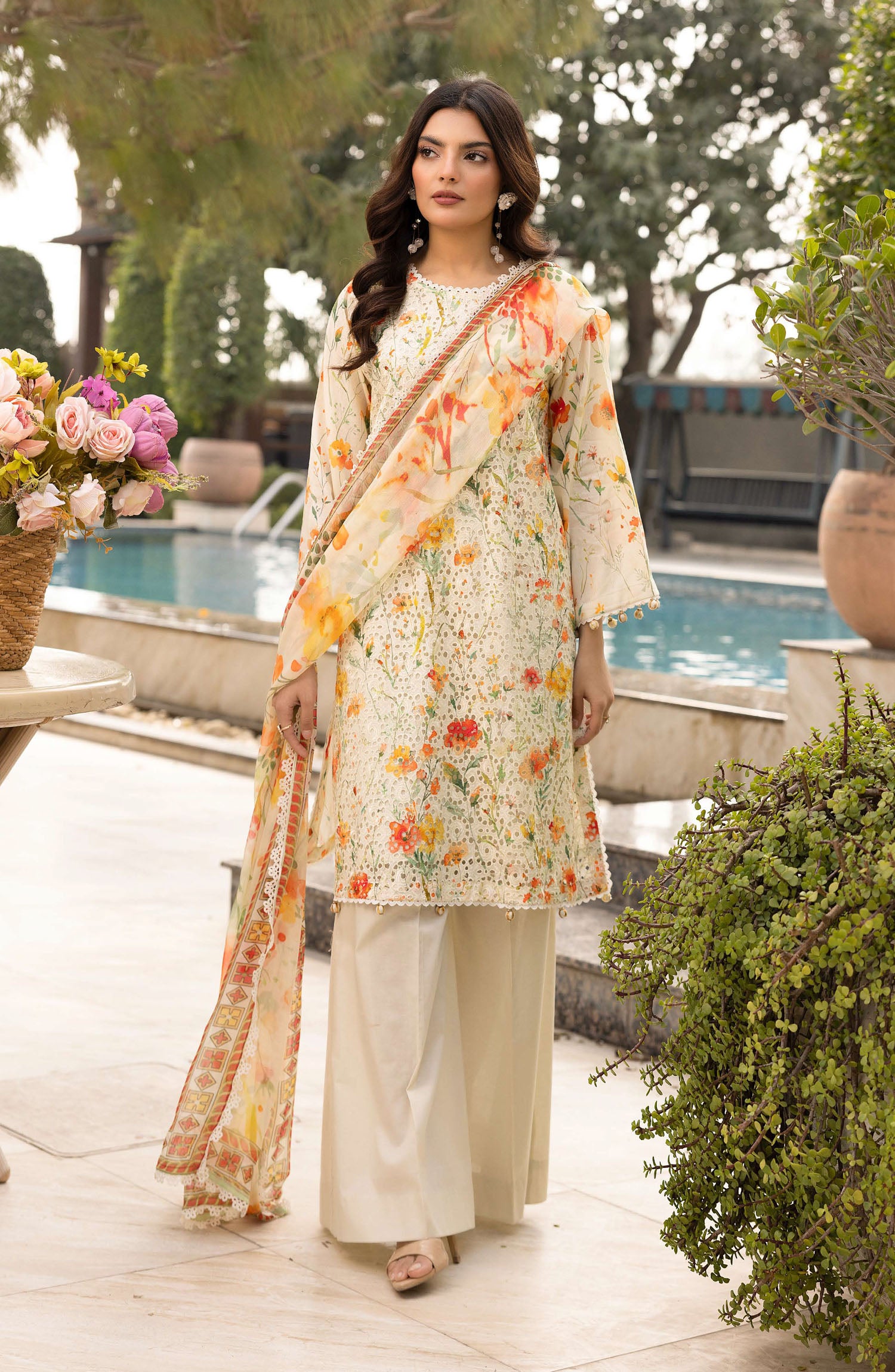 Mahees Sehar by Riaz Arts Chikankari Lawn Unstitched 3 Piece Suit - D-01 - RA25MSC - Beige - Summer Collection