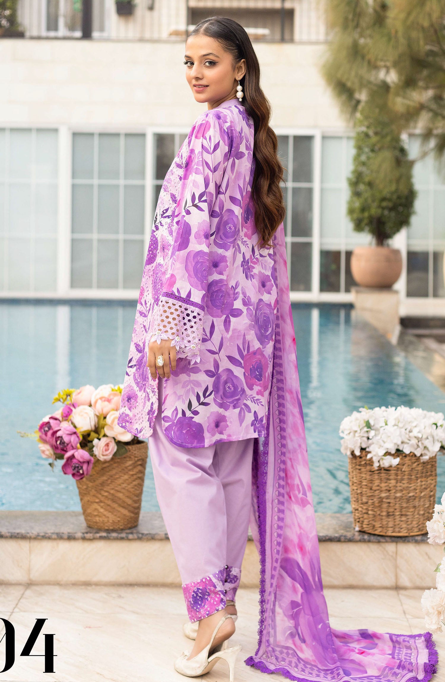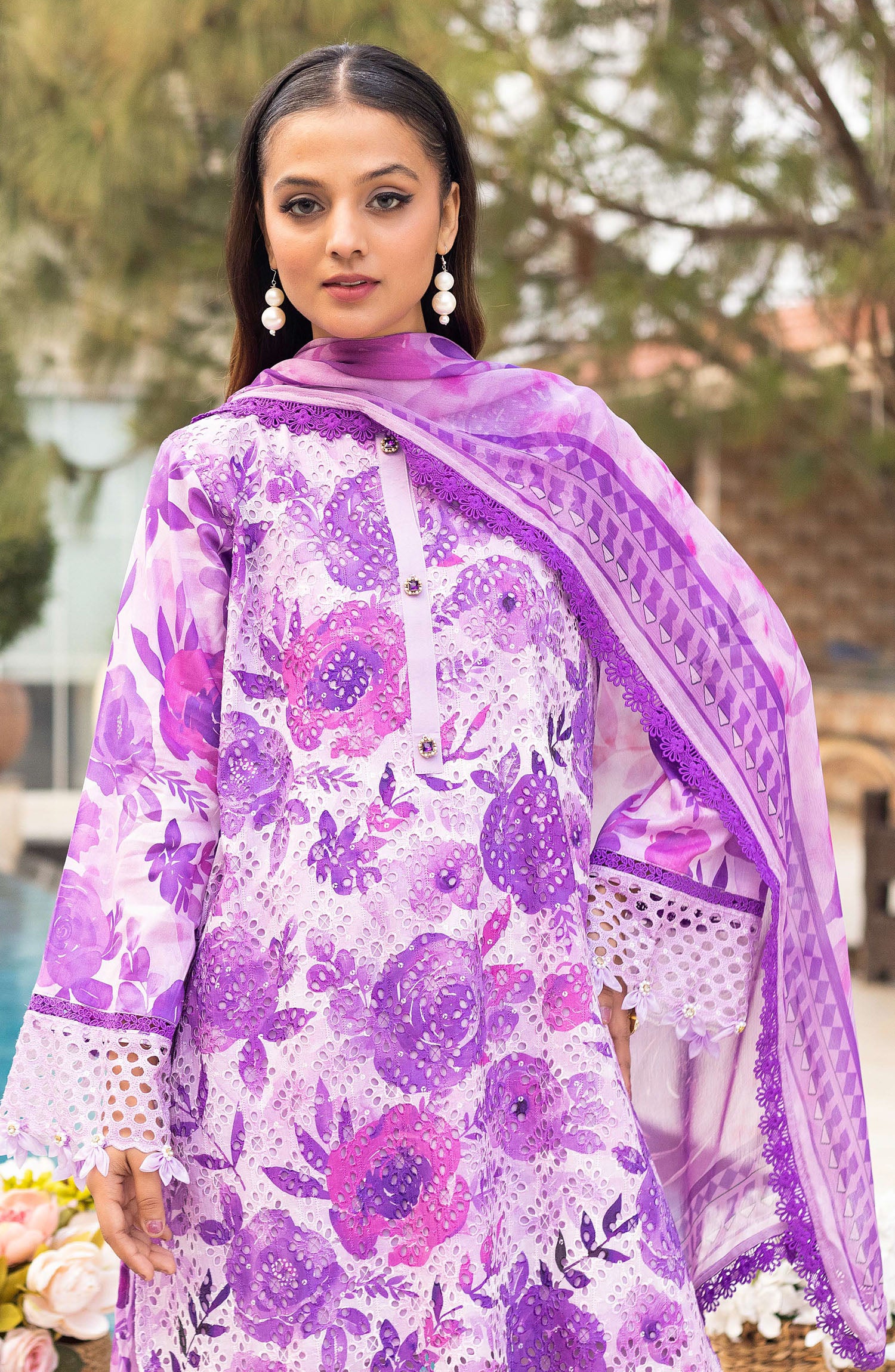 Mahees Sehar by Riaz Arts Chikankari Lawn Unstitched 3 Piece Suit - D-04 - RA25MSC - Purple - Summer Collection