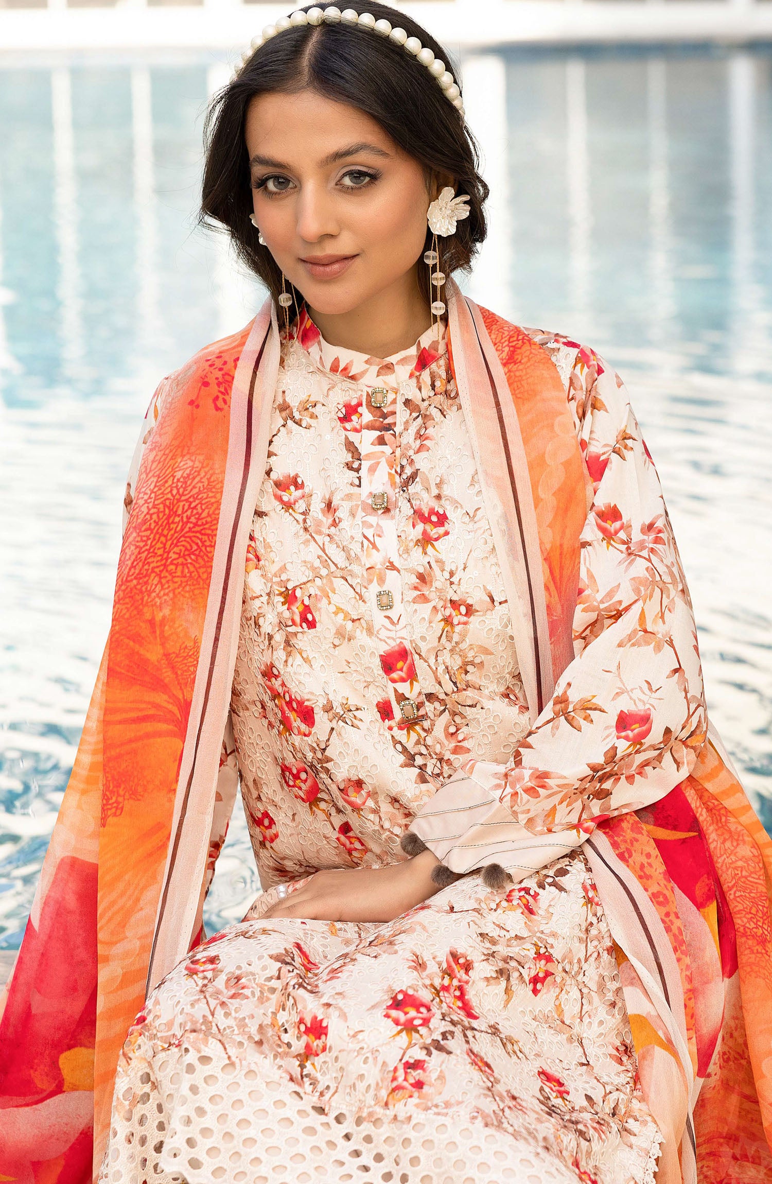 Printed Chikenkari Shirt with Printed Crinkle Duppata