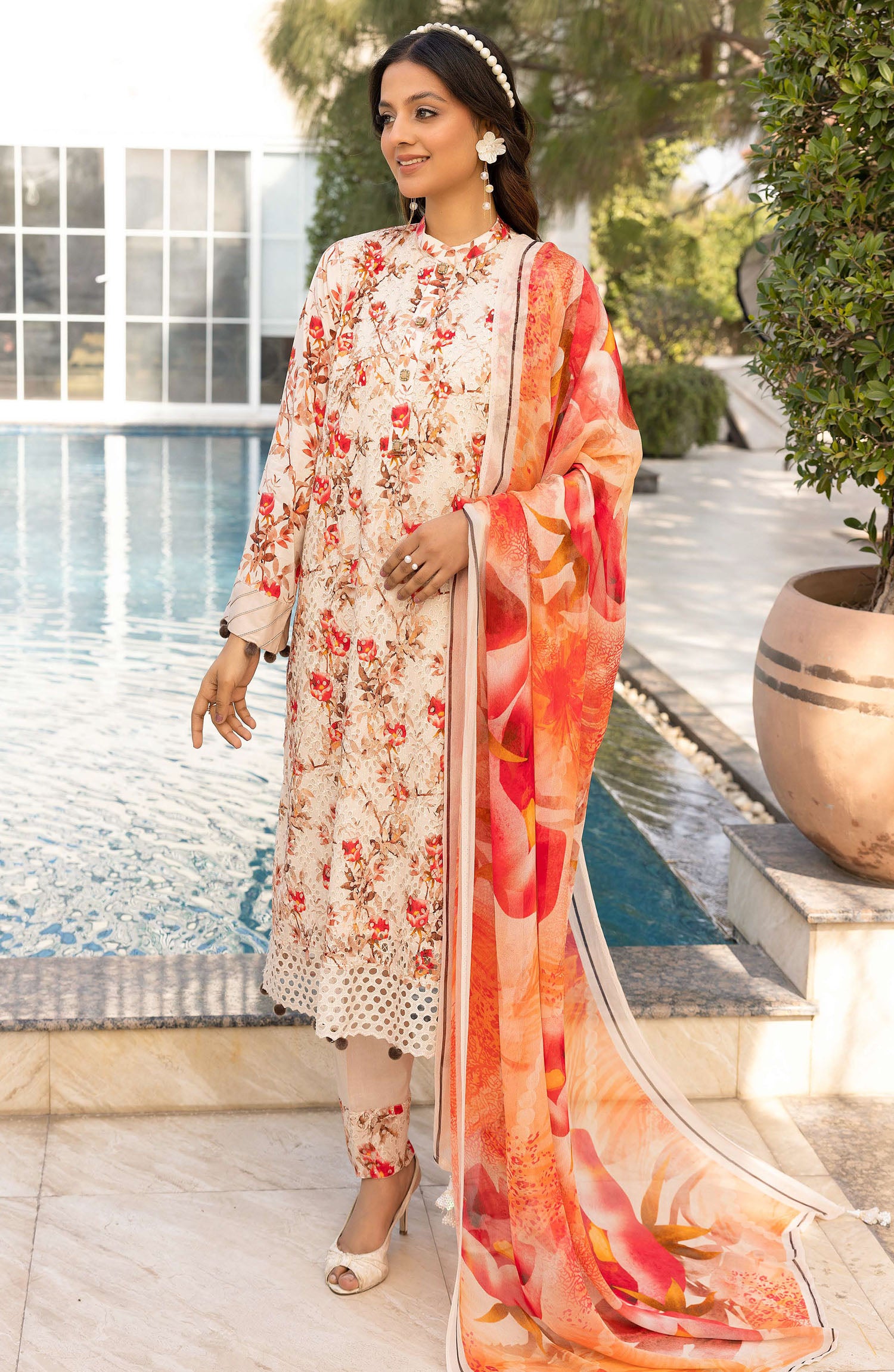 The standard style comes as a long-sleeved kameez with dupatta and trouser/shawlar.