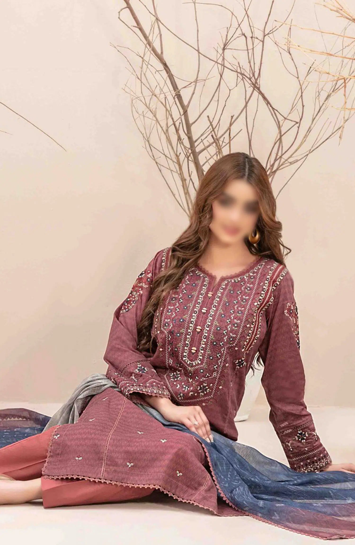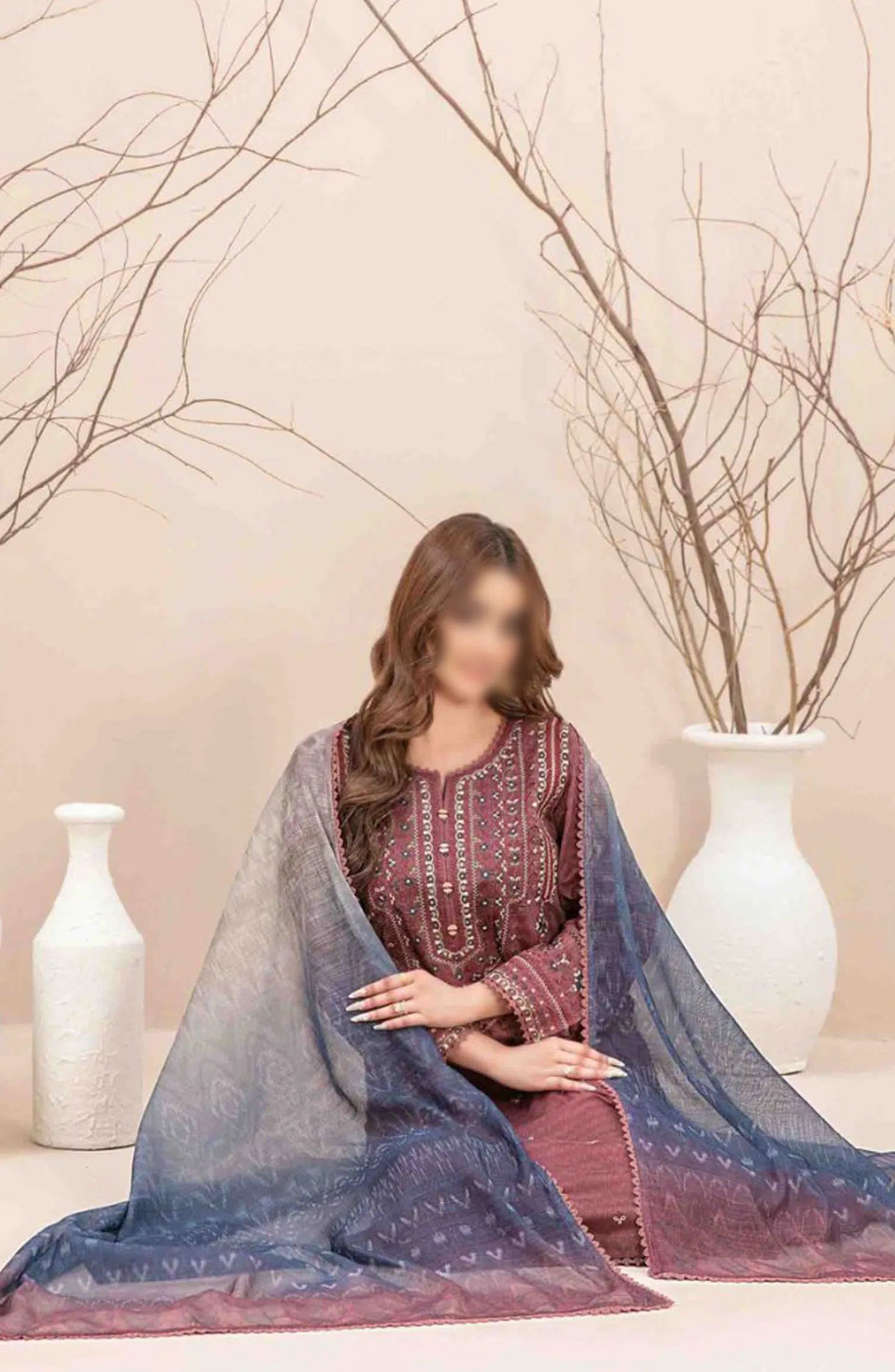 Mahlaa VOL I - Stitched Embroidered Lawn Collection has been styled in the image for photography and illustrative purposes.