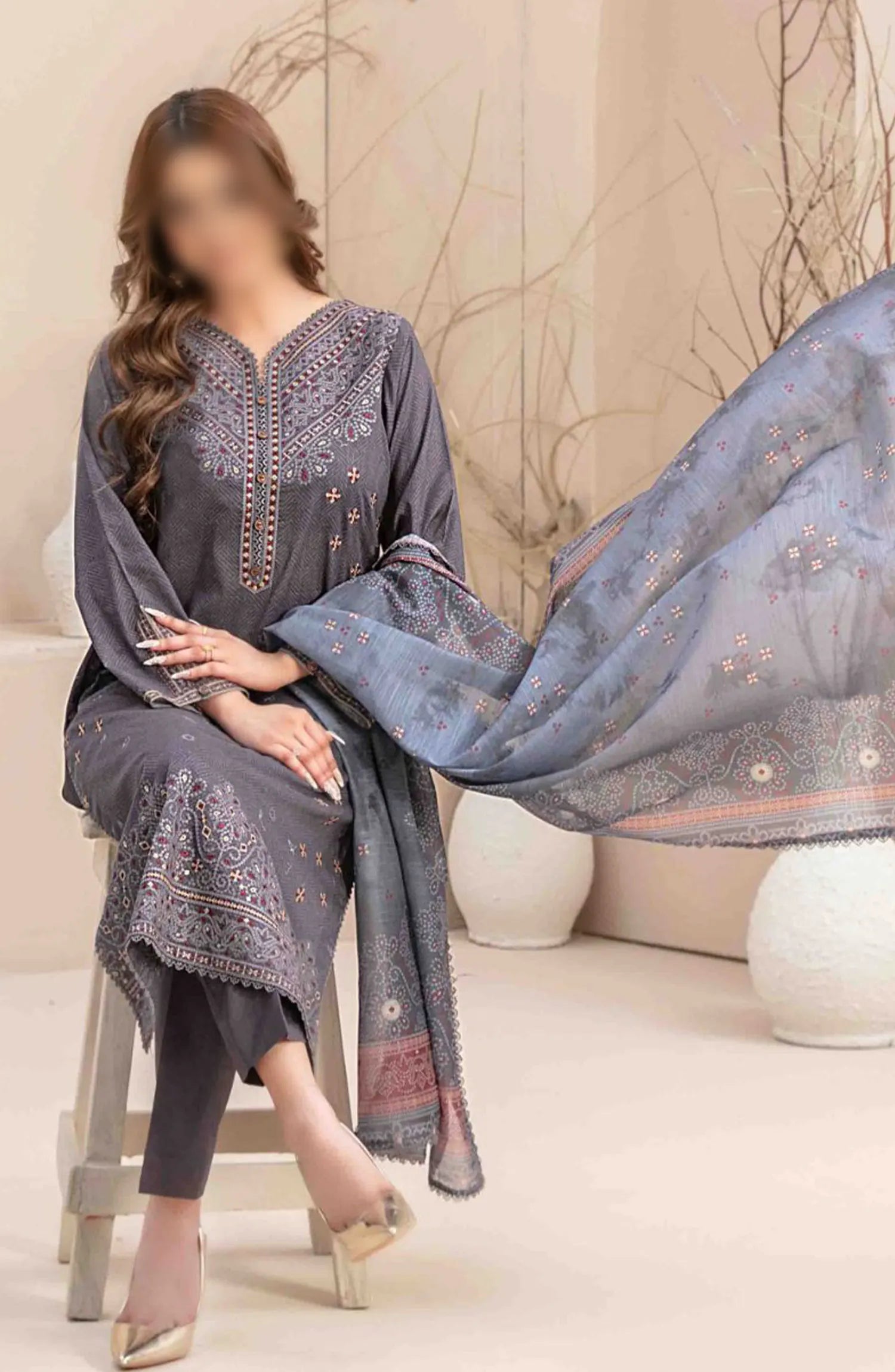 Modest Embroidered Khaddar Stitched 3 Piece Suit - 10040-Pnk - MOD25WNT - Pink - Winter Collection