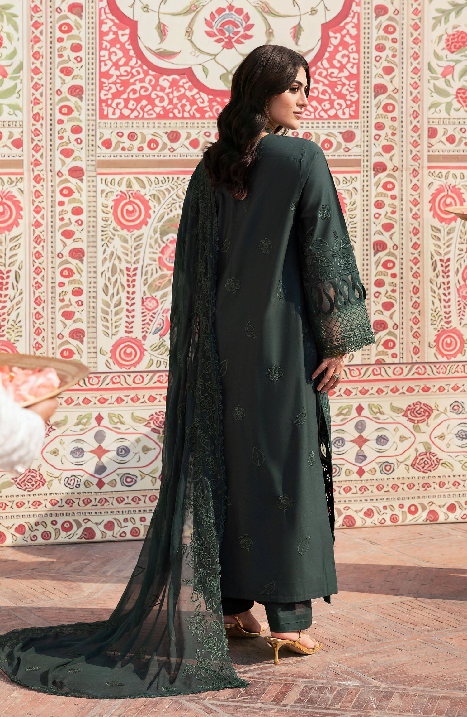 Home Mahnur Embroidered Lawn Unstitched 3 Piece Suit - D-01 Solene - MH25HJ - Green - Summer Collection